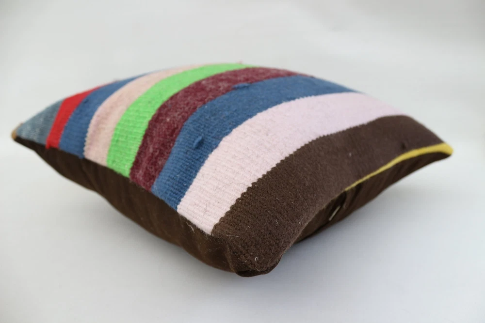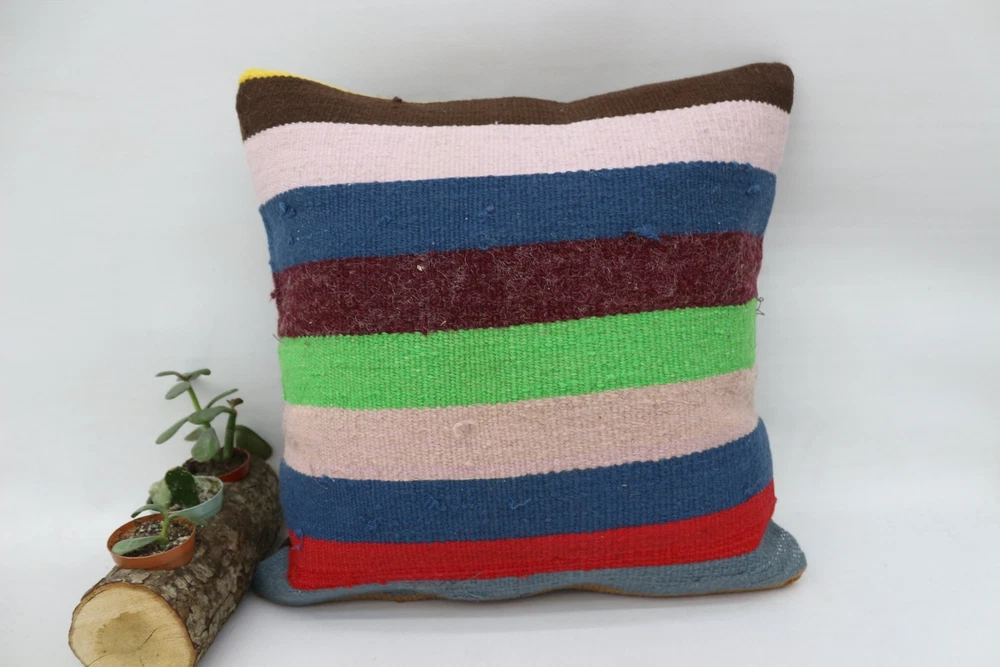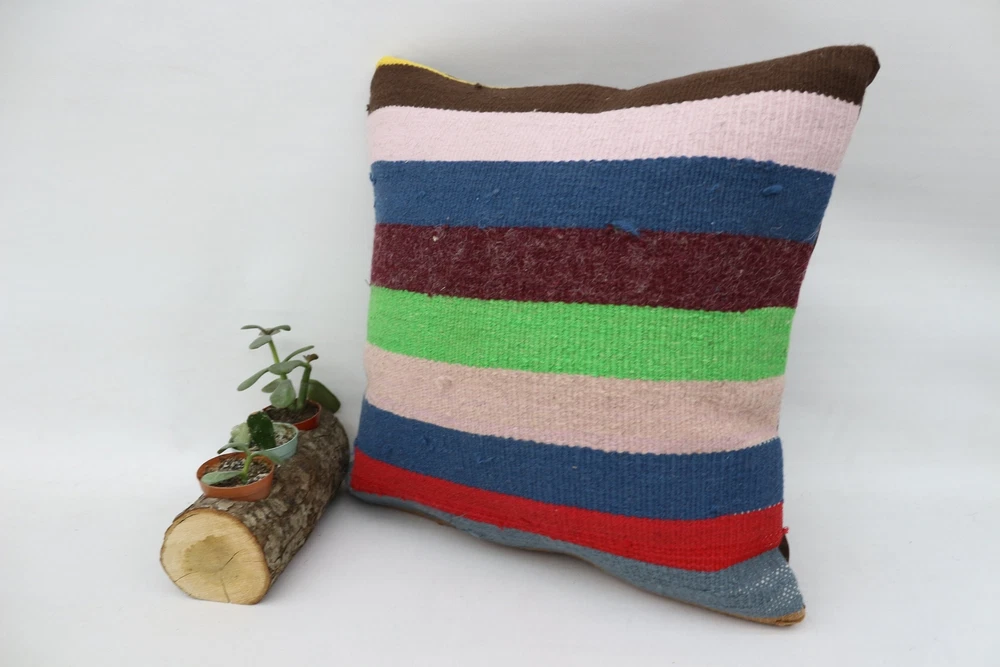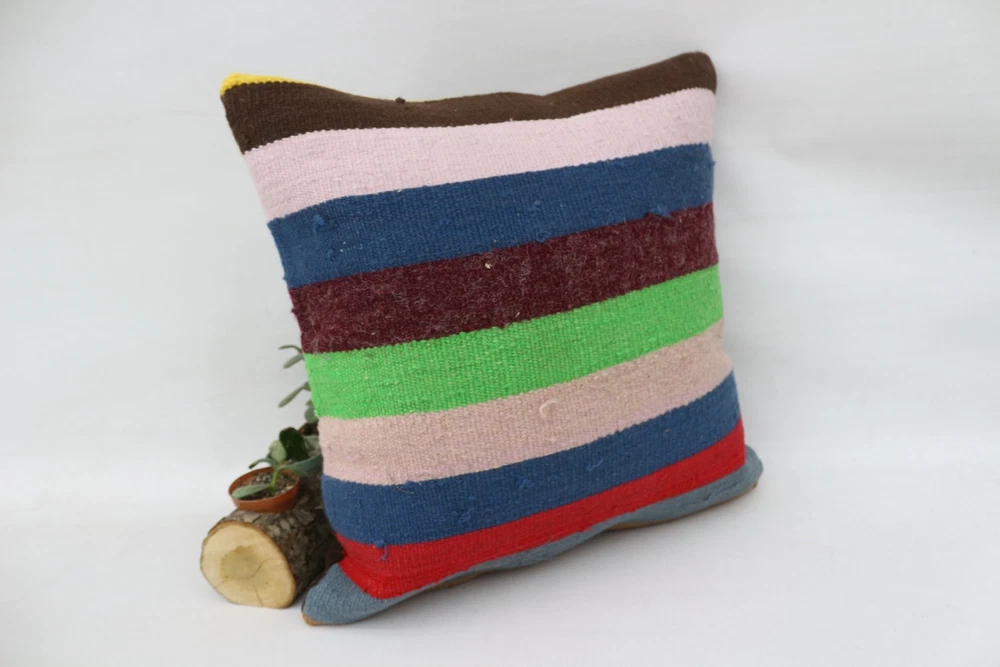 Kilim Pillow Details: All of my beautiful pillow covers or cushion cases are designed and made by me. I am making my throw pillow covers from handmade vintage rugs, Turkish rugs. Therefore, each of my vintage kilim pillowcase is one of kind. These cushions covers are piece of an art. The size of this pillow is 16 x 16 inches or 40 x 40 cm. The front side of this decorative pillow cover, cushion cover is wool on wool vintage kilim rug. The backside of this throw is high quality cotton fabric with a high quality zipper. This listing has 2 option for this handmade pillow. You can choose with insert or without insert. The listing photos is with insert in the pillowcase which is just for demonstration purpose. All of my vintage Turkish rugs have been professionally washed before I cut them as pillow case or cushion case so these kilim covers are 100 posent clean and ready to use. Due to the age and handmade nature of these vintage rugs, there might be imperfections and flaws that are not considered defects. This is a piece of a handmade vintage rug with minor signs of wear consistent with age and use that give it an antique look. You can see the condition of the rug pillow clearly in the detailed photos. I am going to ship your order of decorative pillow as soon as possible. I usually ship in the next day with DHL Express or FedEx which will deliver the kilim pillow, cushion cover just in 3-5 business days. It is my responsible until you receive pillow cover or pillow cover with insert at your door. If the pillow cover or insert get lost or damage during the shipping, I will ship the new kilim pillow cover or pillow insert for free as soon as possible. I take photos of my throw pillows indoor with professional camera which shows the real colors. The photos of these Turkish pillow covers are not altered. Keep in mind the colors of the rug vary slightly in different lights. Please contact to me for additional photos. I take the photos of my vintage rugs outside with daylight to show you the real and natural colors. My photos are not altered. Keep in mind the colors of the rug vary slightly in different lights. Please contact to me for additional photos. SATISFACTION GUARANTEED for your order in my shop. Your SATISFACTION is the most important to me. Please write me if you have any question or if you don't like anything from my pillow covers, cushion covers. If any reason, you are not happy from your Turkish pillow cover, I accept return without any hassle. Please read my shop policies for details. This cushion case or pillow cover can be used as decorative throw pillow, gift pillow, Christmas pillow case, bedding pillow, lumbar pillow, sofa pillow, bohemian pillow, boho pillow. You can find in any kind of Turkish kilim pillow cover in different design such as striped pillow, embroidered pillow, and geometric pillow.