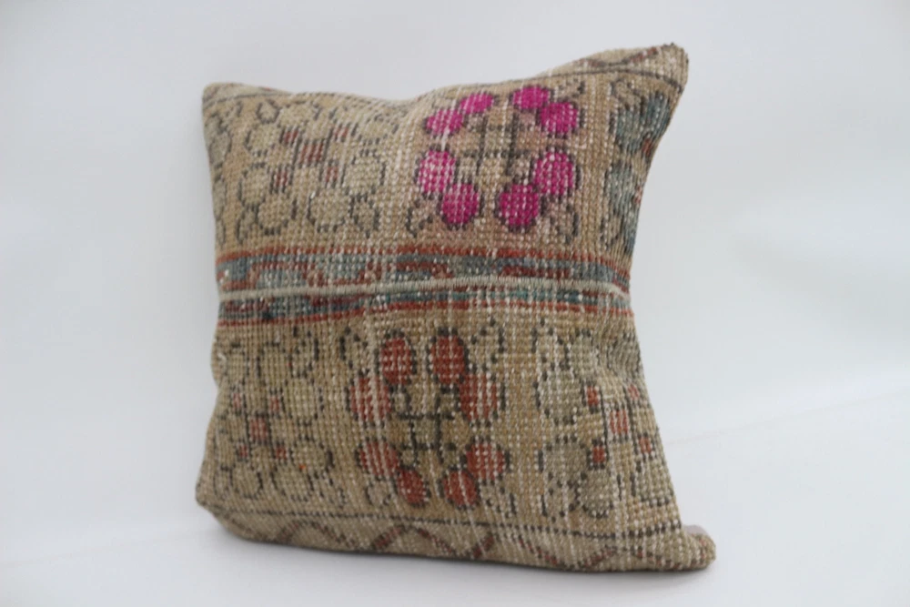 Kilim Pillow Details: All of my beautiful pillow covers or cushion cases are designed and made by me. I am making my throw pillow covers from handmade vintage rugs, Turkish rugs. Therefore, each of my vintage kilim pillowcase is one of kind. These cushions covers are piece of an art. The size of this pillow is 16 x 16 inches or 40 x 40 cm. The front side of this decorative pillow cover, cushion cover is wool on wool vintage kilim rug. The backside of this throw is high quality cotton fabric with a high quality zipper. This listing has 2 option for this handmade pillow. You can choose with insert or without insert. The listing photos is with insert in the pillowcase which is just for demonstration purpose. All of my vintage Turkish rugs have been professionally washed before I cut them as pillow case or cushion case so these kilim covers are 100 posent clean and ready to use. Due to the age and handmade nature of these vintage rugs, there might be imperfections and flaws that are not considered defects. This is a piece of a handmade vintage rug with minor signs of wear consistent with age and use that give it an antique look. You can see the condition of the rug pillow clearly in the detailed photos. I am going to ship your order of decorative pillow as soon as possible. I usually ship in the next day with DHL Express or FedEx which will deliver the kilim pillow, cushion cover just in 3-5 business days. It is my responsible until you receive pillow cover or pillow cover with insert at your door. If the pillow cover or insert get lost or damage during the shipping, I will ship the new kilim pillow cover or pillow insert for free as soon as possible. I take photos of my throw pillows indoor with professional camera which shows the real colors. The photos of these Turkish pillow covers are not altered. Keep in mind the colors of the rug vary slightly in different lights. Please contact to me for additional photos. I take the photos of my vintage rugs outside with daylight to show you the real and natural colors. My photos are not altered. Keep in mind the colors of the rug vary slightly in different lights. Please contact to me for additional photos. SATISFACTION GUARANTEED for your order in my shop. Your SATISFACTION is the most important to me. Please write me if you have any question or if you don't like anything from my pillow covers, cushion covers. If any reason, you are not happy from your Turkish pillow cover, I accept return without any hassle. Please read my shop policies for details. This cushion case or pillow cover can be used as decorative throw pillow, gift pillow, Christmas pillow case, bedding pillow, lumbar pillow, sofa pillow, bohemian pillow, boho pillow. You can find in any kind of Turkish kilim pillow cover in different design such as striped pillow, embroidered pillow, and geometric pillow.