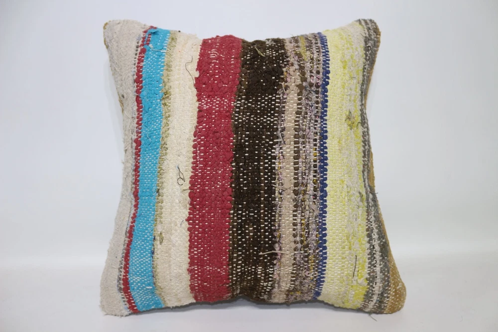 Kilim Pillow Details: All of my beautiful pillow covers or cushion cases are designed and made by me. I am making my throw pillow covers from handmade vintage rugs, Turkish rugs. Therefore, each of my vintage kilim pillowcase is one of kind. These cushions covers are piece of an art. The size of this pillow is 16 x 16 inches or 40 x 40 cm. The front side of this decorative pillow cover, cushion cover is wool on wool vintage kilim rug. The backside of this throw is high quality cotton fabric with a high quality zipper. This listing has 2 option for this handmade pillow. You can choose with insert or without insert. The listing photos is with insert in the pillowcase which is just for demonstration purpose. All of my vintage Turkish rugs have been professionally washed before I cut them as pillow case or cushion case so these kilim covers are 100 posent clean and ready to use. Due to the age and handmade nature of these vintage rugs, there might be imperfections and flaws that are not considered defects. This is a piece of a handmade vintage rug with minor signs of wear consistent with age and use that give it an antique look. You can see the condition of the rug pillow clearly in the detailed photos. I am going to ship your order of decorative pillow as soon as possible. I usually ship in the next day with DHL Express or FedEx which will deliver the kilim pillow, cushion cover just in 3-5 business days. It is my responsible until you receive pillow cover or pillow cover with insert at your door. If the pillow cover or insert get lost or damage during the shipping, I will ship the new kilim pillow cover or pillow insert for free as soon as possible. I take photos of my throw pillows indoor with professional camera which shows the real colors. The photos of these Turkish pillow covers are not altered. Keep in mind the colors of the rug vary slightly in different lights. Please contact to me for additional photos. I take the photos of my vintage rugs outside with daylight to show you the real and natural colors. My photos are not altered. Keep in mind the colors of the rug vary slightly in different lights. Please contact to me for additional photos. SATISFACTION GUARANTEED for your order in my shop. Your SATISFACTION is the most important to me. Please write me if you have any question or if you don't like anything from my pillow covers, cushion covers. If any reason, you are not happy from your Turkish pillow cover, I accept return without any hassle. Please read my shop policies for details. This cushion case or pillow cover can be used as decorative throw pillow, gift pillow, Christmas pillow case, bedding pillow, lumbar pillow, sofa pillow, bohemian pillow, boho pillow. You can find in any kind of Turkish kilim pillow cover in different design such as striped pillow, embroidered pillow, and geometric pillow.