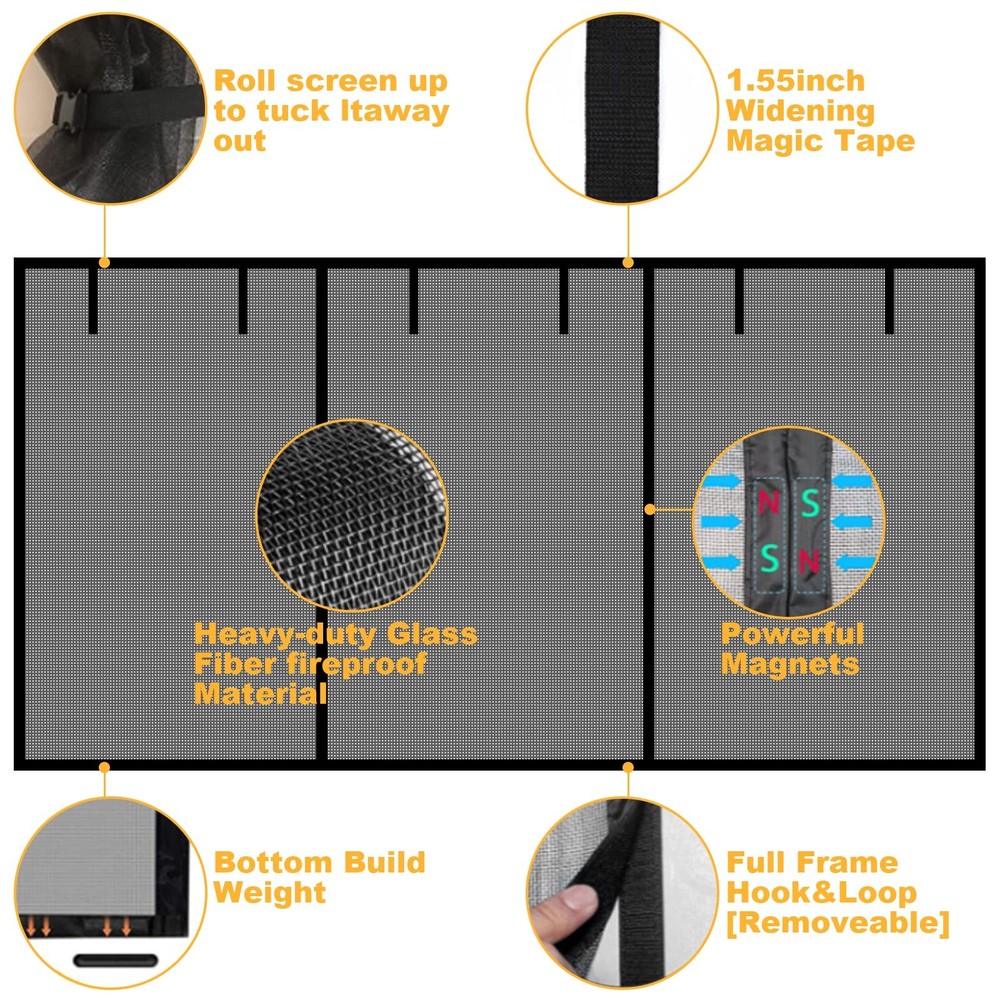 Specification: Mesh material: Fiberglass Screen Door Size:16.3FT * 7.15FT Fit Door Size:16FT * 7FT 【Unique Design】Our garage door screen is a three-net design, adding 6 pcs of strapping tapes at the top allows you to roll up screen. Perfect for increasing airflow in your garage, and its good transmittance can give you a better vision. Built-in strong magnet to ensure that the mesh screen door is kept well and automatically closed. Both people and pets can walk through freely. 【High Quality and Durable】This Fiberglass Garage Screen Door is made of Durable Fiberglass Material. Our magnetic screen door is fireproof,chemical corrosion resistance,anti-tear with longer life, high-density and antioxidant,can be reused many times. Reinforcing the sewn edges to prevent fraying and ensure that nothing sneaks through the sides. Gravity rods are added at the bottom to help improve wind resistance. 【SIZE TIPS】 The size of this hidden screen door is 16.3ft * 7.15ft, and it FITS door size up to 16ft * 7ft. Please Measure your door first, choose the size according to outer diameter. Don't buy the one which is smaller than your door frame.The car garage screen door can be used in many places, such as a rec room, outdoor workshop, a home gym, an arts and crafts room, a man-cave, or a kids play. 【Easy to Install & Remove】Comes with a complete installation kit and an installation manual. Clean the door frame before installation. No tools required, simply peel the adhesive backing off the hook and loop strips and apply to door frame. When you want to remove the mesh screen, you can roll it up for temporary storage. 【Quality Assurance】 If you have any problem regarding our Garage Screen Door, please contact us immediately, ZYPeey promises that will provide the best and friendliest customer service.