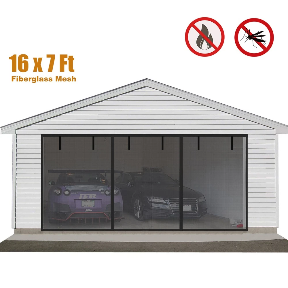 Garage Screen Doors for 2 Car Garage-16x7FT Fiberglass 2300g/5.1lb Durable He...