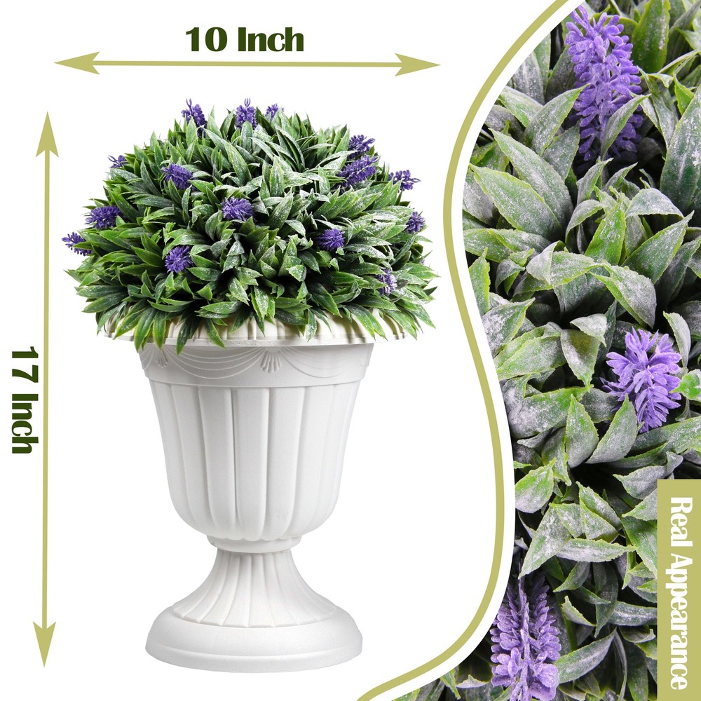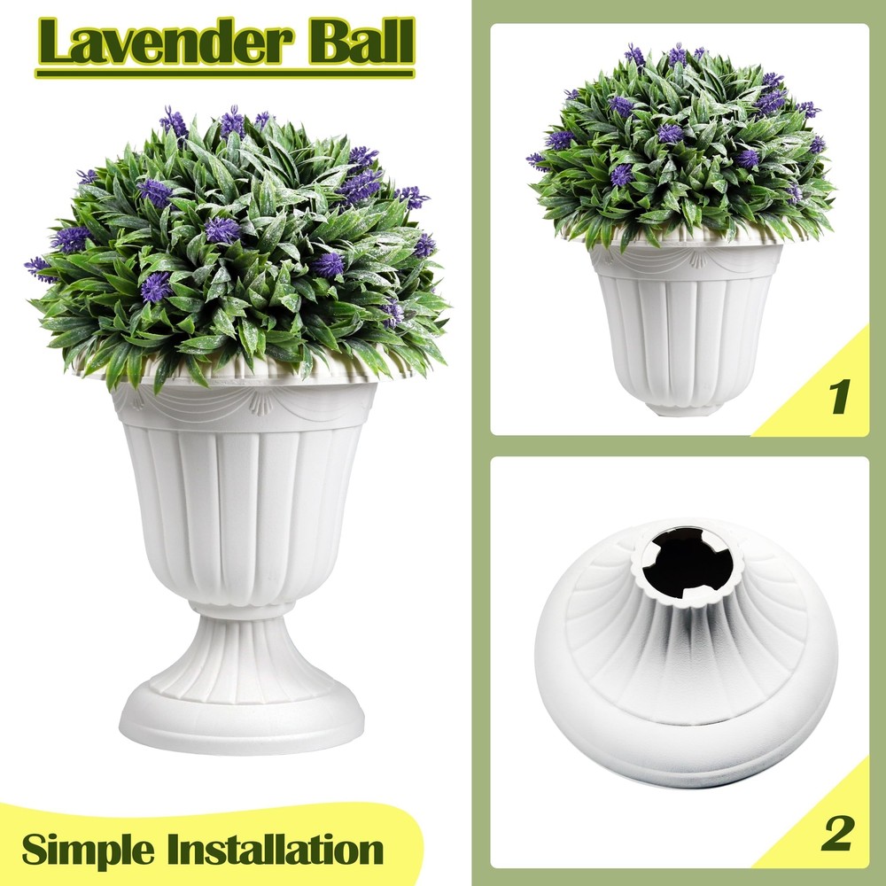 【Package&Weight】: Every set including of 2 packs of plastic Lavender topiary Tree. The faux Lavender Topiary plant has a height of approximately 17in/42 cm and a width of approximately 10in/25.5cm.The total weight of plants with vases is about 2.5 kg. You can effortlessly move them around your home to create the perfect ambiance wherever you desire. The manageable size and weight make it a breeze to reposition without any hassle. 【Durable Material】:The leaves of artificial lavender ball tree are made of superior PE material, The bottom vase is made of high hardness PP material. They are free from any unpleasant odors, ensuring a fresh and natural feel. The leaves feature realistic textures that are both UV and weather-resistant, making them suitable for outdoor display without any loss of quality. 【Easy to Maintain】: Say goodbye to the time-consuming tasks of trimming and watering. Our artificial plants require minimal care – simply wipe them down with a damp cloth to keep them looking their best. Enjoy the lush greenery without the fuss of traditional plant care. 【Versatile Decor for Any Space】: Perfect for a variety of settings, these topiaries can enhance the decor of your dining room, bedroom, porch, hallway, or any indoor or outdoor space. Their timeless design and natural appearance add a touch of elegance and life to any environment. 【Ideal Gift for Nature Lovers】: Give the gift of life and natural ambiance with our artificial topiary set. It's an excellent choice for those who appreciate the beauty of nature but may not have the time or inclination for live plants. This thoughtful gift brings a touch of the outdoors in, making any space feel more vibrant and alive.