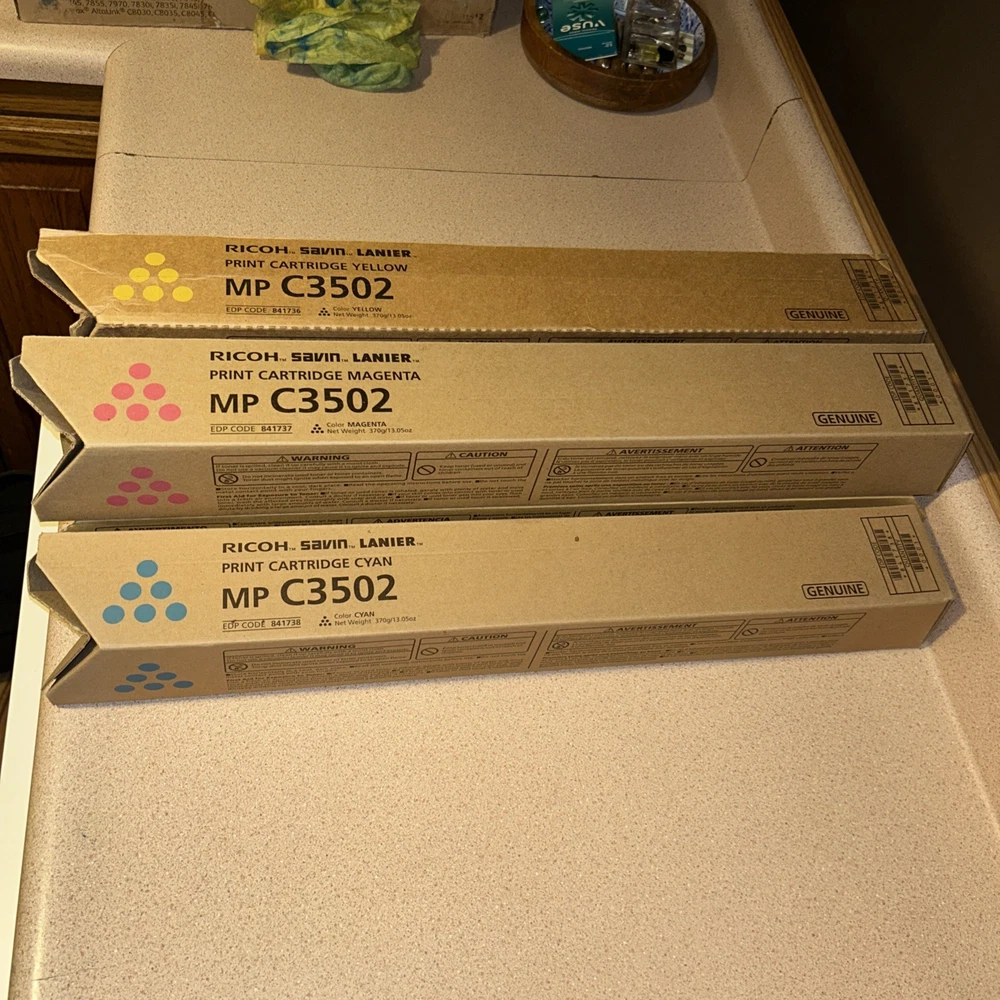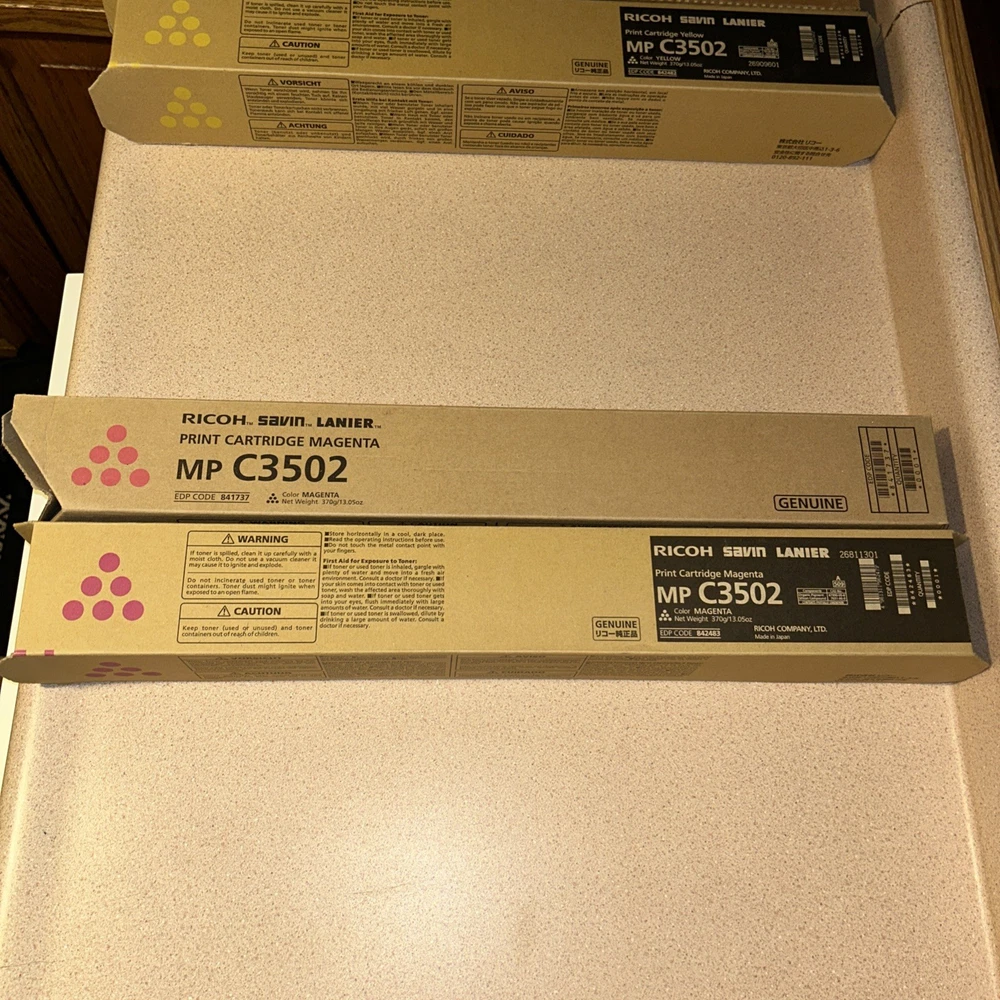 This lot includes 17 cartridges total: x2 Copystar/Kyocera TK8709K x1 Copystar/Kyocera TK8709M x1 Copystar/Kyocera TK8707M x1 Copystar/Kyocera TK8709Y x6 Xerox 006R01512 x1 Xerox 006R01744 x2 Yellow for Ricoh/Savin/Lanier MP C3502 x2 Magenta for Ricoh/Savin/Lanier MP C3502 x1 Cyan for Ricoh/Savin/Lanier MP C3502
