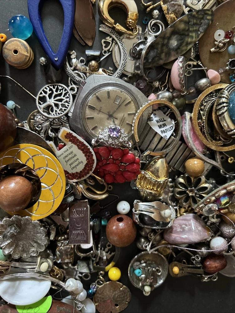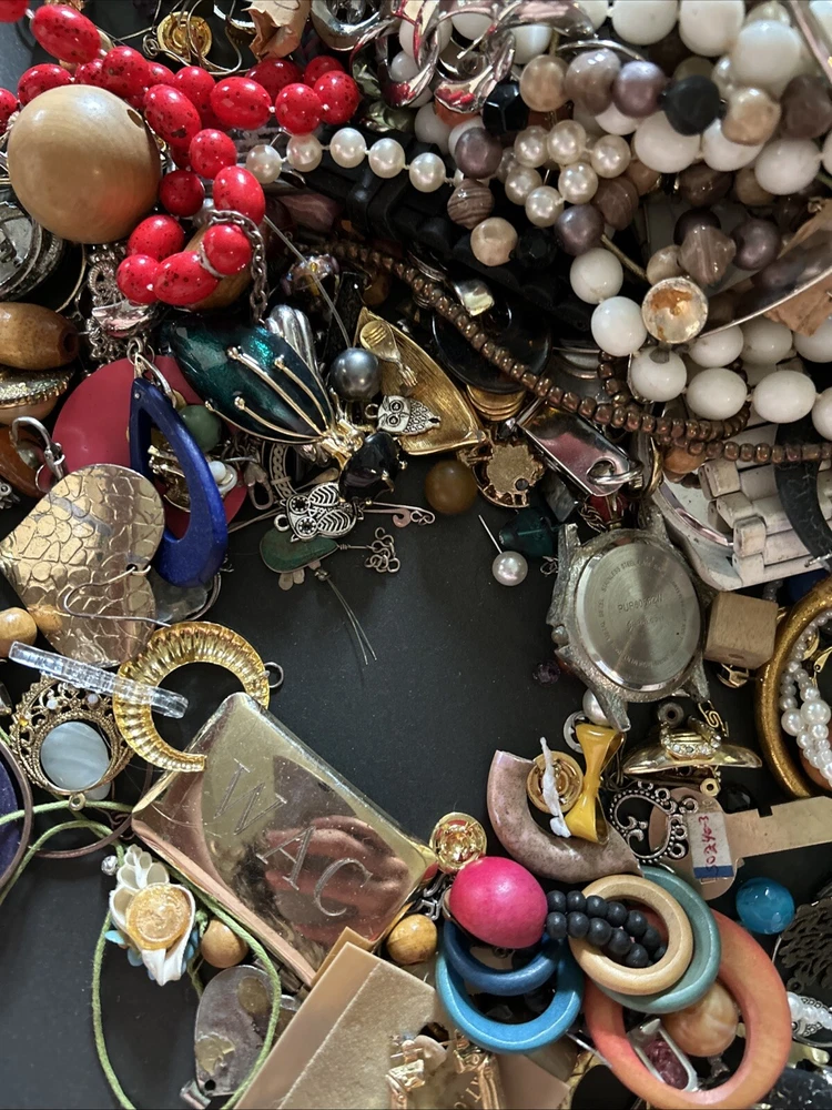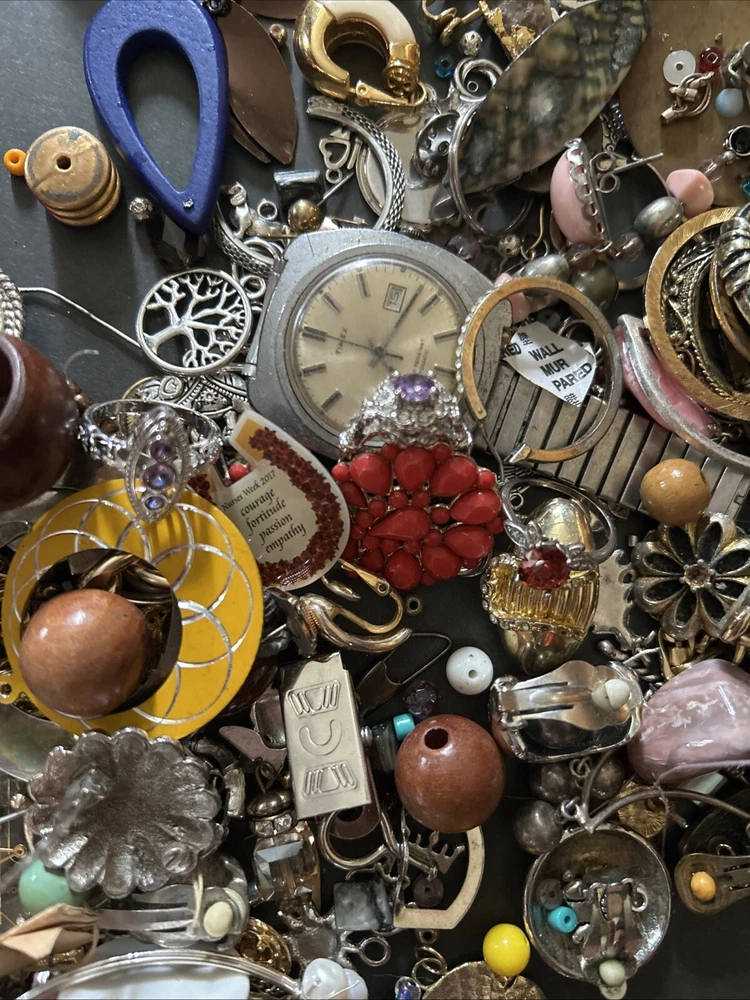This mixed lot of scrap jewelry includes 17 pounds of materials that can be crafted into unique pieces. The lot includes a variety of materials such as junk and scrap, perfect for those who enjoy creating their own jewelry. With this collection, you can find inspiration for your own personal style and create one-of-a-kind pieces. Whether you are a seasoned jewelry maker or just starting out, this lot is perfect for you. Don't miss out on the opportunity to add these materials to your collection and let your creativity run wild.some pieces wearable others not .
