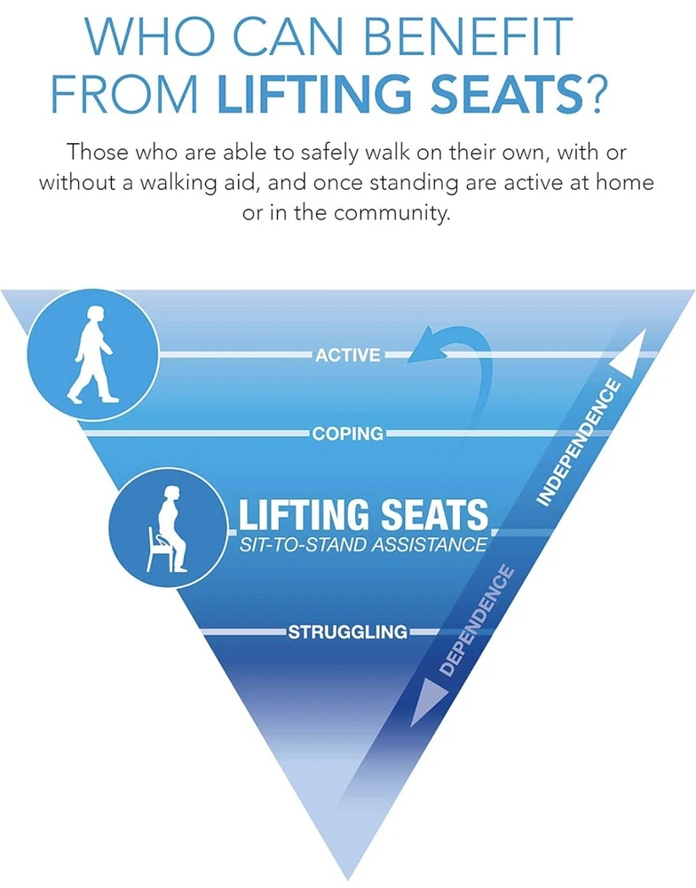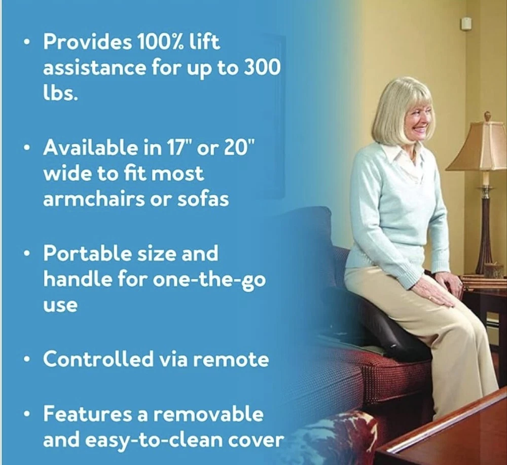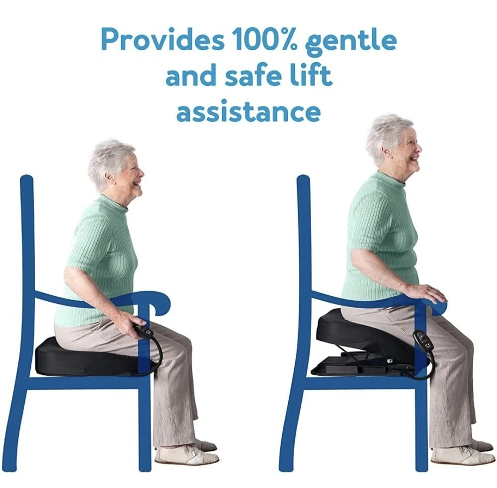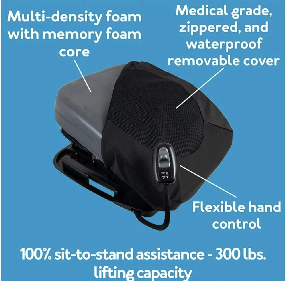 HELPS YOU EFFORTLESSLY STAND UP: The fully electric sit to stand lift for adults provides 100% assistance for up to 300 lbs to ensure a gentle and safe lift without having to push forward. It's a great alternative to electric lifting recliners. DESIGNED TO FIT ON MOST ARMCHAIRS, COUCHES, AND SOFAS: This chair lifts for elderly features our patented Lever Lift technology to curve the seat for a safe, secure, and comfortable lift assist. COMFORTABLE SEAT ASSIST: The Carex lift seat features memory foam for ultimate comfort to allow for sitting at long periods of time. This makes it perfect as a chair lifts for seniors, handicap devices or disability aids, or for just those with low body strength. Cord length: 9 feet. Note: Product should not be used on the seat of a wheelchair INCLUDES EASY TO USE CONTROLS: The automatic lift seat includes a flexible hand control to adjust the position and height of the seat lift cushion for comfort and flexibility when sitting down and standing up. EASY TO CLEAN AND PORTABLE: The seat assist lifting cushion includes a waterproof cushion that is easy to clean with a foam cushion that's easy to care for. It's lightweight and comfortable design makes it a great portable mobility aid for anywhere with access to electricity. Power: Electric (120 VAC 60 HZ 0.6 A)