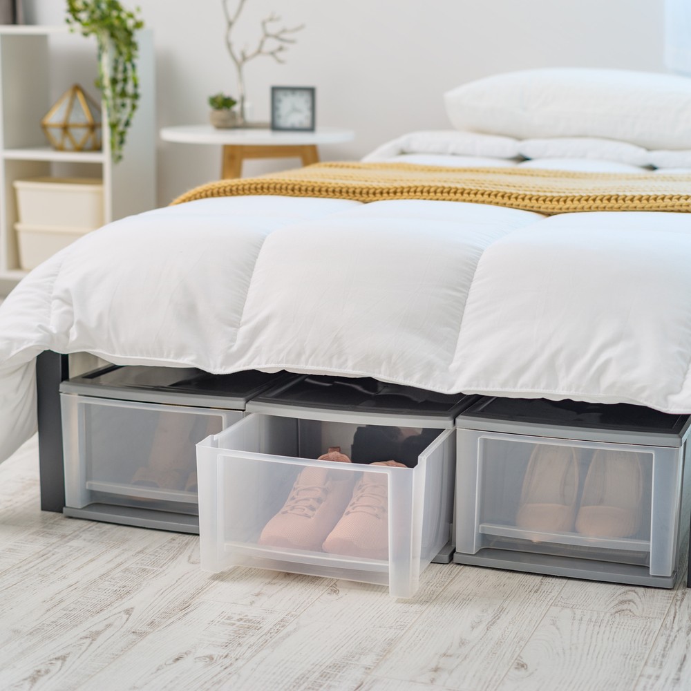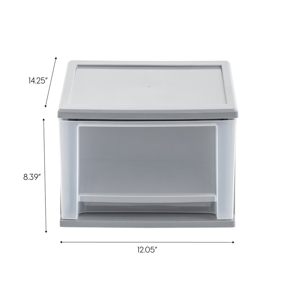 Enhance your home organization with the USA Plastic Drawers and Under Bed Storage Bins. These innovative storage solutions are designed to seamlessly integrate into any room, providing a stylish and functional way to keep your belongings organized. The stackable and modular design offers flexibility, allowing you to customize your storage system to meet your specific needs. Available in 7Qt small and 17Qt medium capacities, these clear bins with a sleek gray frame offer ample space while maintaining a modern, clean look. The USA Plastic Drawers are perfect for organizing a variety of items. The clear construction makes it easy to see the contents at a glance, saving you time when searching for specific items. The elegant gray frame complements any decor, adding a contemporary touch to your home. Whether you're organizing your closet, pantry, office, garage, or bedroom, these storage bins provide an ideal solution. The stackable feature of these Plastic Drawers allows you to maximize vertical space, making them perfect for small spaces. The modular design means you can easily reconfigure your storage setup as needed. The under bed storage bins are ideal for utilizing the often-overlooked space beneath your bed. Store off-season clothing, shoes, linens, toys, and more with ease. The 7Qt small bins are perfect for smaller items like accessories and toiletries, while the 17Qt medium bins are great for larger items like books and kitchen supplies. Constructed from durable plastic, these USA storage bins are built to withstand everyday use. Their flexibility makes them suitable for a wide range of items, helping you keep your home clutter-free and organized. The clear, stackable, and modular design ensures that these bins not only provide practical storage but also enhance the overall aesthetic of your space. Upgrade your storage solutions with the USA Plastic Drawers and Under Bed Storage Bins. These clear, stackable, and modular bins with a sleek gray frame are the perfect addition to any organized home. Keep your belongings neatly stored and easily accessible with these versatile storage bins. Product Dimension: L:14.25"W:12.05"H:8.39" Product Capacity: 17 Qt (Medium) Durable Plastic Construction: Designed to withstand everyday use and keep your belongings safe. Under Bed Storage: Utilize underused space beneath your bed to store off-season clothing, shoes, linens, and more. Efficient Organization: Keep your home clutter-free and your belongings neatly stored and easily accessible. Flexible and Practical: Ideal for a variety of items, including accessories, toiletries, books, kitchen supplies, blankets, sweaters, bedding, and seasonal decor. Stackable and Modular Design: Customizable to fit your specific storage needs, allowing you to maximize vertical space. Versatile Storage Solutions: Perfect for organizing any room in your home, from the bedroom to the garage. Practical and Stylish: Combining functionality and style, these storage bins provide an efficient and elegant solution for all your organization challenges.
