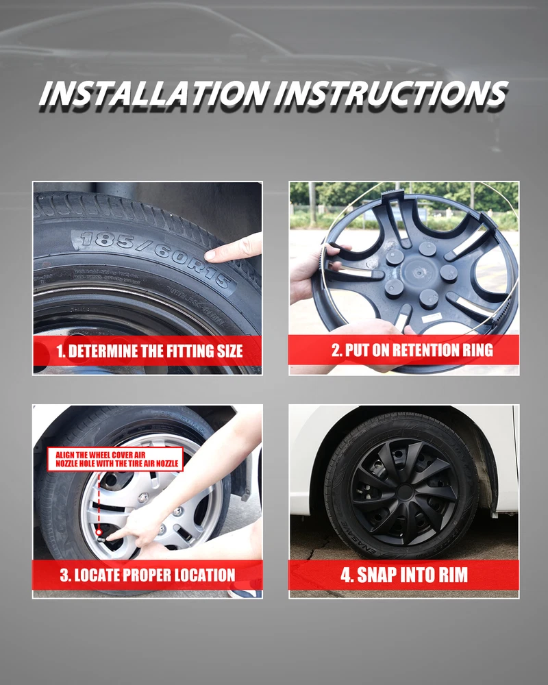 Home Payment Shipping Return Policy About Us Contact Us Feedback Title Other Car Refrigerator Front Bumper Rear Bumper Fender Flares Inner Fenders Side Steps Running Board A-Pillar Light Mount Brackets Headlights For Ford For Dodge For Chevrolet For Toyota For Mitsubishi Taillights For Chevrolet For Toyota For Ford For Jeep For Dodge For Honda For Nissan For Cadillac Fog Lights For Jeep For Dodge For Chrysler For Ford For Toyota For Chevrolet For Nissan For Lexus For GMC For Cadillac For BMW For Mercedes Benz LED Headlights For Ford For Dodge For Chevrolet For Toyota LED Taillights For Toyota For Chevrolet For Ford For Jeep For GMC For Honda For Cadillac LED Fog Lights For Toyota For Ford For Chevrolet For Mercedes Benz Jeep Headlights Tail Lights Fog Lights Refrigerator Bumper Fender Flares Inner Fenders A Pillar Light Mount Brackets Side Step More Chevrolet Headlights Tail Lights Fog Lights Refrigerator Bumper Ford Headlights Tail Lights Fog Lights Refrigerator Bumper Toyota Headlights Tail Lights Fog Lights Refrigerator Bumper Dodge Headlights Tail Lights Fog Lights Refrigerator Bumper GMC Headlights Tail Lights Fog Lights Refrigerator Bumper About This Item ✔ PERFECT FIT: This wheel hub cap is specifically designed to perfectly fit for 17-inch wheels, ensuring a seamless match and enhanced aesthetics. It complements the overall design of the vehicle, elevating its visual appeal. ✔ HIGH-QUALITY MATERIAL: Constructed from high-quality materials, this wheel hub cap guarantees durability and longevity. It withstands various road conditions and environmental factors encountered during daily driving, maintaining its pristine condition. ✔ EASY INSTALLATION: Installing this wheel hub cap is a breeze and requires no specialized tools or modifications. It comes with a user-friendly system, allowing for a hassle-free installation process by following the provided instructions. ✔ PROTECTIVE FUNCTION: Besides its aesthetic appeal, this wheel hub cap serves as a protective barrier for the wheels. It prevents scratches and potential damage caused by stones, debris, or other objects, safeguarding the wheel's surface. ✔ AFTER-SALES SERVICE: If There Is a Loss of Product Parts, or Any Parts of The Problem, We Can Provide After-Sales Service, Please Contact Us on The Order Page. ️ Item Details ✔ Type: Hub caps ✔ Number in Pack: 4 ✔ Color: Matte Black ✔ Material: ABS ✔ Compatible Wheel Diameter: 17 in ✔ Finish: Matte ✔ Installation Type: Snap-On ✔ Model: ‎Universal Hubcap for Iron Wheels, Not fit for Chevy Equinox All Models, TOYOTA SIENNA 17 inch models, VOLKSWAGEN GOLF 17 inch models Not fit for 2010-2011 Fusion, 2013-2018 Toyota RAV4, 2010-2011 Mercury Milan, 2008-2012 Chevy Malibu, 2007-2010 Pontiac G6, 2007-2010 Saturn Aura, 2007-2010 Saturn Aura Hybrid, 2013-2020 DODGE JOURNEY, 2015-2020 DODGE GRAND CARAVAN, 2011-2016 CHRYSLER TOWN & COUNTRY. Package Includes ✔ 1 Set of 4 Hub caps and 4 retention rings Payment Delivery details Terms of sales About us Contact us Payment We accept PayPal, credit card , Apple Pay & Google Pay etc. Delivery details All items will be shipped within 1-3 business days after payment received, we will try our best to ship out as soon as we can, hope for your understanding. Please double confirm your address and contact information, which will help the delivery faster and more accurately. Note :buyers who purchase international products need to pay import tariffs!!! Terms of sales Professional installation is highly recommended. Any problem of the item please feel free to contact us first , please D o Not leave negative feedback before that, or simply return it within 60 Days in original condition. We will resolve it for you ASAP. About us Any questions please do not hesitate to contact us directly by eBay message . We will reply you within 24 hours asap, thanks for your understanding. Contact us Should you have any problem or require any further information please feel free to contact us . If you are satisfied with our product and service, please kindly leave us a positive feedback. On Jan 20, 2025 at 00:53:45 PST, seller added the following information: