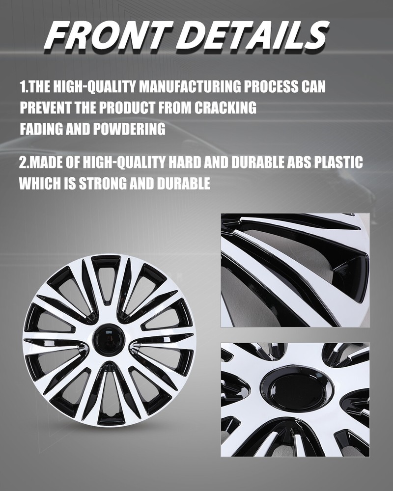 Store Categories Other Car Refrigerator Front Bumper Rear Bumper Fender Flares Inner Fenders Side Steps Running Board A-Pillar Light Mount Brackets Headlights Taillights Fog Lights LED Headlights LED Taillights LED Fog Lights Jeep Chevrolet Ford Toyota Dodge GMC Product Features ✴ PERFECT FIT: This wheel hub cap is specifically designed to perfectly fit for 17-inch wheels, ensuring a seamless match and enhanced aesthetics. It complements the overall design of the vehicle, elevating its visual appeal. ✴ HIGH-QUALITY MATERIAL: Constructed from high-quality materials, this wheel hub cap guarantees durability and longevity. It withstands various road conditions and environmental factors encountered during daily driving, maintaining its pristine condition. ✴ EASY INSTALLATION: Installing this wheel hub cap is a breeze and requires no specialized tools or modifications. It comes with a user-friendly system, allowing for a hassle-free installation process by following the provided instructions. ✴ PROTECTIVE FUNCTION: Besides its aesthetic appeal, this wheel hub cap serves as a protective barrier for the wheels. It prevents scratches and potential damage caused by stones, debris, or other objects, safeguarding the wheel's surface. ✴ AFTER-SALES SERVICE: If There Is a Loss of Product Parts, or Any Parts of The Problem, We Can Provide After-Sales Service, Please Contact Us on The Order Page. Product Specificataion ✴ Type: Hub caps ✴ Number in Pack: 4 ✴ Color: White Lacquer& Black Lacquer ✴ Material: ABS ✴ Compatible Wheel Diameter: 17 in ✴ Finish: Glossy ✴ Installation Type: Snap-On ✴ Model: Universal Hubcap for Iron Wheels , Not fit for Chevy Equinox All Models, TOYOTA SIENNA 17 inch models, VOLKSWAGEN GOLF 17 inch models Not fit for 2010-2011 Fusion, 2010-2011 Mercury Milan, 2008-2012 Chevy Malibu, 2007-2010 Pontiac G6, 2023-2025 TOYOTA PRIUS/PRIUS PRIME Alloy Wheel What You Get ✴ 1 Set of 4 Hub caps and 4 retention rings Payment Delivery details Terms of sales About us Contact us Payment We accept PayPal, credit card , Apple Pay & Google Pay etc. Delivery details All items will be shipped within 1-3 business days after payment received, we will try our best to ship out as soon as we can, hope for your understanding. Please double confirm your address and contact information, which will help the delivery faster and more accurately. Note :buyers who purchase international products need to pay import tariffs!!! Terms of sales Professional installation is highly recommended. Any problem of the item please feel free to contact us first , please D o Not leave negative feedback before that, or simply return it within 60 Days in original condition. We will resolve it for you ASAP. About us Any questions please do not hesitate to contact us directly by eBay message . We will reply you within 24 hours asap, thanks for your understanding. Contact us Should you have any problem or require any further information please feel free to contact us . If you are satisfied with our product and service, please kindly leave us a positive feedback. Popular Categories On Apr 10, 2025 at 01:45:17 PDT, seller added the following information: