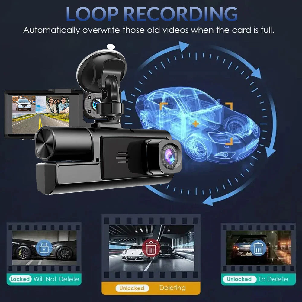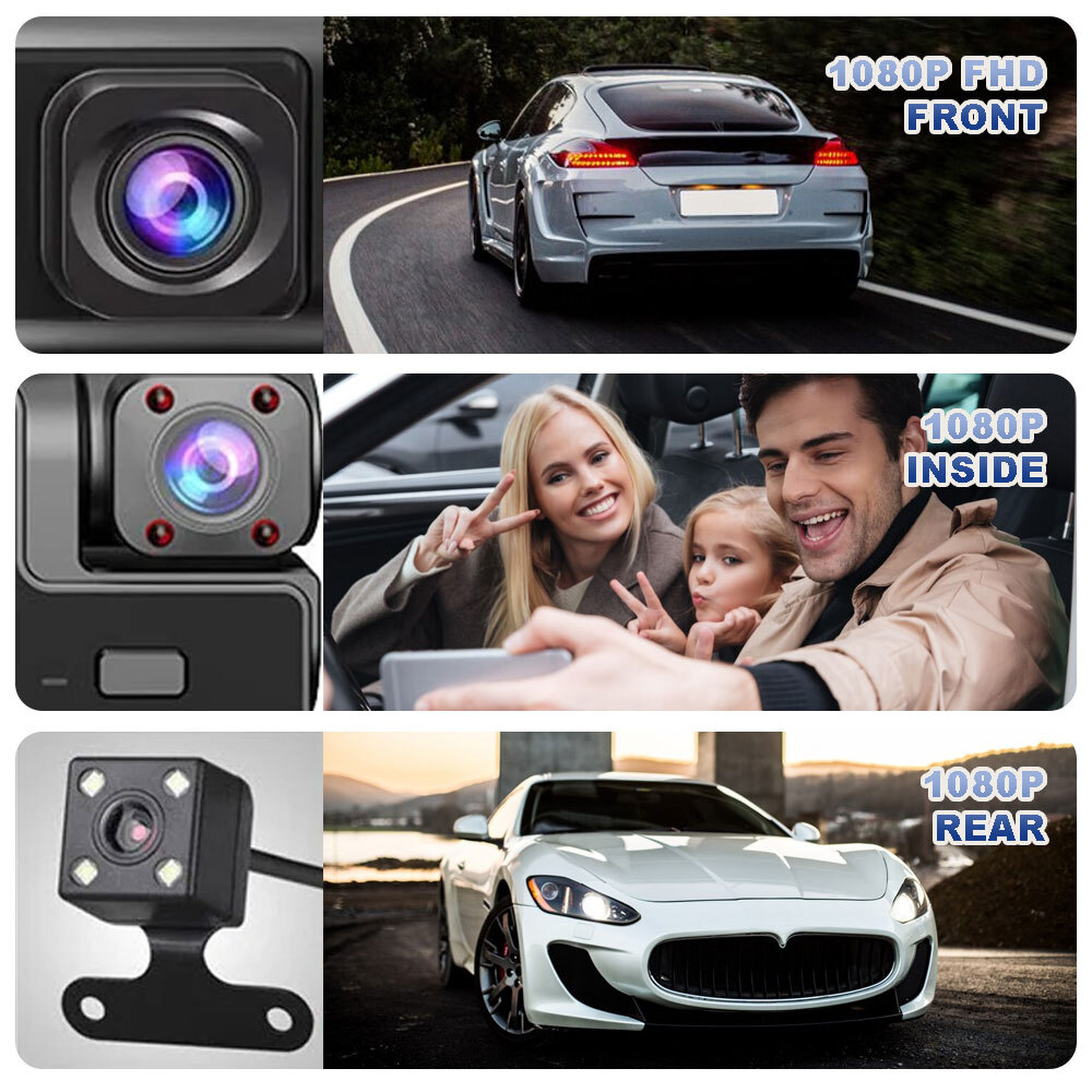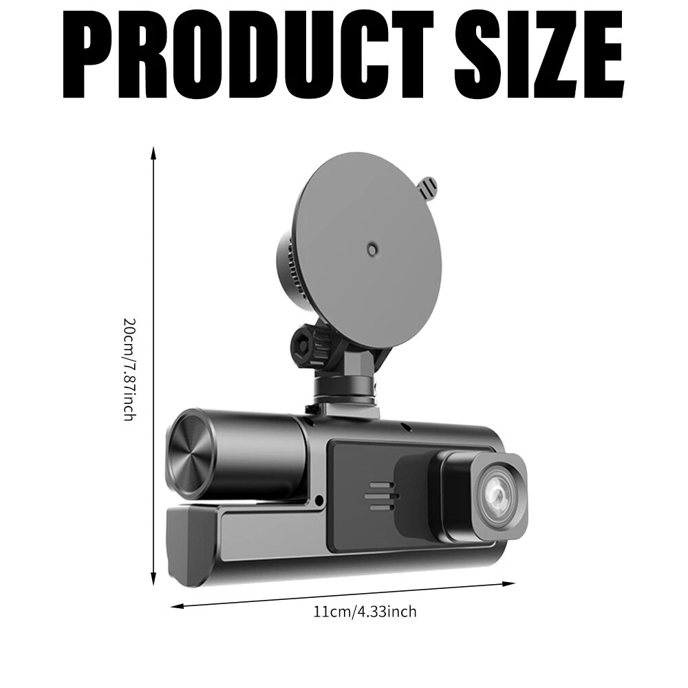 Feature: 【 Three Channel Dash Cam 】This 3 Channel Car DVR is equipped with a 170° front camera, a 85°in-car camera, and a 60°rear camera, capturing video in front of, behind and inside the car simultaneously, provides you with highly-detailed recordings of both the interior of the car and the road ahead, and always keeps you informed of the road status behind. 【 Full HD 108 0P Resolution 】Dash Cam Car Recorder deliver 1920x1080P front video + 1280x720P cabin inside video and 640x480Prear video, provide all in clear and sharp videos quality, you can easily switch between the front, inside, and rear cameras to view different angles of the vehicle. 【 WiFi & Smart App Control 】Easily connect the front and rear dash cam to your smartphone via WiFi and control everything through the app. Compatible with both iOS and Android, this dash cam allows you to view, playback, and download recordings seamlessly. 【 Super Night Vision with 4 IR Lamps 】Car Night Vision Camera adopting 4 infrared lights, driving camera can still provide clear and sharp videos or picture quality in relatively dark environment, ideal for rideshare drivers such as Uber, Lyft, and Taxi. 【 24 Hours Park i ng Monitoring 】Car Dash Camera uses infrared lighting to capture an accurate image any time of day or night. The parking monitor function allows the camera to start recording automatically once it detects motions and save the recording as a special file to avoid being overwritten, better protecting your property. 【 Loop Recording 】 When this feature is turned on, the memory card is full and the oldest video will be overwritten by the newly recorded video. 【 Motion Det ection 】 With the motion detection function is enabled, when the Car DVR detects a moving object, it will automatically start recording video. When there is no moving object, it will stop recording and detect the moving object again. 【 Easy T o I nstall 】Simple plug and play operation, wipe the windshield clean and then choose the suitable place for installation. Plug the cigarette lighter into the socket and then start the dash cam. Specifications: Pixel: Front 1080P/ interior 720P/ Rear 480P. Display Screen: 2.0 inch IPS Screen Angle of View: 170 Degrees WIFI: Support Loop Video: Support Function: Support Date and Time Watermarking: Support Memory Card: 64GB Max. (not included) Power Interface: USB2.0 Battery: 150 MAH Output: USB 2.0 Frequency: 50/60HZ Language: Russian, Japanese, French, Italian, German, English, Chinese (Simplified), Chinese (Traditional), Korean, Spanish, Portuguese. Working Temperature: -20°C ~ 70°C Size: 7.87 * 4.33 inch Certification: CE Package Included: 1 x Car Dash Cam 1 x Car Charger 1 x Rear Camera 1 x Video Cable 1 x Suction Cup Mount 2 x Screw 1 x User Manual