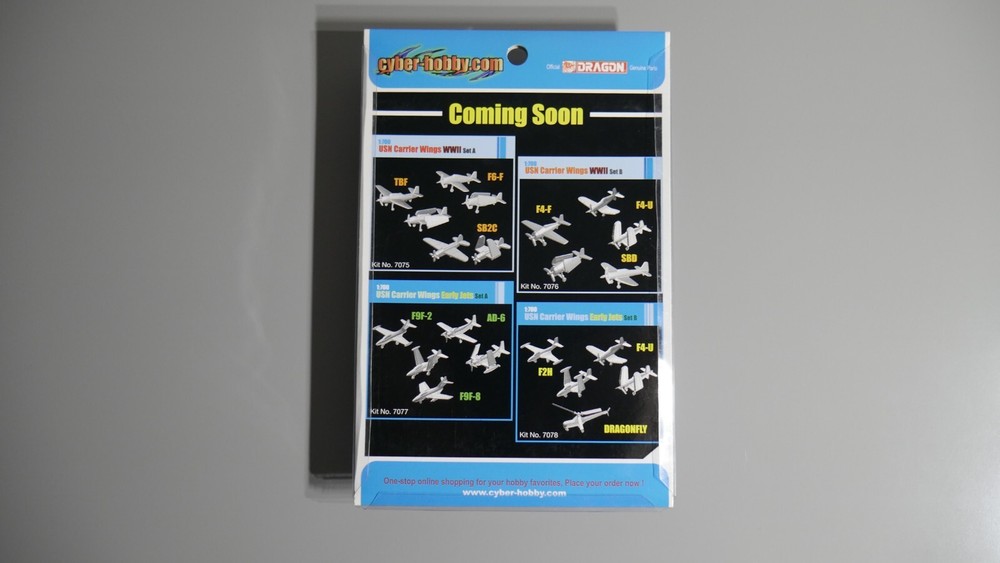 Dragon Cyber Hobby 1/700 Upgrade Package USN Carrier Wings 'Early Jets Set B' #7078B . It was a brand new item. Parts and decals were taken out of the box for pictures and quality inspection only. Complete kit in the original box. Please see the pictures. Free shipping, no returns. Same or next business day shipping if paid by 2 pm Central Time, Monday through Friday.