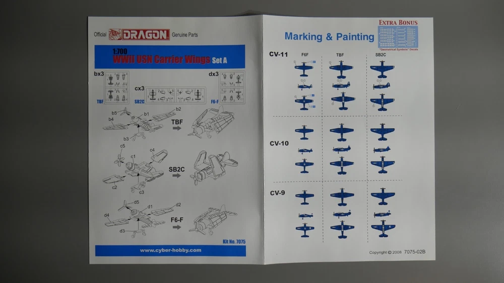 Dragon Cyber Hobby 1/700 Upgrade Package WWII USN Carrier Wings Set A #7075B . Complete kit in the original box. Please see all pictures before buying/bidding. All I have for this listing can be seen on the pictures. Free shipping, no returns. Same or next business day shipping if paid by 2 pm Central Time, Monday through Friday.