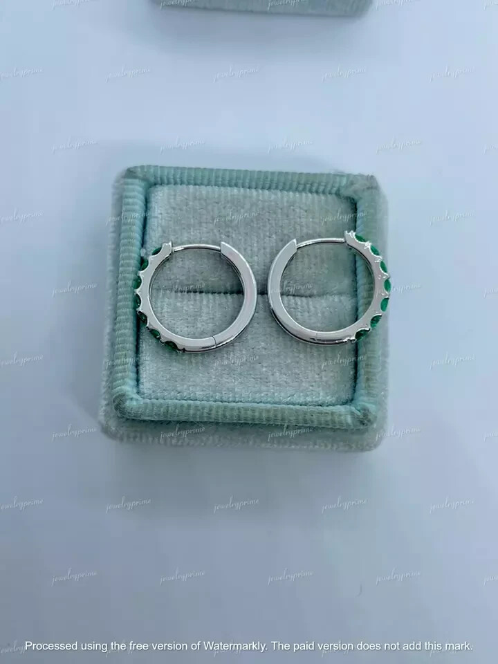 Occasion: Anniversary, Birthday, Christening, Christmas Main Stone Creation: Lab-Created Personalize: No Seller Warranty: Yes Theme: Beauty Metal: Sterling Silver Base Metal: Sterling Silver Cut Grade: Excellent Main Stone Shape: Round Handmade: Yes Metal Purity: 925 Style: Huggie Hoop Color: White Material: gemstone Secondary Stone: Emerald Signed: No Main Stone: Emerald Era: Undated Type: Earrings Wholesale: Yes Gemstone Clarity Grade: Eye Clean Features: Engraved, Nickel-Free Ear Area: Lobe Diamond Clarity Grade: Very, Very Slightly Included (VVS1) Brand: shinydiamonds Colored Diamond Intensity: Fancy Vintage: No Antique: No Main Stone Color: Green Main Stone Treatment: Not Enhanced Total Carat Weight: 1.70 carat approx