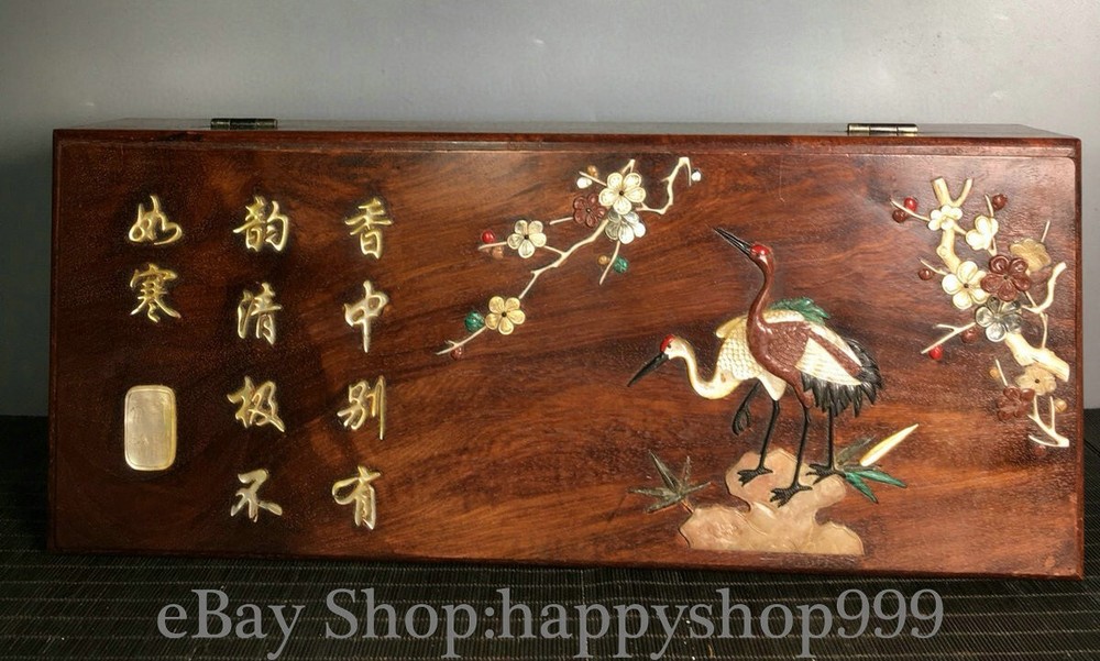 17.2" Chinese yellow Huali Wood Inlaid shells Flowers birds verse Jewelry Box You are bidding for a 17.2" Chinese yellow Huali Wood Inlaid shells Flowers birds verse Jewelry Box . It is in good condition without broken or fixing as photos showing and rare style from antique market. This is a great piece of valuable collection, a valuable personal alter or a very good present. the handwork is very fine with incredible detailling. Don't miss out this chance to get it . All the items we are showing is only one available and You will get the same one as photos. Condition Material : Wood Origin : Chinese Style : Same as photos showing Size : High 3.6 Long 17.2 Breadth 7.2 (inch) Weight : 2.6 KG----included the weight of packing materials Shipping cost by EMS or SF express (5-12 days) : Free Shipping. Terms of Sale We recommend the combine shipping and wholesale order , If you won more items once that we will give you a 5-10% di7scount off the price. Also We encourage you to make an offer if you're interested. Each piece is a testament to traditional craftsmanship and will make a stunning addition to any collection or home decor. Our priority is to ensure your satisfaction. Feel free to reach out with any questions or for additional information. Thank you for considering our items. About us We are business in Asian Antique and old collectable items over 12 years. My father is running them from China, korea, Singapore,Japan and Nepal every year and hold many rare items in stock. They are inculding the diference style porcelian , Cloisonne , Bronze。 Pottery . Silver also jade carving from difference time period. We are looking towards to have the friends online for working each other and learning. Thank you. Contact Me If you're in any way dissatisfied with your purchase or any problem of your order condition , Please let me know through "MY MESSAGES" or "Ask Seller Questions" though eBay. We will quickly to answer and try best to resolve it well for your happy . We are committed to ensuring that you are completely satisfied with every transaction. 100% Satisfaction guaranteed ! We will reply your mail with in 24 hours normally. Thanks for looking! We believe you will enjoy with our other items too !