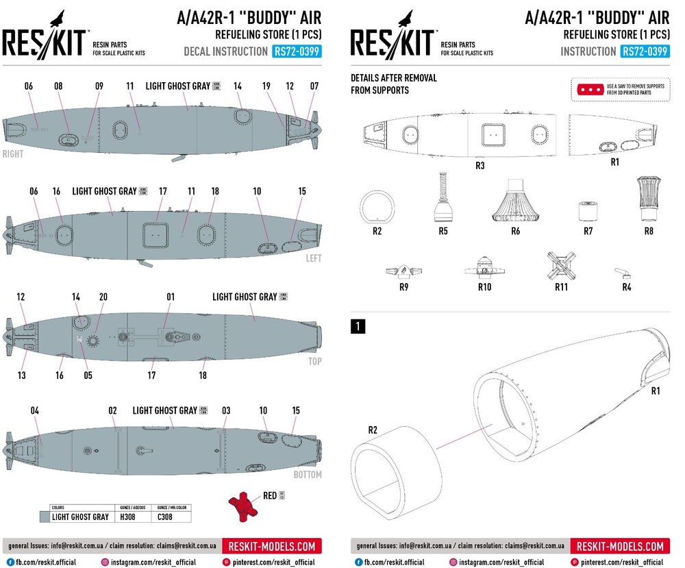 A/A42R-1 "Buddy" air refueling store (1 pcs) (F/A-18, S-3, MQ-25, A-6, EA-6, A-7, A-4) (3D Printed) - Scale 1:72 ResKit RS72-0399 - for Plastic Model Kit ---------------------------- If you have a desire to procure a GREATER NUMBER OF ITEMS THAN WHAT IS CURRENTLY DISPLAYED, kindly let us know, and we will happily modify our offerings to suit YOUR EXACT QUANTITY NEEDS. ---------------------------- Scale: 1/72 Manufacturer: RESKIT (Accessories for Scale Plastic Kits) Country/Region of Manufacture : Ukraine Features: Kit Condition : New in Box Type of equipment : Aircraft Type of product: FUEL TANKS Recommended kit: Any Category: RESIN & 3D ACCESSORIES 3D Printed fuel tanks ---------------------------- >>> Visit our eBay store! <<< You will find everything you need at great prices. Reskit: The Ultimate Upgrade for Your Scale Models Reskit is the leading provider of upgrade sets for scale models, offering a wide range of products to enhance the realism and detail of your models. Our sets include everything from engines and interiors to exterior accessories and weapons. Whether you're a beginner or a seasoned modeler, Reskit has the upgrade sets you need to take your models to the next level. Here are just a few of the benefits of using Reskit upgrade sets: Increased realism and detail: Our sets are made with high-quality materials and components that will add a touch of authenticity to your models. Improved performance: Our sets can help improve the performance of your models, making them more realistic and engaging. Reskit upgrade sets are the perfect way to add realism, detail, and performance to your scale models. With our wide range of products, you can find the perfect upgrade set to transform your models into showpieces.