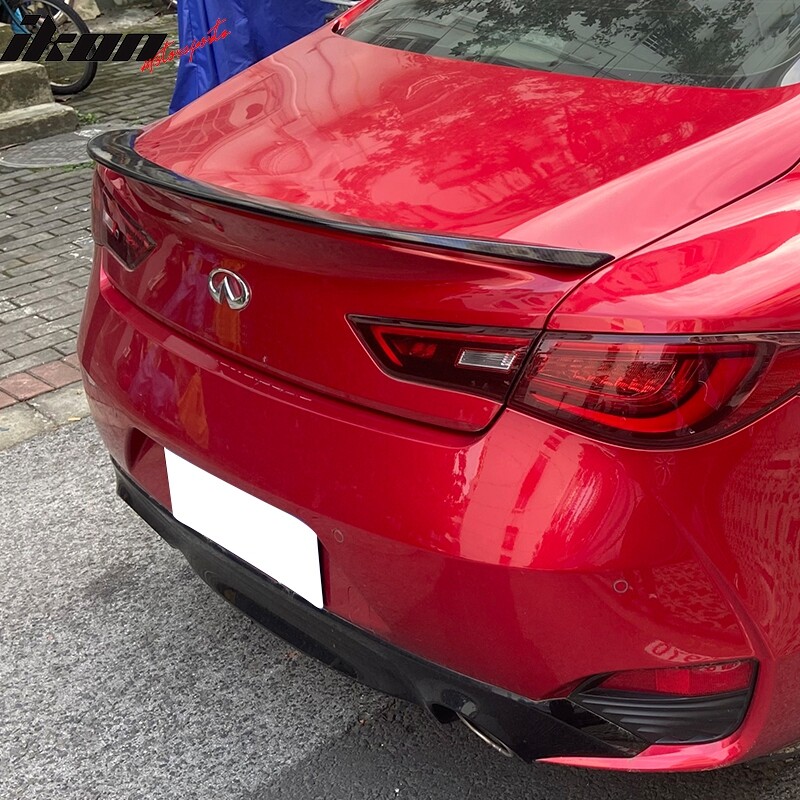 ikon BUMPER LIP + FRONT BUMPER LIP REAR BUMPER LIP LIGHTING + HEADLIGHTS TAIL LIGHTS CORNER LIGHTS BUMPER LIGHTS HEADLIGHTS LED LIGHTS EXTERIOR + TRUNK SPOILER SIDE SKIRT WINDOW VISOR FRONT GRILLE INTERIOR + FLOOR MATS STEERING WHEEL EXHAUST + EXHAUST CATBACK EXHAUST UNIVERSAL MUFFLER ENGINE + ENGINE OIL CAPS AIR FILTERS Fitment Fits 2017-2022 Infiniti Q60 Color Carbon Fiber Print Style X Style Material ABS Package Includes 1x Trunk Spoiler Installation Instructions Not Included Note: Please test fit items prior to any painting services, any products that are painted void warranty. All Packages Will Be Shipped Out From Our CA Or GA Warehouse. We Will Adjust The Shipping Location On The Basis Of The Item Current Stock And Your Order Delivery Address. Please Feel Free To Place Your Order! Shipping Rates Domestic 48 States FREE Shipping Canada $85 HI, AK, PR, GU, VI, APO, FPO $75 International $110 CA Sales Tax 10.75% Shipping Carrier UPS Ground, FedEx and USPS Priority Pilot (Truck) for Large Package Warranty 30 Days Money Back It is our goal to provide 100% satisfaction and peace of mind to our customers. If you are not satisfied with the products for any reason within 30 days of receiving the item. We will charge 25% restocking fees on returned items that have been installed, damaged, painted, cut and not authorized, etc. Please contact us to inquire how to waive the 25% restocking fees. (Items must be not opened in their original package. Any mark of installation, mounting, cutting, scratch or using will not be allowed.) Shipping and Handling are not refundable . 30 Days Return Seller Pay Shipping For Domestic Buyer. 30 Days Limited Warranty Warranty is for exchange only . All products come with a 30 days limited warranty against manufacturers defects including bulbs, led outage, and water leak. No exchange will be issued on products that have been damaged in any way . If your item is damaged during shipping, please refer to return section . All warranty claims must have an order number issued by our company. Return Damaged Items Due to the nature of the products we sell, we carefully inspect all packages prior to shipping. All of our products are sold as brand new, all damaged products are considered damaged during transit (even though outer boxes is not damaged). If you received a damaged or broken item, please contact us immediately with pictures so we can help you with the damage claim with the shipping carrier. No claims will be honored after 14 days upon item receive. When exchanging or returning, all products must be in original packaging with order number issued by our company clearly marked on the outside of the box. Packages received without a valid order number will be returned to the buyer and no credit will be issued. If the item was damaged, defected, or wrong item shipped, our RMA department will provide a pre-paid return shipping label via email if needed, also UPS claim will be filed, we will have to wait until the claim approved before we can exchange any item for customers. Installation is HIGHLY recommended to be done by skilled technicians who have the proper tools, equipment, and training to correctly and safely add equipment to your vehicle. These procedures should not be attempted by “do-it-yourselfers. Parts that are modified in any way or damaged as result of improper installation will not approved for return . Please allow 24 to 48 hours for issue of your RMA number . Please allow 10-14 Days to process your return or exchange once it has been received by our RMA department . All shipping and handling fees are non-refundable in any circumstances, unless it is approved by return department . Most of our products do not come with instructions and won't be provided , professional installation is highly recommended. Buyer assumes all risk on any installations method . Item is auction "AS IS" , no warranty is expressed . Store Policy All domestic shipments are made via UPS Ground for mid and large size packages, small package are shipped via USPS post office. All domestic shipments outside of the continental 48 states and PO Boxes are shipped via USPS post office. Shipping method will be determine by our company . USPS shipping rate is strictly for HI, AK, GU, VI, PR, APO, FPO buyers only . Local pick-ups are allow when available, but full amount is required. Shipment to Canada are shipped via UPS Canada Standard, other international shipments are made via USPS Express Mail (EMS), tracking is available for EMS . All small packages for International buyers including Canada, are shipped via USPS First-Class / Priority International Mail, no tracking # will be available, buyers assumes all risks for all lost packages . International buyers are responsible for all brokerage fees and duty tax , these fees are not charged by our company, and are not included in the total amount of the auction. If you have any question regarding why you are being charged this fee, please refer to your government official website . Brokerage fee varies upon the value of the product, for rate information, please refer to UPS. All items must be paid within 7 days , or an unpaid item notification will be filed, and item will not guaranteed in stock. Winning bidders will receive an email with Andale Checkout procedure sent to your ebay registered email address.Or simply click on the "Vendio Checkout" icon. Multiple auction bidders, just wait till all of your winning auctions end and complete the Andale Checkout procedure from the most recently email that you received from us. Ebay Message Is The Best Way To Reach Us Negative feedback will not help resolve any problems you have and might result in voiding of the item's warranty , please contact us via email or call us at the phone number provided on the invoice before leaving a negative feedback, our customer service rep will make best effort to help you with the issues. The best way to reach us is by ebay message . You can find this link at t