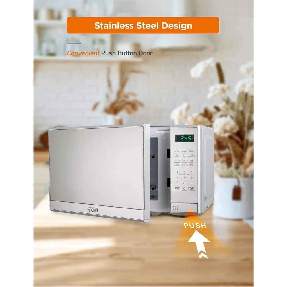 Stainless steel construction ensures durability Compact size allows easy maintenance Multi-stage cooking feature for added convenience Heat and re-heat your favorite foods and beverages with this outstanding COMMERCIAL CHEF microwave oven countertop. With an impressive capacity of 0.7 cubic feet, this 0.7 microwave ensures you can grab and go with delicious meals. Our fantastic microwave stainless steel (17.1" x 12.6" x 10.0") will fit easily on kitchen countertops in homes, apartments, RVs, dorms, and more. Weighing only 20.9 lbs., you can transport this portable microwave and stainless steel microwave countertop anywhere so heated food and drink is within reach. This small microwave oven has impressive power levels such as Time Cook, Time Defrost, Weight... Lumiskin 17.3 In. Width 0.7 Cu. Ft. 700-Watt Countertop Microwave Oven In Stainless Steel Stainless steel construction ensures durability Compact size allows easy maintenance Multi-stage cooking feature for added convenience Heat and re-heat your favorite foods and beverages with this outstanding COMMERCIAL CHEF microwave oven countertop. With an impressive capacity of 0.7 cubic feet, this 0.7 microwave ensures you can grab and go with delicious meals. Our fantastic microwave stainless steel (17.1" x 12.6" x 10.0") will fit easily on kitchen countertops in homes, apartments, RVs, dorms, and more. Weighing only 20.9 lbs., you can transport this portable microwave and stainless steel microwave countertop anywhere so heated food and drink is within reach. This small microwave oven has impressive power levels such as Time Cook, Time Defrost, Weight Defrost, & Power. Preset Menu Options include Popcorn, Potato, Pizza, Frozen Vegetable, Beverage, & Dinner Plate. Also included on the digital display is Clock & Kitchen Timer. Our small countertop microwave will heat from as little as 30 seconds to as long as you desire! Additional features include a door-style push button, 700 watts of power, an efficient turntable that guarantees even heating, child safety lock, yellow & green LED lighting, and sleek stainless steel design. What's not to love about this COMMERCIAL CHEF microwave 0.7 cu ft? Its reliable heating ability, impressive functions & settings will have you heating and re-heating throughout your busy day! Touch controls with digital LED display Stainless steel design 10 microwave power levels Defrost by time/weight Kitchen timer/digital clock 1-6 minutes express cook 6 pre-set menus Programmable, multi-stage cooking Child safety lock Push button door 700-Watt of power Turntable radius: 10 in. Reinforced packaging Click here for more information on Electronic Recycling Programs Item Specifics Brand Unbranded Type Countertop Microwaves Model GK-CHM7MS MPN CHM7MS Item Length 12.6 in Item Width 17.1 in Item Height 10 in Product Weight 20.9 lb Appliance Category Microwave Appliance Type Countertop Microwave Color Finish Stainless Steel Color Finish Family Stainless Steel Compatible Trim Kit Model Number N A Controls Location Side Controls Door Swing Style Right to Left Swing Interior Light Type Halogen Microwave Door Release Push Button Microwave Features Safety Lock,Turntable,With Interior Light Microwave Settings Beverage,Defrost,Pizza,Popcorn,Reheat Microwave Size Small Number of One-Touch Settings 6 Number of Power Levels 10 Product Weight (lb.) 20.9 lb Trim Kits Available No Vent Location Back Wattage (W) 700 W Safety Listing UL Capacity of Microwave (cu. ft.) 0.7 cu. ft. Depth With Door(s) Open 90 Degrees (in.) 25.59 in Interior Depth (in.) 12 in Interior Height (in.) 8.1 in Interior Width (in.) 12 in Product Depth (in.) 12.6 in Product Height (in.) 10 in Product Width (in.) 17.1 in Turntable Width (in.) 10 in Payment We accept PayPal payment,PayPal Credit,Credit card or debit card and so on. Payment should be completed within 4 (Four) days of auction closing. Or unpaid dispute will be filed for closing auction. We will leave a positive feedback immediately after payment is received. We appreciate a positive feedback as much as you do. If for some reason there is any issue with the purchase, please contact us prior to leaving feedback, we will be glad to work together and provide a satisfying solution. Shipping 1.We usually ship within 3-5 business days of receiving cleared payment., and we provide Free Shipping for most items. 2.Fast shipping is very important for us. We use multiple fulfilment warehouse around the United States. We only ship to the lower 48 States and do not ship to PO Boxes. 3.Please make sure the correct Ship-To address is entered before checking out. Once the payment is completed, you may not be able to change the shipping address. We shall not be held responsible for any wrong or undeliverable addresses. Returns 1.We provide 14 days return upon the buyer received the item. It must be in good condition and you will undertake the returned shipping cost. 2.We will offer replacement or refund for all DEFECTIVE items (not including damage resulting from accidents / abuse / misuse / improper care), but a photo is needed for our reference beforehand and should be reported to us within 7 days from purchase date. 3.All items are brand new and have been passed the quality check. All are packed in a good condition before item dispatch. Contact Us 1.Dear customers, we appreciate your business, our aim is to provide Top Level Customer Service,if you are satisfied with our service, please leave us a 5 star positive feedback . 2.If you have any question or concern about your eBay order, please feel free to let us know. We will try our best to reply all questions within 24 hours. However, no answer will be replied during weekends or holidays. Please allow up to 48 hours delay in receiving our response after long weekends or holidays. 3.Please via eBay Message for a solution for resolutions before leaving negative feedback, we strive to providing the greatest service and bringing the highest satisfaction to all of our custome