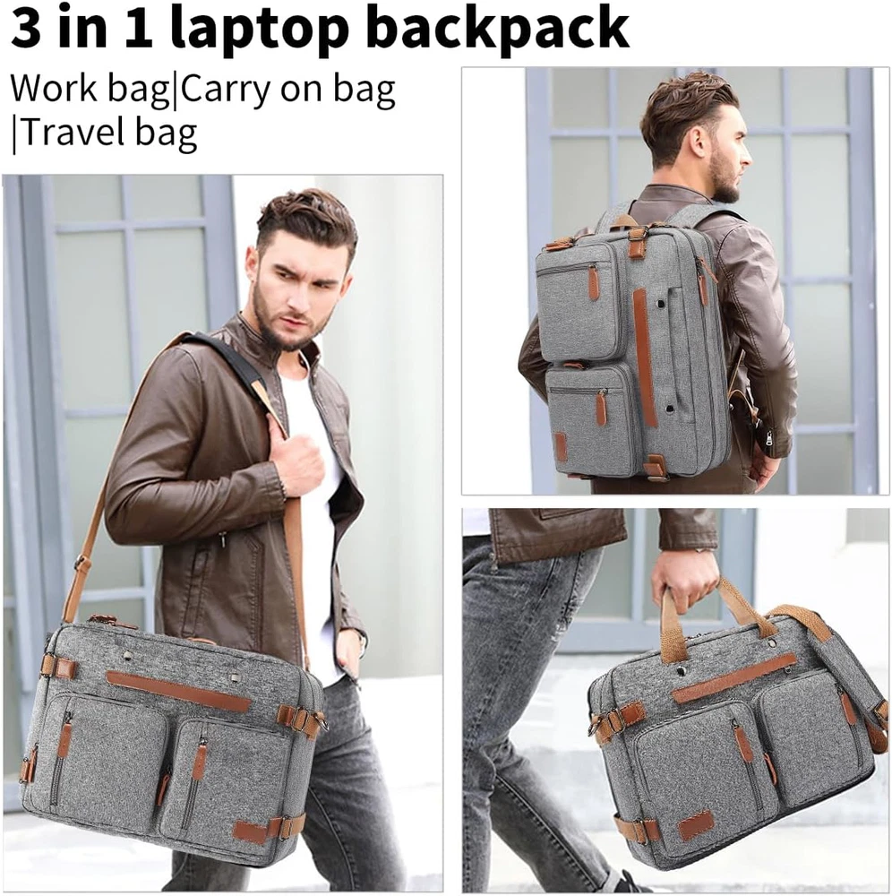 Fast Shipping Great Customer Support Satisfaction Guaranteed DESCRIPTION Shipping Shipping Shipping All domestic packages are shipped for Free (Unless other shipping method was selected during the checkout) Most items ship and arrive much sooner than the estimate delivery date. Usually within 2-3 days from payment. However, we have longer estimates to compensate for the occasional delay or supply chain breakdown. We do not accept P.O. BOXES - PLEASE PROVIDE A PHYSICAL ADDRESS Return Return Return In the event that you would like to return your purchase, we allow returns that are processed within the defined return date (the return date is to be found in the return policy/shipping and handling section) Please contact us for a return authorization and the return shipping address. Payment Payment Payment PayPal is our preferred method of payments it's the quickest, easiest and most secure way to pay for your goods or services online. PayPal offers buyer and seller protection should there be a problem. If you do not have a PayPal account, to get started and buy your first item with us is very easy. Simply click on the 'Buy It Now' button and follow the eBay checkout steps. Select PayPal as the payment method you then will be given the chance to enter your card details in to PayPal's secure checkout in order to pay for your order. Once the payment has been made, you will then be given the opportunity to make your own PayPal account to make paying for your items in the future very easy. Should there be a problem with payment please do let us know. Feedback Feedback Feedback Customer satisfaction is very important to us. If you have any problem with your order,please contact us and we will do our best to make you satisfied, please do not leave a negative feedback before we resolve your problem. We guarantee that your issue will be solved quickly. As long as you are happy with your purchase of , please leave us a positive feedback. Your feedback is very important to us it affects our search placement on eBay. We will leave a positive feedback for you in return automatically once we receive your feedback. Contact Us Contact Us Contact Us If you have any queries, please contact us via ebay. We usually respond within 24 hours on weekdays. Thank you for visiting our ebay store! 【3-in-1 Multifunctional Design for Laptop Bag】 Seamlessly switch between different styles to meet your needs. This versatile backpack can be used as a laptop backpack, messenger bag, business backpack, briefcase, laptop bag, university backpack, work bag, crossbody bag, or travel backpack. Perfect for work, commuting, university, airplane travel, walking, and camping. Please note, THIS ITEM IS NOT INTENDED FOR USE BY CHILDREN 12 AND UNDER. 【Comfortable and Durable Men's Work Bag】 Crafted with PU leather for a comfortable feel and enhanced durability, our laptop backpack features a non-slip and non-shedding irregularly patterned leather shoulder pad. The adjustable shoulder straps are made of thickened breathable mesh foam, offering shock resistance and reducing shoulder pressure. 【Durable and Waterproof Computer Bags for Men】 Constructed with high-quality thick canvas and nylon material, this laptop backpack is hard-wearing and water-resistant, ensuring long-lasting protection for your laptop and personal belongings. Never worry about rain again. The double foam lining provides dual protection for your computer. 【Stylish Design & Perfect Gift】 With its stylish minimalist look and ample storage space, This laptop backpack is an excellent choice as a work backpack,work bag, university backpack, or briefcase for men. It also makes a great gift for students, friends, husbands, wives, and men in general. 【Extra Large Capacity for Men's Laptop Backpack】 Size: 17.3x6.3x12.6 inches. We presents a professional 17.3-inch laptop bag with 12 pockets, offering sensible and efficient storage for your everyday carry. Featuring a built-in laptop compartment, this backpack is designed to hold up to a 17.3-inch laptop and iPad with a magic buckle and padded protection. 17.3 Inch Laptop Backpack Men 3-in-1 Work Bag Briefcase Grey Click here to see description Fast Shipping Great Customer Support Satisfaction Guaranteed DESCRIPTION Shipping All domestic packages are shipped for Free (Unless other shipping method was selected during the checkout) We ship within two business days of payment, usually sooner Standard FREE shipping takes between 3-5 business days Expedited shipping takes between 2-3 business days Overnight shipping takes between 1-2 business days We do not accept P.O. BOXES - PLEASE PROVIDE A PHYSICAL ADDRESS We Ship Globally using ebay's GSP, the item is sent to a logistic center in KY and shipped from there to the rest of the world. International customers are responsible for all duties and taxes Contact your local authority for questions related to the amount of duties or taxes you will be responsible for Return In the event that you would like to return your purchase, we allow returns that are processed within the defined return date (the return date is to be found in the return policy/shipping and handling section) Please contact us for a return authorization and the return shipping address. Please contact us for a Return Merchandise Authorization (RMA) number. We advise you to use a reputable carrier service when returning your goods. Please pack all returns appropriately. We ship globally Via eBay's global shipping program (GSP). Thus we don't cover returns for items shipped globally. Buyers returning such items will be refunded ONLY for the item's cost and not for the shipping. please check the Voltage information and make sure it matches the one in your country. In case it's not stated in the description, do ask us. Payment PayPal is our preferred method of payments it's the quickest, easiest and most secure way to pay for your goods or services online. PayPal offers buyer and seller protection should the