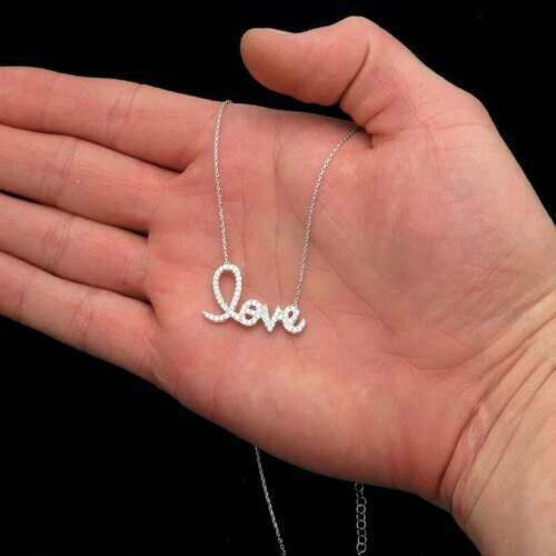 1.75 CT Round Cut Moissanite Womens Beautiful LOVE Pendant 14K White Gold Plated