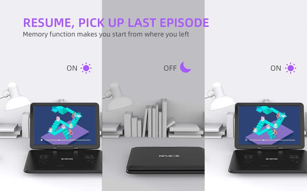 Welcome to “”---- Take home, bring tons of fun for your kids and family *portable dvd player, a great choice as a gift for your baby’s Birthday, Children’s Day or holiday* *Portable Carrying for Joyful Travels* This dvd player is lightweight and portable, convenient to stock and carry for your travel, and has shock resistance function, which can keep it stable even on a rugged road. *Better Using Experiences with Free Accessories* What if the battery is in low power when out for travelling? What if the main power charger was missing? The car charger can be the best back support for you. Easily plug it into your car charging port and the discs are playable during charging time. *Wanna enjoy a bigger and clearer TV screen?* The AV cable can make it possible. Just match the 3 color lines on the portable DVD player and TV to start sharing what you loved with your friends and family. *The Latest Eye Protection Screen, More Comfortable and Healthier* Used the latest TFT eye protection screen to reduce flicker and dazzle maximally,this portable DVD player will better help your kids away from near-sightedness. *Supported Multiple Formats* Genuine Disc Formats: CD, DVD, DVD + R(-R), DVD + RW(-RW), VCD, SVCD-R(RW), CD -R(RW) Video File Formats: VOB, AVI, MPEG 1, MPEG 2, MPEG 4, XVID Audio File Formats: MP3, WMA Image File Format: JPEG Package Including: 1x 15.6 inch portable DVD player 1x Car charger 1x Remote controller 1x AV cable 1x Power adapter 1x User manual High Resolution Screen -- portable DVD player adopts 15.6 Inch 1280*800 HD swivel large screen. Upgraded screen can relieve visual fatigue caused by long-term viewing. Thanks to 270° rotation and 180° flip feature, it provides extreme viewing experience and easy positioning. 5000mAh Battery Capacity -- Reliable battery capacity ensures continuous playing for up to 6 hours. The portable DVD player also comes with certificated AC power adapter and car charger (70 inch) in the package, no more worries about battery dies out when you out. Support Multi Formats -- Direct play in formats: CD, DVD, DVD ±R, CD -R(RW), SVCD -R(RW), DVD ±RW, VCD (Not support Blu-ray and Dolby discs). Supports multi-media files via USB and SD Card (up to 32G), such as VOB, AVI, MPEG, MP3, WMA, JPEG. Region-free makes it easy to play discs from all regions. Humanized Function -- To ensure that customers are not interrupted while using the disc, this portable DVD player has a built-in Anti-Shock function to protect the disc reading process. It can effectively reduce the video interruption caused by shaking. Kids' Companion -- Simple operating system and large volume make this portable DVD player perfect for kids and the elderly. It provides companionship to your children and parents when you have a busy time. Customer Help -- offers problem-solving assistance to all customers. If you are experiencing issues with your device, we will deliver a dependable solution within 24 hours.