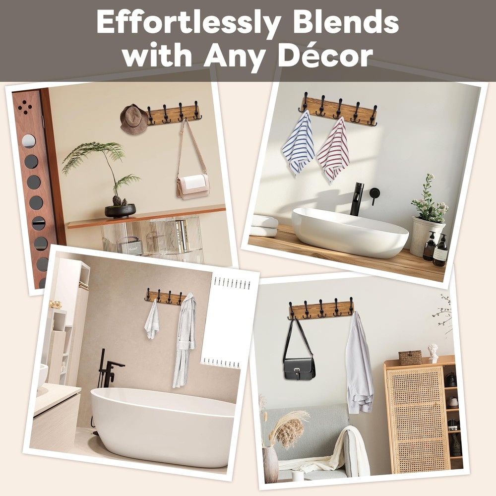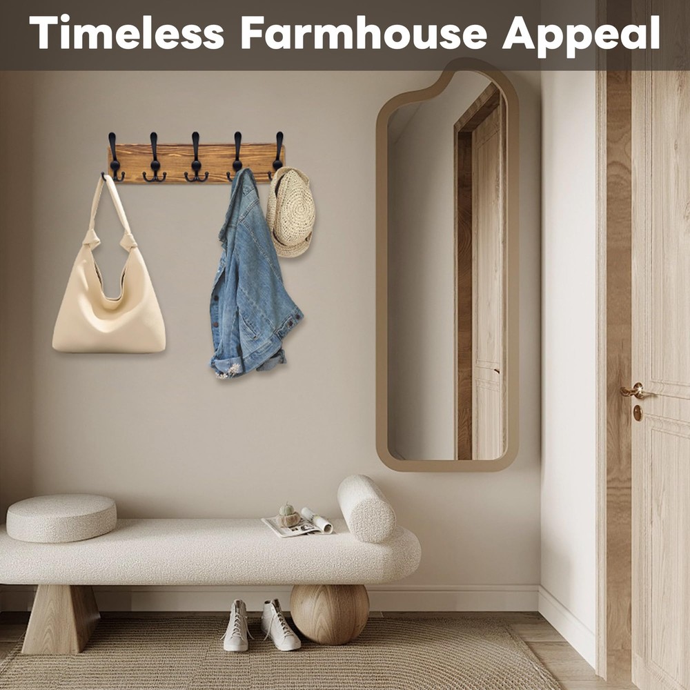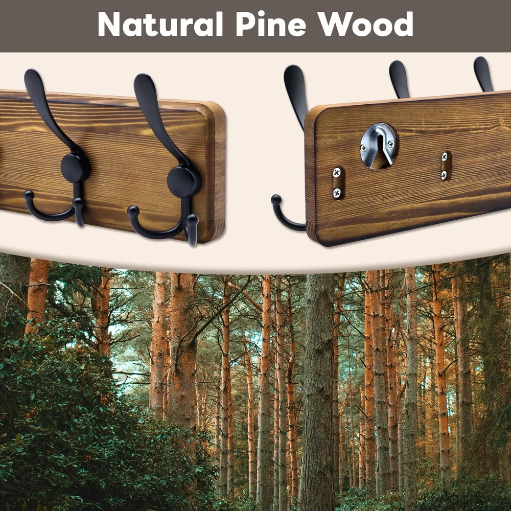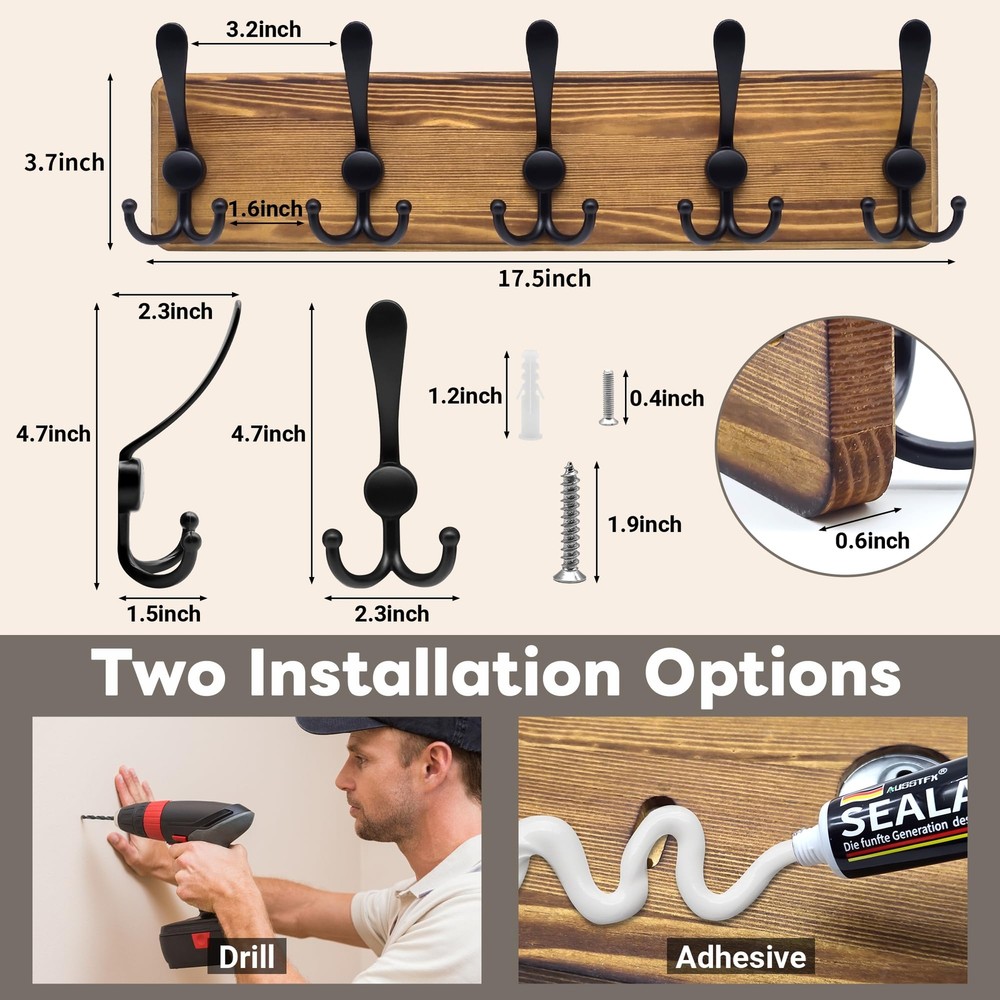 17.5'' Wall Mounted Coat Rack with 5 Triple Hooks- Solid Pine Wood, Wall Mounted or Adhesive Coat Hanger for Entryway, Mudroom, Bathroom - Farmhouse Decor for Towels, Hats, Keys,Bags - Brown Premium Quality & Durability: Crafted from fine pine heartwood and sealed with natural wood wax oil, this coat rack is built from 100% solid wood. It offers exceptional strength and a sophisticated touch for everyday use Versatile Tri-Hook Design: Featuring a unique double-layer tri-hook system, this wall hangers maximizes hanging space. Perfect for coats, hats, bags, backpacks, towels, keys and more, it helps you keep your home tidy and organized with ease Safe Rounded Edges: The thoughtfully designed rounded edges on all hooks protect your clothes from scratches and damage. It's perfect for hanging delicate fabrics, ensuring your garments stay in pristine condition Effortless Installation: Comes with a positioning card and all necessary hardware for both drilled and no-drill installation options. This ensures a hassle-free setup, allowing you to securely mount the rack with minimal effort Elegant Natural Design: Combining functionality with a natural pine aesthetic, this adhesive hooks adds a touch of elegance and warmth to any entryway, bedroom, door, or bathroom, enhancing your home's décor with its unique charm Installation Instructions for Wall Coat Rack Drilled Installation Steps 1.Mark the Holes: Take out the positioning card provided in the package. Hold the positioning card against the wall where you want to install the coat rack. Use a pencil or marker to make marks on the wall through the holes on the card. 2.Drill the Holes: Using the marks as a guide, drill holes into the wall at the marked spots. 3.Insert Expansion Screws: Place the expansion screws into the drilled holes. 4.Mount the Coat Rack: Align the coat rack with the inserted screws. Secure the coat rack onto the screws by tightening them with a screwdriver. Non-drill Installation Steps 1.Clean the Wall Surface: Use a towel to thoroughly clean the wall surface where you intend to install the coat rack. Ensure it is dry and of dust. 2.Apply Non-drill Adhesive: Evenly apply the non-drill adhesive to the back of the coat rack. 3.Press and Secure: Firmly press the coat rack against the wall. Use the auxiliary stickers provided to secure the coat rack in place. 4.Wait for Adhesive to Set: Allow the adhesive to set by letting the coat rack sit undisturbed for 72 hours. Tips: For the drilled installation, ensure you use the correct drill bit size for the expansion screws. When using the non-drill adhesive, avoid placing heavy items on the coat rack until the adhesive has fully cured. A level included to ensure your coat rack mounted straight for a professional look. By following these steps, you will securely and effectively install your new wall coat rack. Enjoy your organized and stylish new addition! SHIPPING Domestic Buyers - We have confidence in our products, but if you are not fully satisfied please contact us within 30 days of purchase and you will get full refund. - We ship within 3 business days of payment, usually sooner - We offer FREE shipping on all orders! - We only ship to the lower 48 states, no APO/FPO addresses or PO Boxes allowed International buyers – please note: Import duties, taxes, and charges aren't included in the item price or postage cost. These charges are the buyer's responsibility. - Please check with your country's customs office to determine what these additional costs will be prior to bidding or buying. * Order Cancellation Policy ** You can return a product for up to 30 days from the date you purchased it. 1. The seller reserves the right to cancel the special case only due to eBay cancellation fee. 2. The decision of seller is the final. 3. The seller will respond to the cancellation request within 2 business days. Please wait for the result of cancellation. 4. In case the cancellation is not completed by some reasons, the buyer can follow the options below to get the refund. 4.1 The buyer can reject the item when it arrives. 4.2 The buyer can send the item back to the seller within 30 days If the buyer receives item (USA Shipment ONLY). The seller will provide the FREE return label to the buyer when the buyer opens " Return Item" case on eBay by using the reason as "Change my mind" ONLY. 5. When buyer has placed the order. The order will be processed and completed by automatic warehouse system within 5 minutes. In case that buyer sends the cancellation request after 5 minutes of placing the order, the request will be rejected. **Sending direct message to cancel the order is not allowed for every case.* Return Policy For the return case - If buyer would like to return the items for refund or replacement, please CONTACT SELLER to receive the free return label from seller. The refund or replacement will be processed with the tracking number of return label which is provided by seller only. The other ways of return which are not approved by seller will not be processed for the refund or replacement.