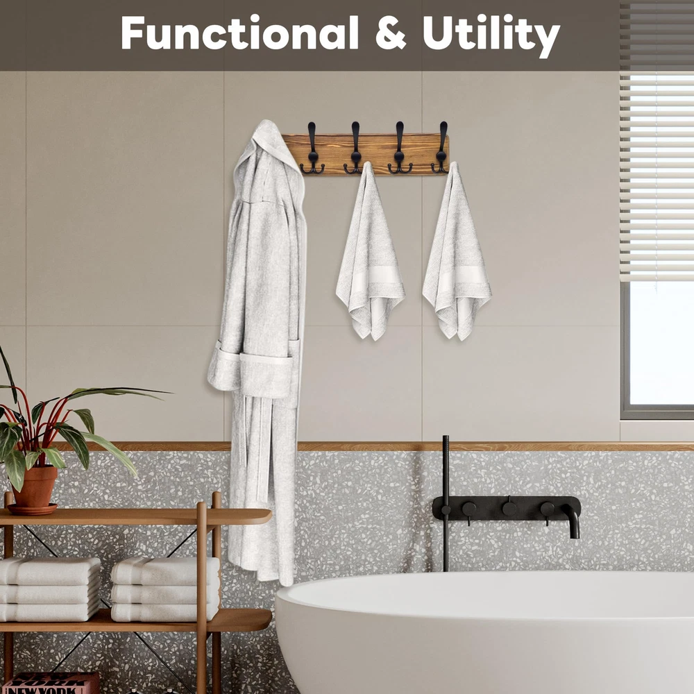 17.5 Inch Solid Pine Wood Wall Mounted Coat Rack with 5 Triple Hooks