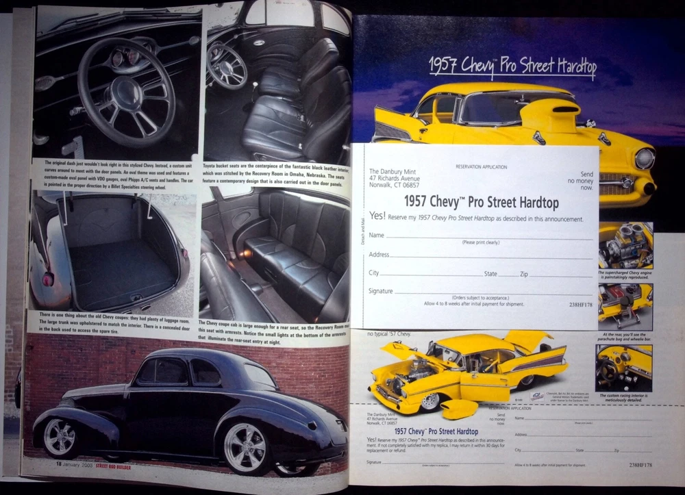 Take advantage of the magazine?s flat-rate shipping in the same package! Adding two or more to your shopping cart and checking out the flat rate will apply. Feel free to reach out if there are any problems, and I can always send you an invoice with the flat rate. 175 TECH TIPS & STYLING IDEAS - STREER ROD BUILDER MAGAZINE, JANUARY 2003 The magazine has minor wear; please look at the magazine photos. See the seller’s listings for full details and a description of any imperfections. We will be listing new magazines regularly; please follow our store. This magazine will be shipped in a vinyl bag to achieve the cheapest first-class rate due to the advertisement in the magazine; we can't ship media mail. MAKE AN OFFER by clicking the "MAKE OFFER" Button WE DO OFFER COMBINED SHIPPING ON ALL ORDERS. The magazine has minor visible wear . It may have very minimal identifying marks on the inside cover or outside. There are no missing pages, some creases, tears, or underlining/highlighting of text or writing in the margins. No matter what happens, If you need additional information on this product, feel free to contact us, and we will provide it ASAP.
