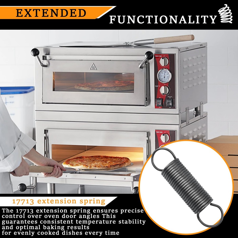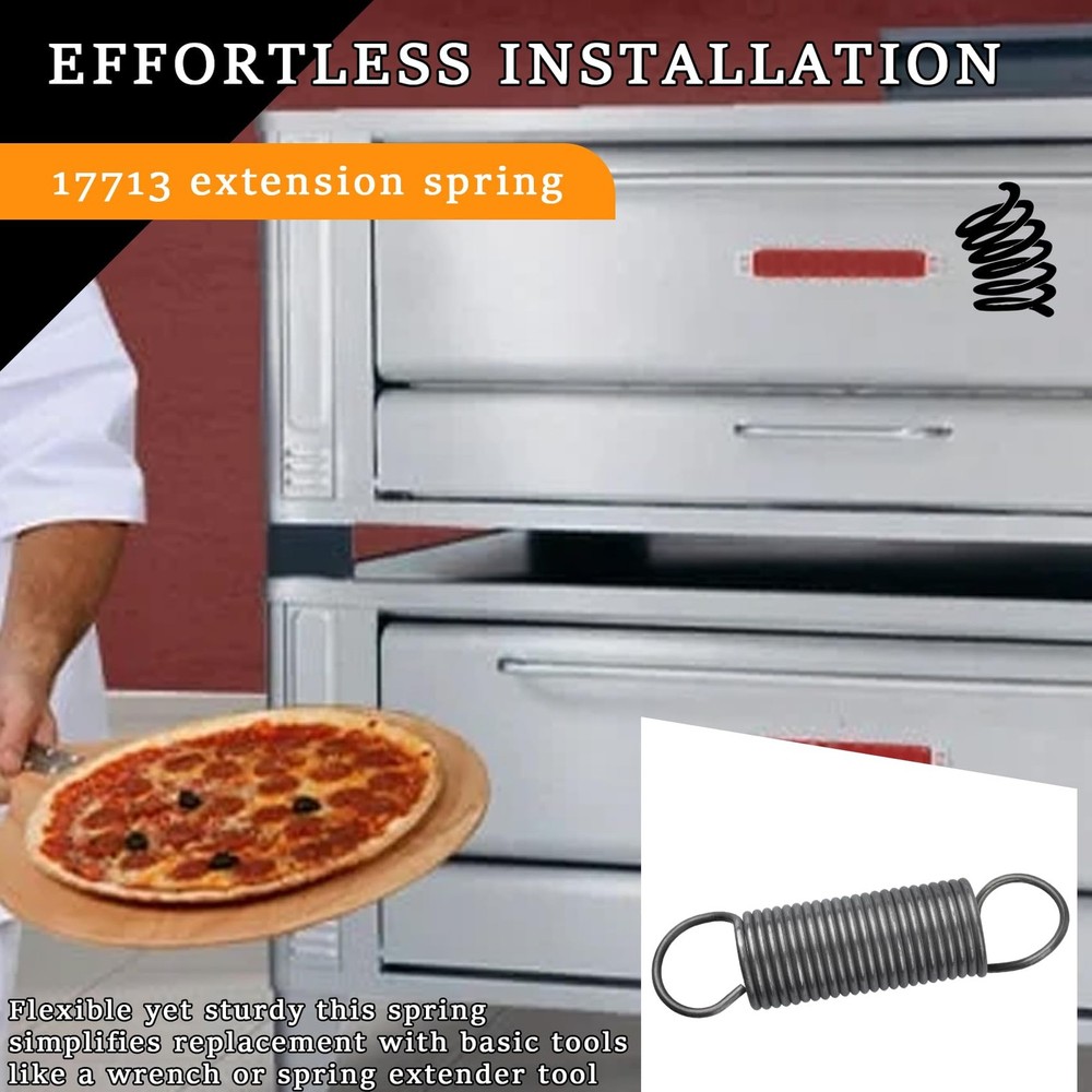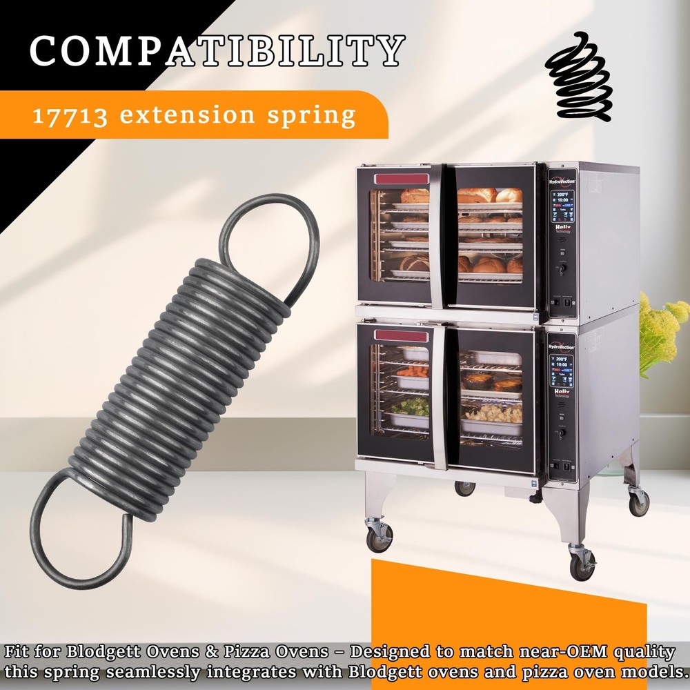 Extended Functionality – The 17713 extension spring ensures precise control over oven door angles, maintains a secure seal during use, and prevents heat leakage. This guarantees consistent temperature stability and optimal baking results for evenly cooked dishes every time Fit for Blodgett Ovens & Pizza Ovens – Designed to match near-OEM quality, this spring seamlessly integrates with Blodgett ovens and pizza oven models. Enjoy reliable performance that mirrors original parts at a fraction of the cost Premium Durability – Crafted from high-grade spring steel, this corrosion-resistant spring excels in high-humidity and high-temperature environments. Its superior elasticity and shape retention ensure long-lasting reliability even under frequent use Effortless Installation – Flexible yet sturdy, this spring simplifies replacement with basic tools like a wrench or spring extender tool. Save time and effort while restoring your oven’s functionality in minutes Package Contents & Support – Includes 1 brand-new 17713 oven spring. Before purchase, double-check your oven model and spring dimensions for compatibility. For inquiries, contact our team via email—we’re committed to prompt assistance Extended Functionality – The 17713 extension spring ensures precise control over oven door angles, maintains a secure seal during use, and prevents heat leakage. This guarantees consistent temperature stability and optimal baking results for evenly cooked dishes every time Fit for Blodgett Ovens & Pizza Ovens – Designed to match near-OEM quality, this spring seamlessly integrates with Blodgett ovens and pizza oven models. Enjoy reliable performance that mirrors original parts at a fraction of the cost Premium Durability – Crafted from high-grade spring steel, this corrosion-resistant spring excels in high-humidity and high-temperature environments. Its superior elasticity and shape retention ensure long-lasting reliability even under frequent use Effortless Installation – Flexible yet sturdy, this spring simplifies replacement with basic tools like a wrench or spring extender tool. Save time and effort while restoring your oven’s functionality in minutes Package Contents & Support – Includes 1 brand-new 17713 oven spring. Before purchase, double-check your oven model and spring dimensions for compatibility. For inquiries, contact our team via email—we’re committed to prompt assistance