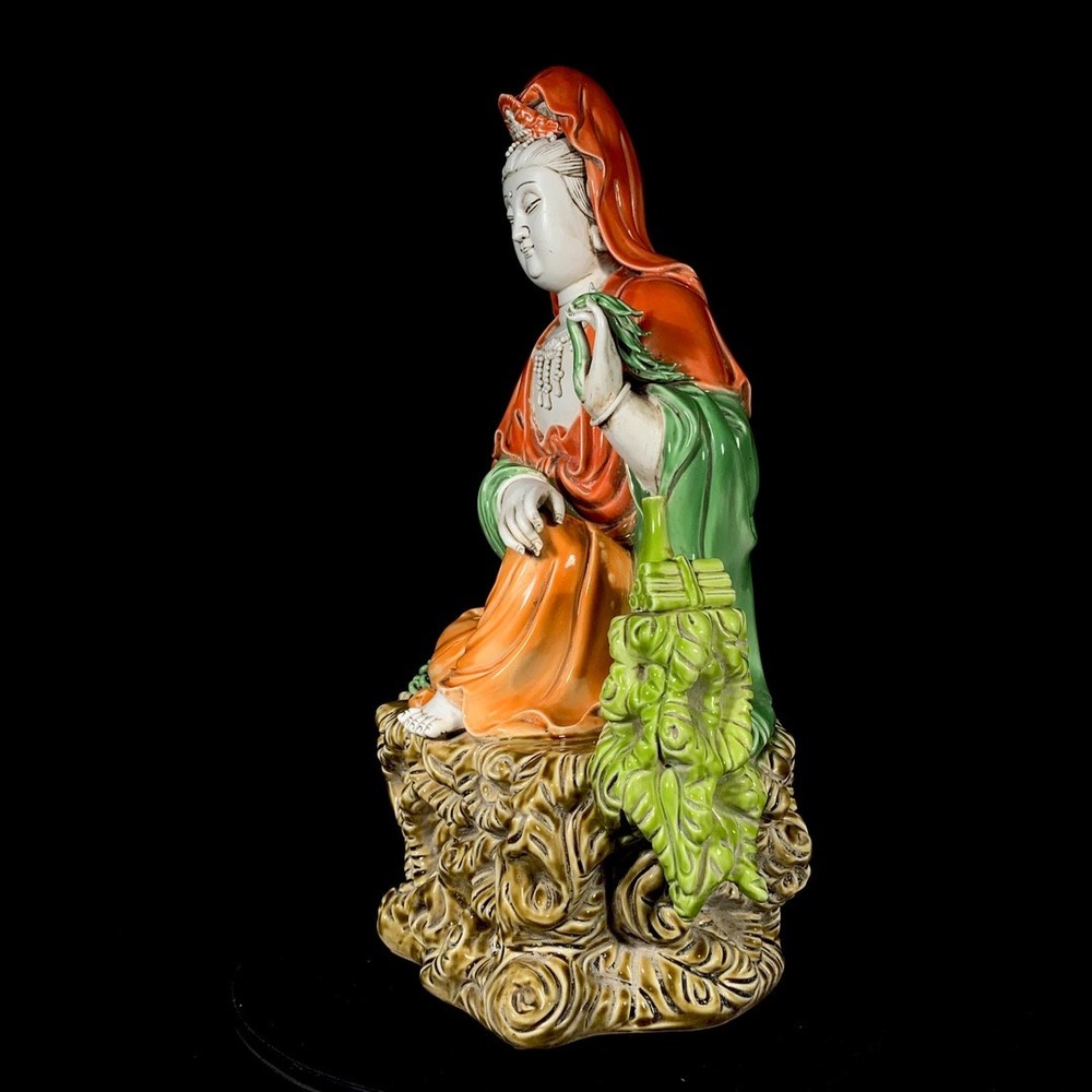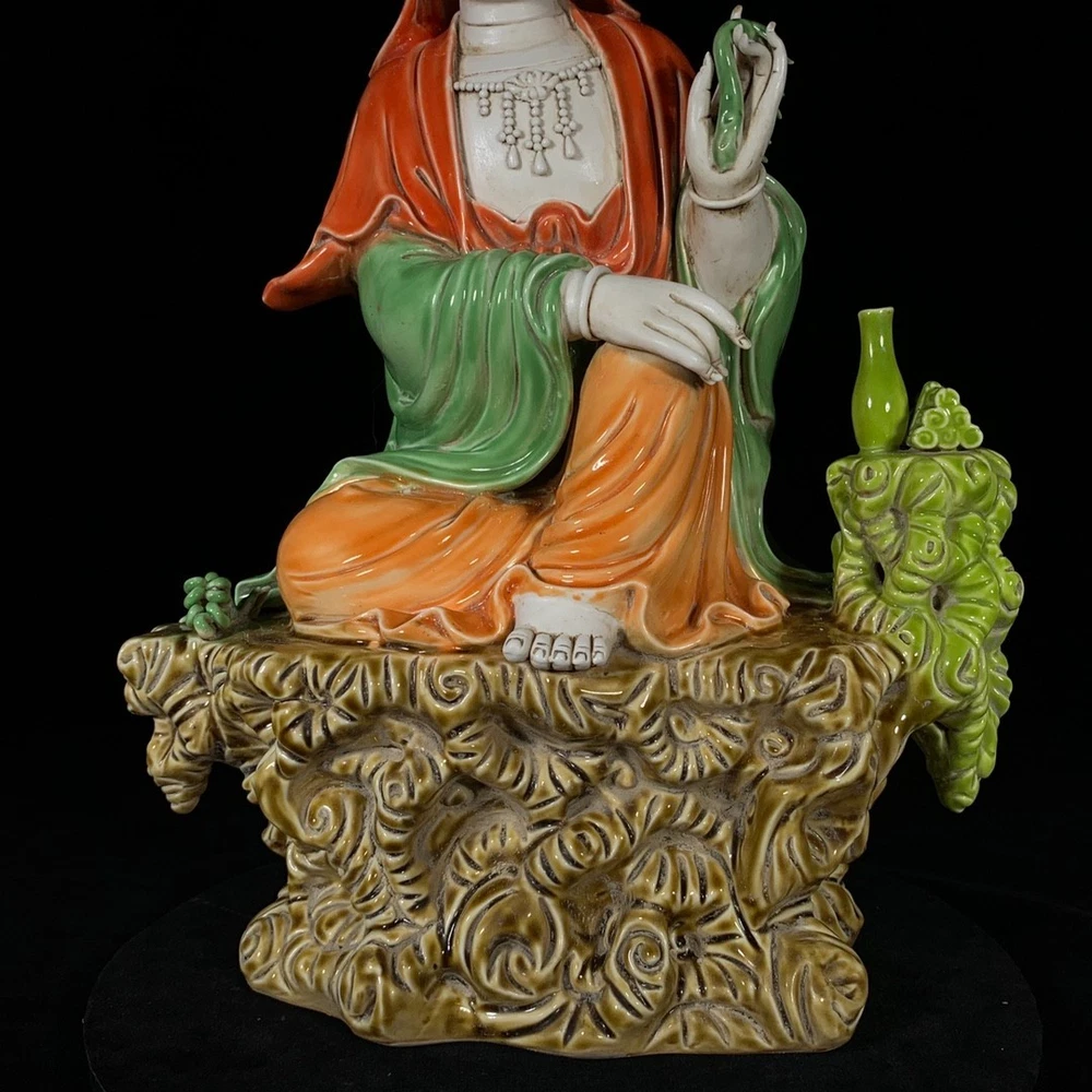 The product is a 17.7" old Chinese Dehua kiln porcelain figurine of Kwan-yin sitting on a rock carefree. This antique original piece from the Qing Dynasty features handcarved details typical of Chinese artistry. Made in China, this figurine showcases traditional craftsmanship and regional origins, making it a unique and culturally significant piece for collectors of Asian antiques. With a height of 45cm, this Kwan-yin figurine embodies the elegance and spirituality of ancient Chinese art. Size: H45, W 28cm AA06 德化瓷加彩自在观音,高45厘米 直径28厘米 PAYMENT Please pay within 7 days of purchase, otherwise the order will be closed. DELIVERY DETAILS Shipping: about 7-15 days to arrive. International shipping: about 12-25 days to arrive. TERMS OF SALES About usIf which item was damaged or lost on shiping way. Please don't Worried and angry, Please be sure to contact we first. We are very willing to accept everything. and I will do my best to help you to solve the problem by communication. So only by friendly communication,is to resolved the problem a good way. however, some buyers before solve the problem first to our account leave neutral and negative feedback (this kind of behavior is not welcome) Contact us Do not forget to give us a positive 5 star rating after receiving your item. This is very important. thank you very much. We hope you are satisfied with our products and services. Thank you for your understanding of each seller, I wish you a happy shopping! Happy everyday. If you have any question, please contact us, we will give you the answer in a timely manner. ABOUT US We are a company that we collect beautiful Chinese antiques and fine arts and crafts,Art is the human best interpretation of beauty. We collect the folk fine art from China. Our collection of Chinese porcelain, purple clay sculpture. We experienced, vision, provides the high-quality service for you, would you please come into our store, sharing the Oriental civilization interpretation of beauty! Thank you very much!