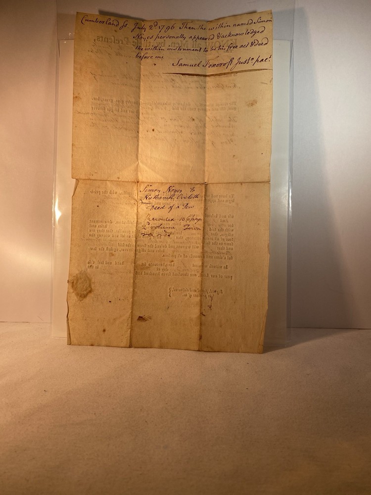 1796 $40 Deed For A Church Pew in the Meeting House Simon Noyes to Nathaniel Evelith New Gloucester Mass.