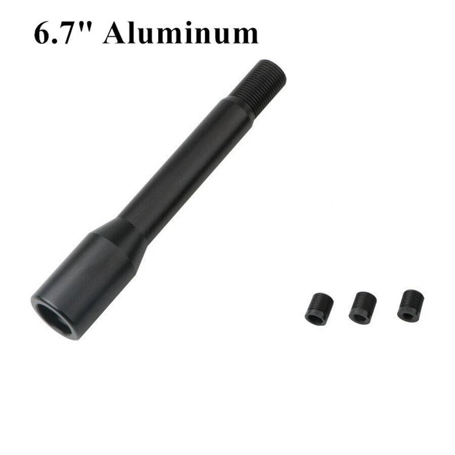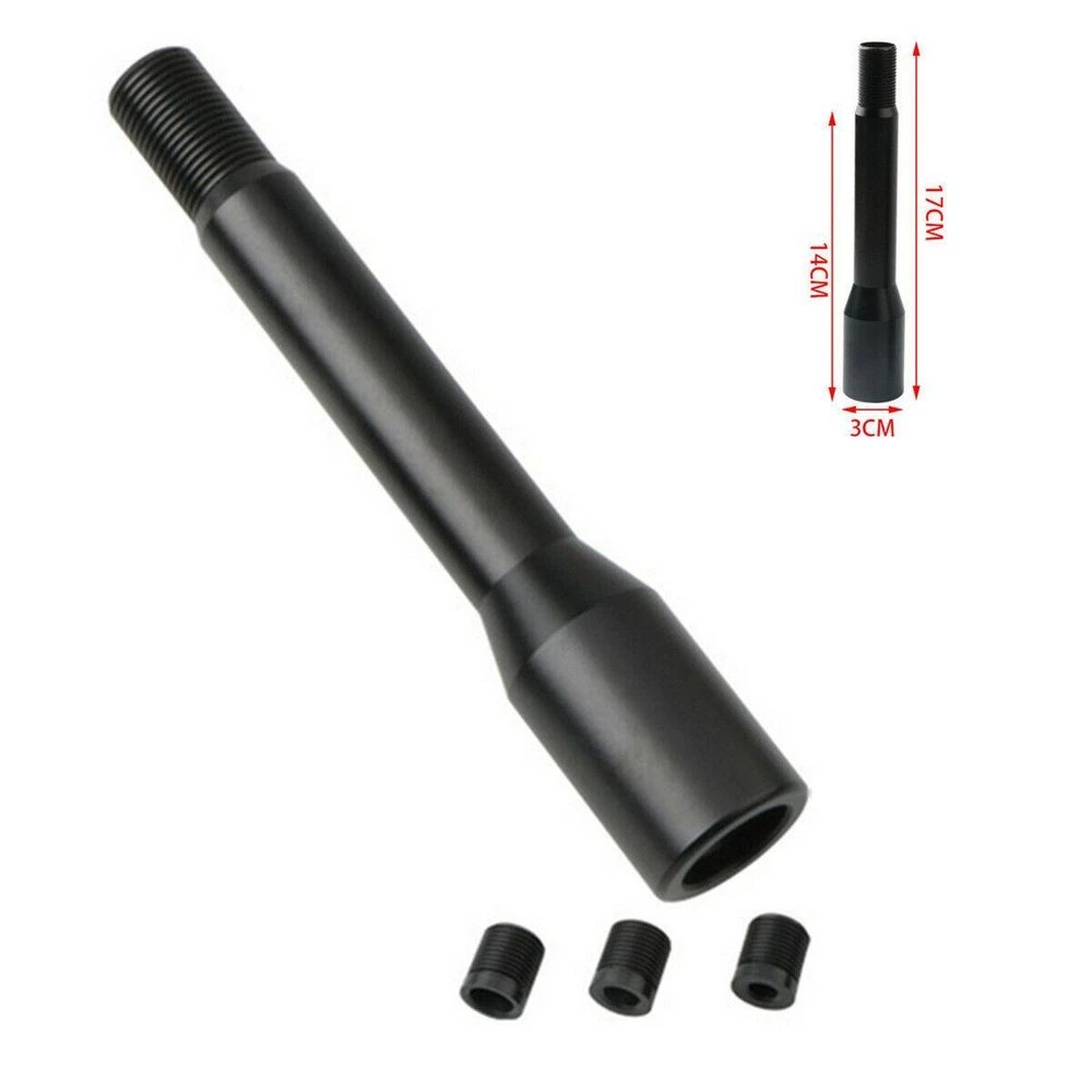 Product Description 17CM/6.7In Aluminum Black Shift Knob Extender Extension Lever Gear Manual Shifter Rod Add our listing to Watchlist Or Add to Cart , you will get more discount Description: Condition: 100% Brand New Material: Aluminum Alloy Color: Black Anodized Finish Dimension:170mm, can be extended by 140mm after installation Features: Fit for most manual vehicles, Please check the adapter's size.(Please refer to the sizes which we provide above) High resistance, non-corrosive, high temperature tolerance and low thermal expansion It will improve driving feel and shifting due to low weight and sturdy It is a good choice for you to update your car Fitment: Universal fit for most manual transmission cars Installation method: 1. Remove the shift head of the original car 2. Remove the aluminum alloy sleeve at the bottom of the shift head 3. Take the rubber sleeve to fit the size of the gear lever 4. Turn the rubber sleeve into the gear lever 5. Put the gear head directly on the gear lever (note that first put the aluminum alloy cover on the gear lever) Package Includes: 1 x Car Gear Knob Note: 1. We provide as clear pictures and measurements as possible. Please check as much as possible to ensure that the item is what you need. 2. Due to manual measurement, please allow 0.5-1 inch difference. (1 inch = 2.54 cm) eBay Cross Border Trade powered by ChannelEffect