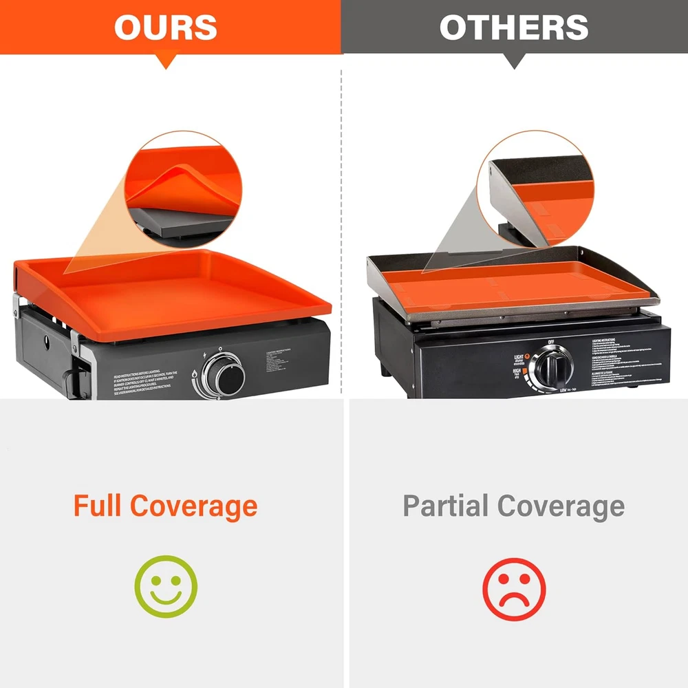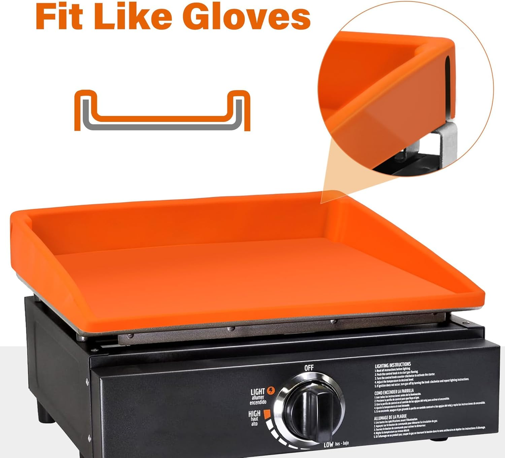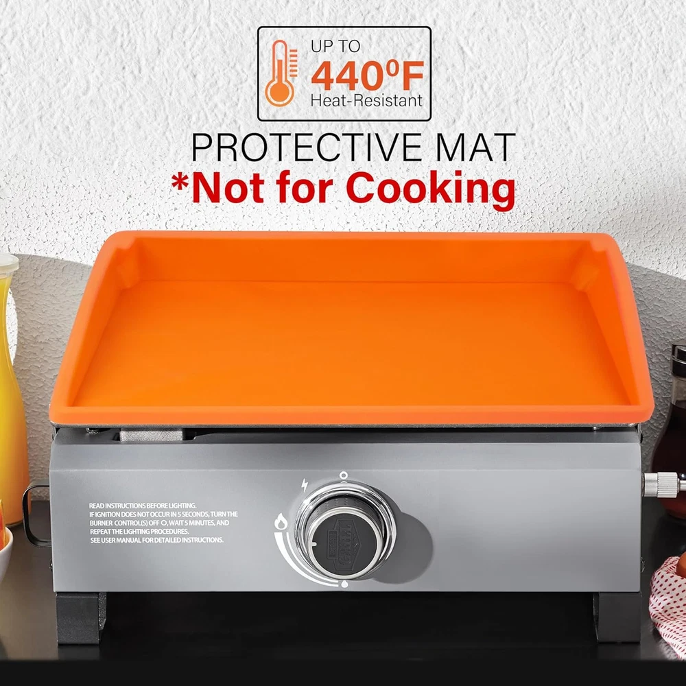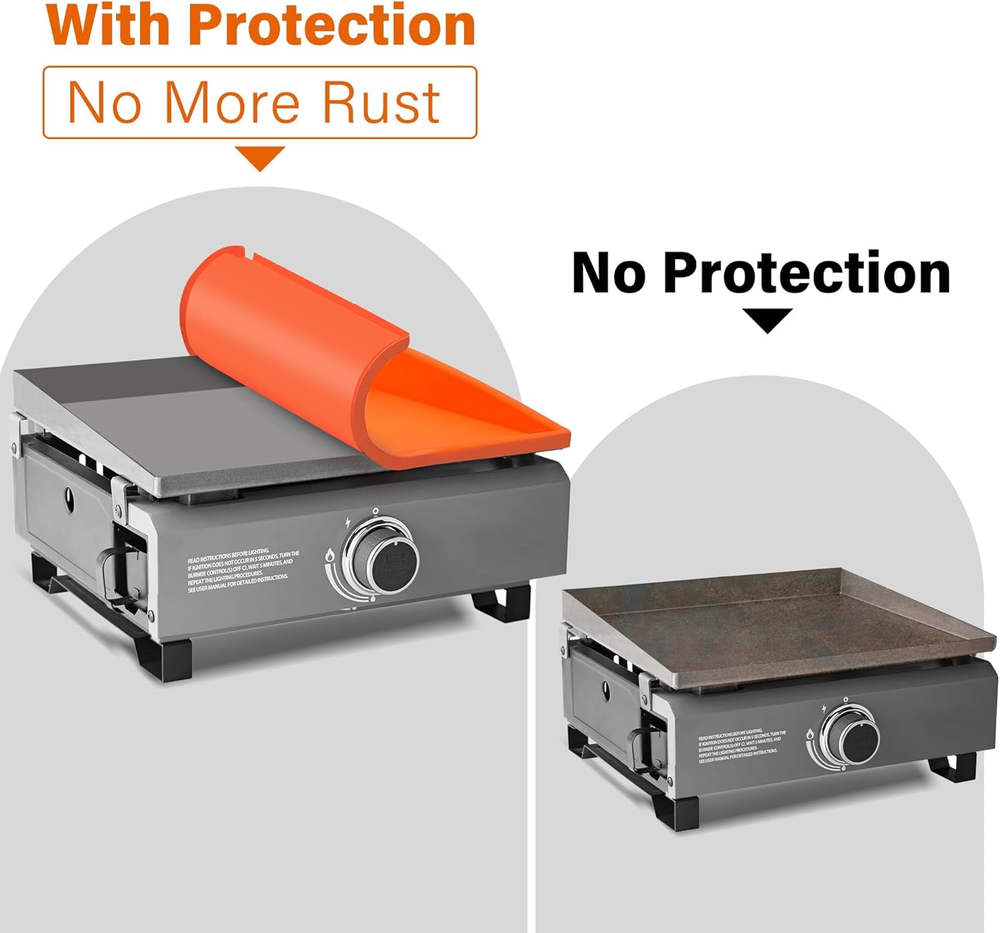 Perfect Fit: Our 17 inch griddle mat measures 17.75 x 16 x 2.5 inches / 45.4x40.5x6cm, Fits 17” Blackstone griddles; All season protection; Note: Measure your griddle before purchasing – especially if it’s a non-Blackstone brand Full Coverage: Our protective silicone mat fully covers the griddle surface and side walls, protects the griddle surface from rust, dust, dirt, debris, critters, bugs and more Heavy Duty & Food-Grade Silicone Mat: Our griddle protector is made of 100% food-grade silicone, thick, durable; heat resistant up to 400℉, DO NOT try to cook food on the griddle cover mat Must Have Griddle Accessory: Silicone toppers for griddle keeps the surface ready to cook and extend your griddle’s service life; no cleaning and prepping the surface after a long storage period Easy to Clean: Our griddle top mat has a smooth surface and is easy to wash by hand or in the dishwasher; super easy to wipe clean; dries quickly Product Description Our silicone bbq grill cover for blackstone covers the cooking surface and wide walls. Effectively keeps out moisture, dirt, bugs and rodents. Full Coverage Silicone Griddle Cover for Blackstone Griddles No one wants their Blackstone grill rusting or getting dirty. Use a silicone protective mat cover to protect the surface and be ready to grill and barbecue anytime. Indoor & Outdoor BBQ Grill Accessories Add to Cart Add to Cart Add to Cart Add to Cart Customer Reviews 4.5 out of 5 stars 196 4.5 out of 5 stars 196 4.5 out of 5 stars 196 4.5 out of 5 stars 196 4.6 out of 5 stars 29 4.4 out of 5 stars 96 4.4 out of 5 stars 96 Price $16.99 $ 16 . 99 $21.24 $ 21 . 24 $25.49 $ 25 . 49 $30.79 $ 30 . 79 — — — Quantity 1 pcs 1 pcs 1 pcs 1 pcs 26 PCS 14 PCS 5 PCS Material Food-Grade Silicone Food-Grade Silicone Food-Grade Silicone Food-Grade Silicone Silicone, Metal & Others Stainless Steel Stainless Steel Used for Griddle Mat Griddle Mat Griddle Mat Griddle Mat Cleaning Outdoor Grill Outdoor Grill Value for Money ✔ ✔ ✔ ✔ ✔ ✔ ✔ Food Safe ✔ ✔ ✔ ✔ ✔ ✔ ✔