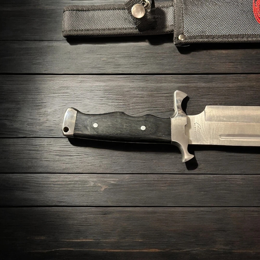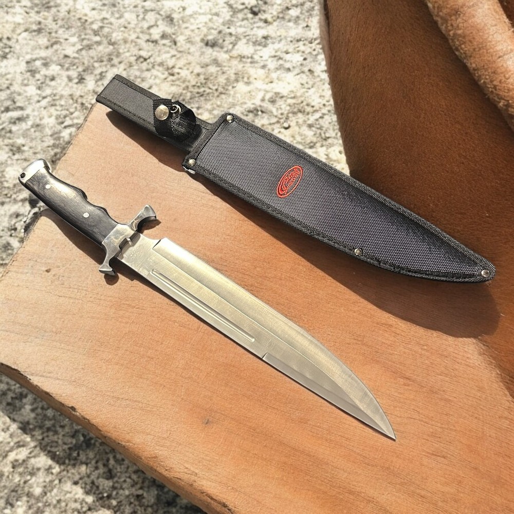 Add classic American style to your collection with this SZCO Supplies 17" Bowie Toothpick Knife , featuring a sharp silver blade and sleek wood handle. With its iconic clip point and long reach, this blade is perfect for display, hunting, and rugged outdoor tasks. βοΈ 17-inch total length with a sharp Bowie-style toothpick blade π² Full tang construction for strength and control π³ Real wood handle with finger grooves for a comfortable, solid grip π‘οΈ Comes with a nylon sheath for safe carry and storage π― Great for camping, hunting, survival gear, or collectors Whether you're heading into the wild or adding to your collection, this blade delivers utility and classic appeal. π Specs: Overall Length: 17 inches Blade Style: Bowie / Toothpick Handle: Wood with ergonomic finger grooves Sheath: Black nylon with belt loop Brand: SZCO Supplies β οΈ Buyer must be 18+. Please comply with all local, state, and federal knife laws.
