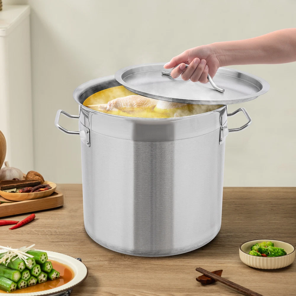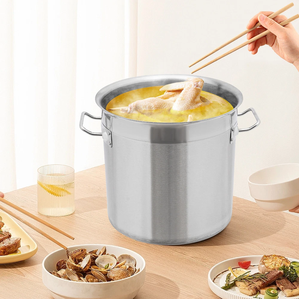 17L/ 4.49Gal Stock Pot Stainless Steel Large Kitchen Soup Big Cooking Stockpot Description Food can't be stored or cooked without a powerful container. Take a look at our stainless steel stock pot with lid. Its high-quality 201 stainless steel and excellent performance will allow you to make soup to satisfy you and your family's taste buds, and the large capacity will meet your various storage needs! The minimalist yet non-monotonous appearance makes it a good supplement to your kitchen. Key Features Build to Last: The 201 stainless steel and a brushed process make this product safe, environmentally friendly, wear-resistant, corrosion-resistant, and less prone to rust and oxidation, so it can maintain good aesthetics and practicality. Large Capacity: Thanks to its 4.49-gallon capacity, you can cook large quantities of food at once, meeting the needs of multiple individuals. Elaborate Design: The 4.3mm thick and magnetic composite bucket bottom (430 stainless steel+aluminum plate+201 stainless steel) has fast heat conduction, so it can fully absorb heat, shorten cooking time, and ensure that your soup is more delicious. Simple and Convenient: You can use it directly without the need for installation. The handles fixed by rivets on both sides are not easily detached, making it easy for you to move the product. Moreover, the handles on the lid make it easy to open and close, and the 11.02-inch large opening makes it easy to store and remove food. Easy to Clean: The smooth surface and openable lid allow you to easily clean away dust and residue with water and a soft towel. Space Saving: The compact size(11.02*11.02inch) makes full use of vertical space, further reducing the burden on countertops, refrigerators, cabinets, etc. Protective Package: To prevent the product from being damaged and bumped during transportation, we packed it with foam to protect your products to the maximum extent possible. Ideal Gift : With its large capacity, this product is an ideal housewarming and holiday gift for family, friends, and loved ones, so they too can enjoy a more convenient and tidy life. Customer Service: We aim to provide quality products and services. If you have any problems, please free to contact us. We will reply and solve the problem for you as soon as possible. Details Round Corners: Compared with traditional square corners, an arc design can better ensure safety. Flat B ucket B ottom : Its flat-bottomed bucket bottom design allows it to be placed more stably on the countertop and is not prone to slipping. Practical Lid: It can prevent dust and insects from entering and reduce heat loss. Application It can be used on induction, gas, electric, glass, ceramic, and halogen stoves. It is suitable for restaurants, canteens, hotpot stores, hotels, home kitchens, shopping malls, and hotels, etc., for storing a wide variety of dry/wet foods such as cookies, coffee beans, sugar, flour, tea, spices, cereals, rice, grain, cereal, oil, milk, wine, and water. Specification Material: 201 Stainless Steel, 430 Stainless Steel and Aluminum Process: Brushed Color: Silver Shape: Cylinder Style: Modern Assembly Required: No Mount Type: Free Standing Number of Items: 1 Capacity: 17L/ 4.49Gal Bottom Thickness: 4.3mm Thickness of Barrel and Lid: 0.8mm Package Size: 32*32*34cm/ 12.6*12.6*13.39in Product Size(D*H): 28*28cm/ 11.02*11.02in Gross Weight: 4kg/ 8.82lbs Net Weight: 3.6kg/ 7.94lbs Package Included 1* Stainless Steel Stock Pot with Lid Notes Please note that this product is not oven-safe and foods are not included! Please allow the slight color difference caused by the shooting light and 1-3cm error due to manual measurement, and make sure you do not mind before ordering. Payment Delivery details Terms of sales About us Contact us Payment We accept ebay payment 。 Fees such as import duties, taxes are not included in the item price or shipping costs. These charges are the buyer's responsibility. Delivery details Shipping: 2-9 working days to: USA Terms of sales We maintain high standards of excellence and strive for hundred percent customer satisfaction. Feedback is very important to us. We hope that you contact us immediately before you give neutral or negative feedback, so that we can address your concerns. It is impossible to address issues if we do not know about them! About us Your satis faction is our ultimate goal. We work hard to earn your trust and future business. Our certified technicians have tested each item before shipping. The unit comes with 1 year limited warranty on all manufacturing defects. a) If you receive a defective item, you may return it or ask for a discount. Please contact us within 14 days after you receive the package. b) What you returned must be intact and in its original packaging as re? u. Customer is responsible for shipping costs of the returned item. c) We will cover the cost of shipping back t with the shipping rate indicated in the registration page. We will send you a new unit or refund the full payment you paid. Thank you. Contact us Business Hour Business Hour: Monday To Friday: 8:30 AM to 5:00 PM (Beijing China time) Due to time zones, our reply to your questions may not be immediately. But within above working time, we will reply your email within 24 hours. If it's non-workdays, please kindly be patient and wait till Monday. Please contact us with ebay message. Please feel free to contact us if you have any questions. Monday To Friday: 8:30 AM to 5:00 PM (Beijing China time) Due to time zones, our reply to your questions may not be immediately. But within above working time, we will reply your email within 24 hours. If it's non-workdays, please kindly be patient and wait till Monday. Please contact us with ebay message. Please feel free to contact us if you have any questions.