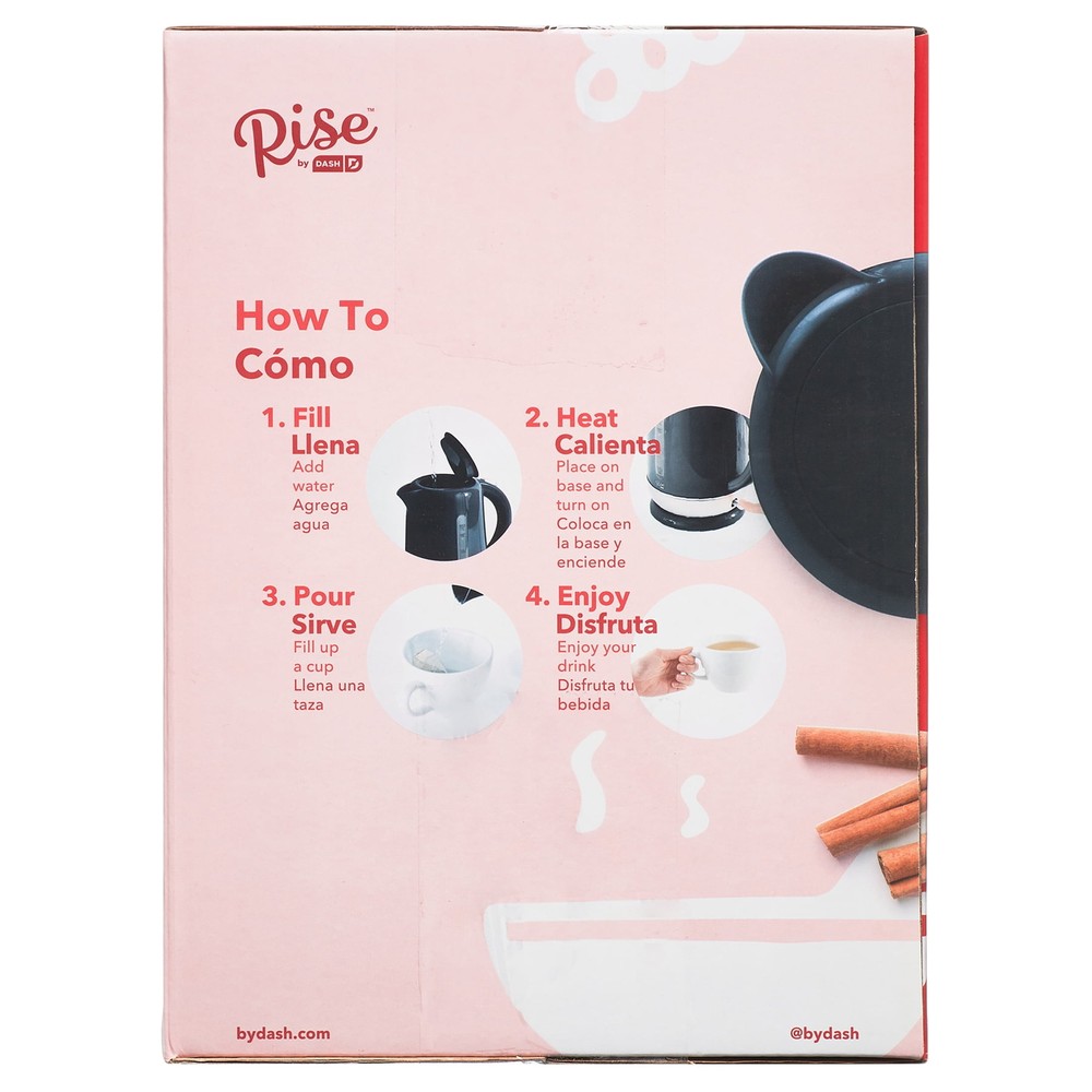 Prepare coffee, tea and more at the touch of a button using the Rise by Dash Electric Kettle in Black! The Kettle lifts right off its base and features a cool-touch handle for safe transport from kitchen to table, making it ideal for entertaining. Just press the button to start boiling, and boil dry protection will automatically shut the kettle down when it’s nearly empty. The Kettle makes it easy to prepare drinks as well as foods like oatmeal and ramen in a dash. On Mar 19, 2025 at 00:22:31 PDT, seller added the following information: