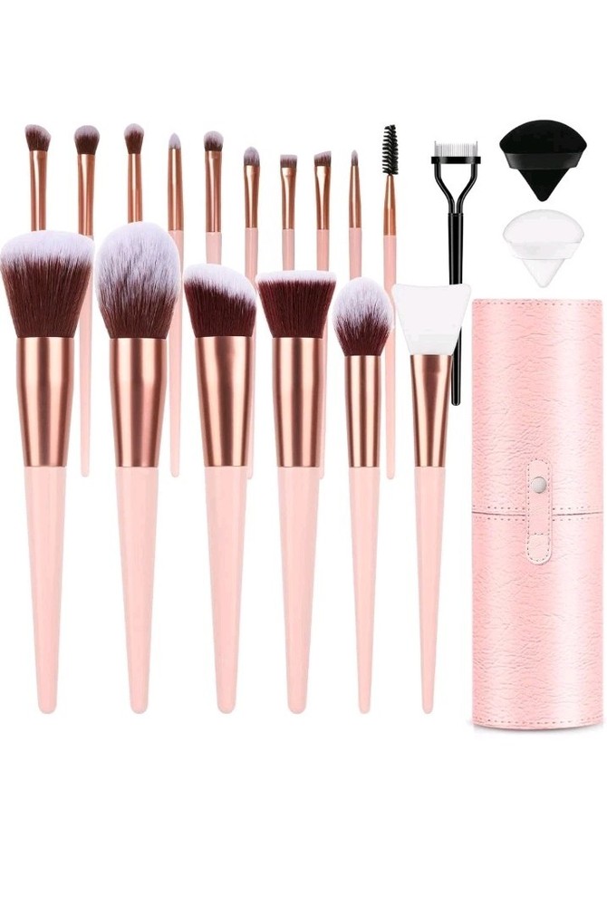 Makeup Brush Set 17pcs Brushes With Foundation Eyebrow Blending & Bag Pink.