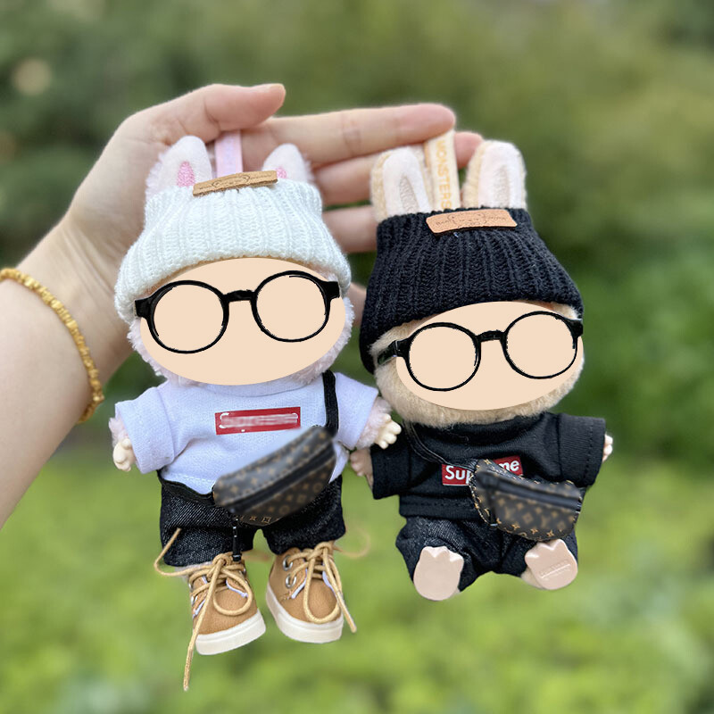 17cm Dolls 6 Piece Clothes Set for Labubu The Monster 1 2st Doll Clothes Hat Set (No Doll) Package Include: 1 x shirt+ 1 x pants+1 x hat+1 x crossbody bag+1x shoes+1x glasses Ships from the USA, fast shipping