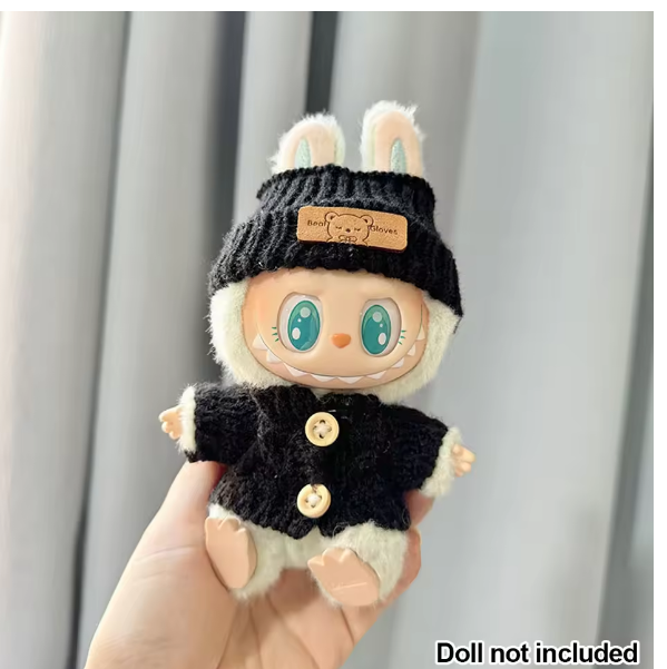 10-DAY DELIVERY Description Features: Clothes for labubu 17cm doll, a great gift for friends. Delicate workmanship, clean trimming. The style is fashionable and attractive, can change doll style. It can help girls to have a great time with their friends. Specification: Material: Cloth Color: Black, White Size: Suitable for 17cm doll Notes: Only clothes, not including doll, please kindly note. Please allowed 1-3mm differences due to manual measurement, thank you! Due to the difference between different monitors, please understand that the picture may not reflect the actual color of the item. Package included: 1PC x Shirt Packing Safely in Bubble Bag.