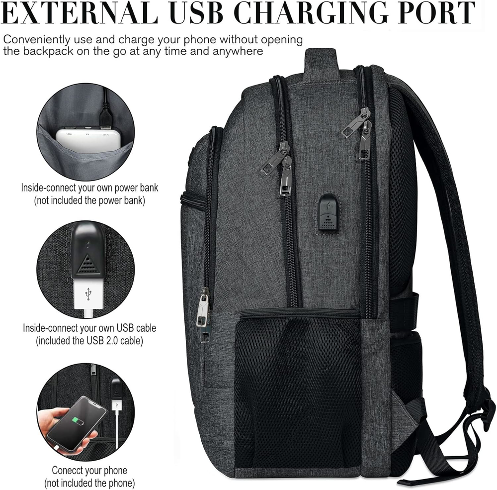 17-inch Water Resistant USB Laptop Backpack for Travel School Work