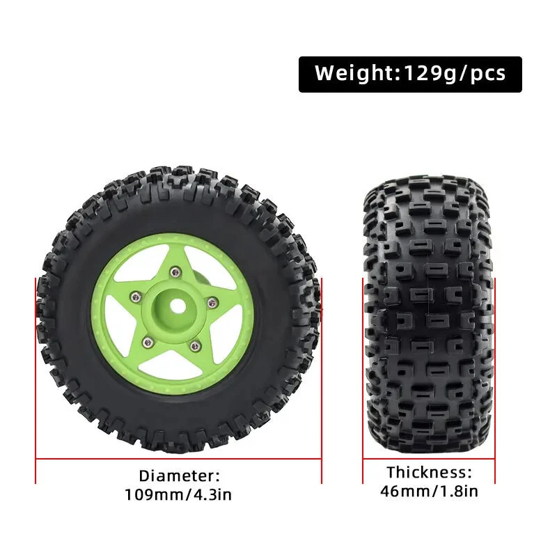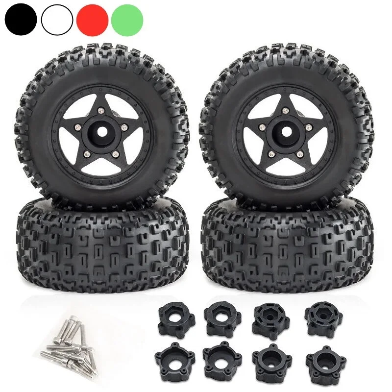 4Pcs 109mm 1/8 1/10 Short Course Truck Tire with 12mm 14mm 17mm Wheel Hex for TRAXXAS Slash ARRMA SENTON Vkar SCTX10 HPI RC Car Note: You need to glue the rims and tires by yourself Features: 100% Brand New Made of High Quality Meterial, Stronger And More Durable, Improve The Appearance Easy to use,Easy to replace Specifications: Material:Plastic+Rubber Quantity:4pcs Outer diameter: 109mm Width: 46mm Weight:131g/pcs Hex:12mm & 14mm & 17mm(Three sizes can be replaced by yourself) Suitable for:1/8 1/10 Short Course Truck Note: Color deviation might exist due to different monitor settings and light, please kindly understand. Package List: 4*RC Car Tire 4*12mm Hex Adapter 4*14mm Hex Adapter 4*17mm Hex Adapter NOTICE: The wheels and tires are not glued together and must be glued before use. Please carefully check the tire size before purchase, whether it is the same as your model tire size, and confirm it again before payment, so as not to return the refund, thank you, wish you a happy shopping.
