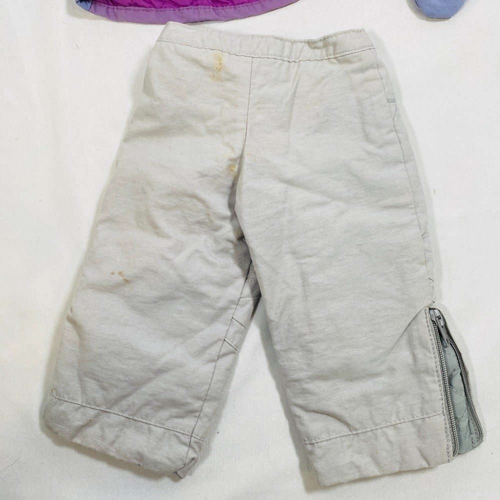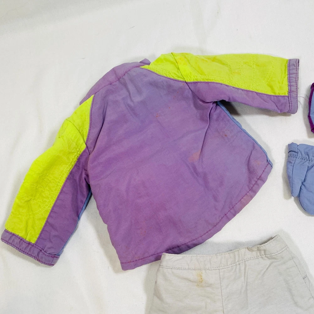 18" American Girl Doll 2004 Snowboard Outfit: Winter Jacket/Coat, Snow Pants, and Mittens. In played with condition, some discoloration and stains as pictured, may wash out, I haven't tried. Please see all pictures for exact cosmetic condition and other details, and ask any questions before purchasing. We are a husband and wife team with a growing family, and greatly appreciate your support of our small business. Please browse our eBay store for a variety of other American Girl items. We hope you enjoy this set!