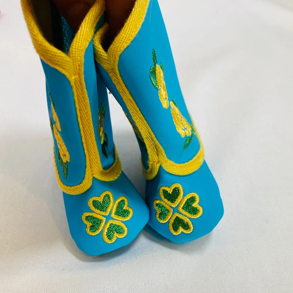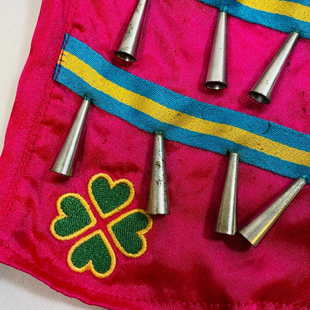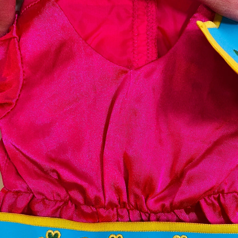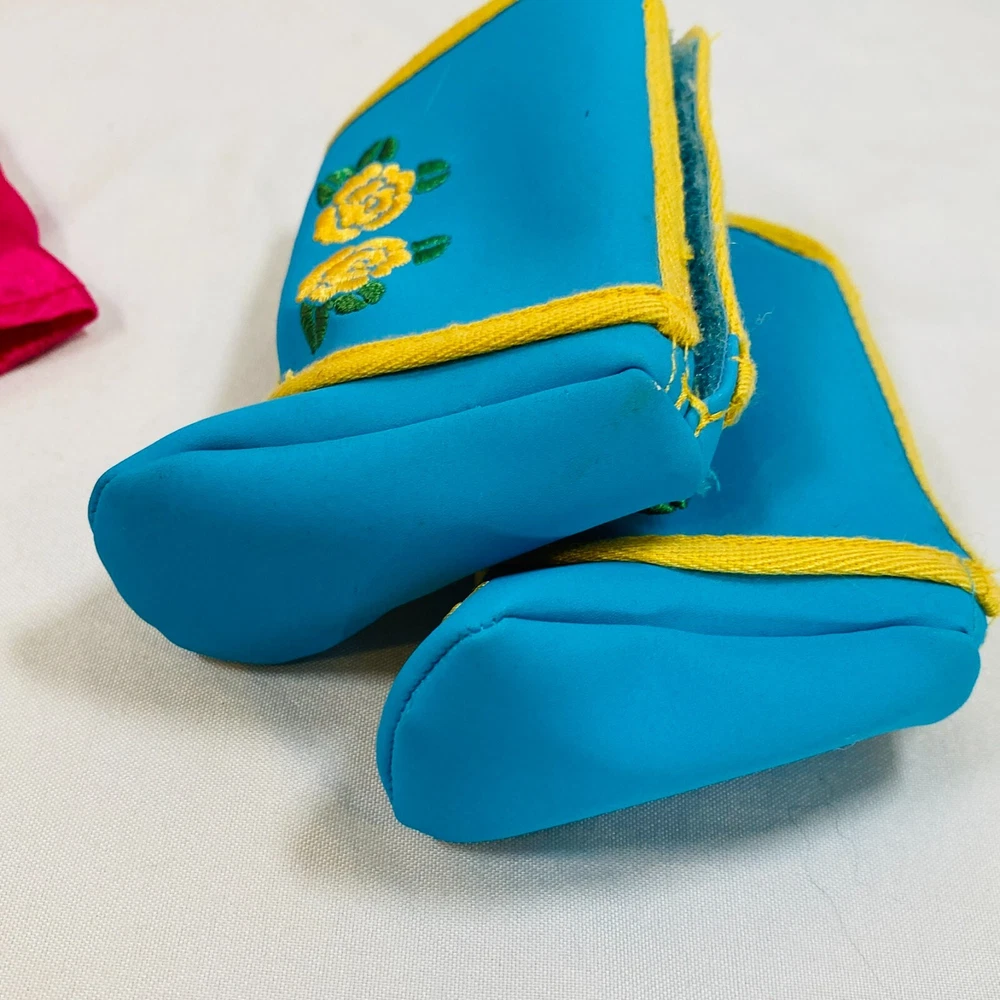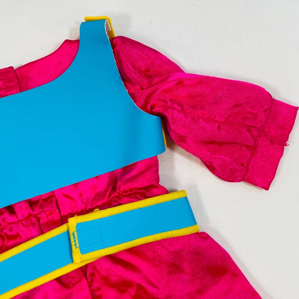18" American Girl Doll 2014 Kaya's Modern Jingle Dress of Today II. Includes Pink Satin Jingle Dress, Embroidered Blue Vest, Belt, & Boots, and Drum w/ Mallet. Also includes one hair tie, the other hair tie is missing, as well as the comb. All in excellent condition, no flaws to note beyond some discoloration on a few of the metal jingles from age, and one small run/snag on the front of the dress as pictured. Adult-collector owned, never played with, these flaws occurred in storage, and some pieces got lost in the process. Please see all pictures for exact cosmetic condition and other details, as they are part of the description as well, and ask any questions before purchasing. We are a husband and wife team with a growing family, and greatly appreciate your support of our small business. Please browse our eBay store for a variety of other American Girl items. We hope you enjoy this set!