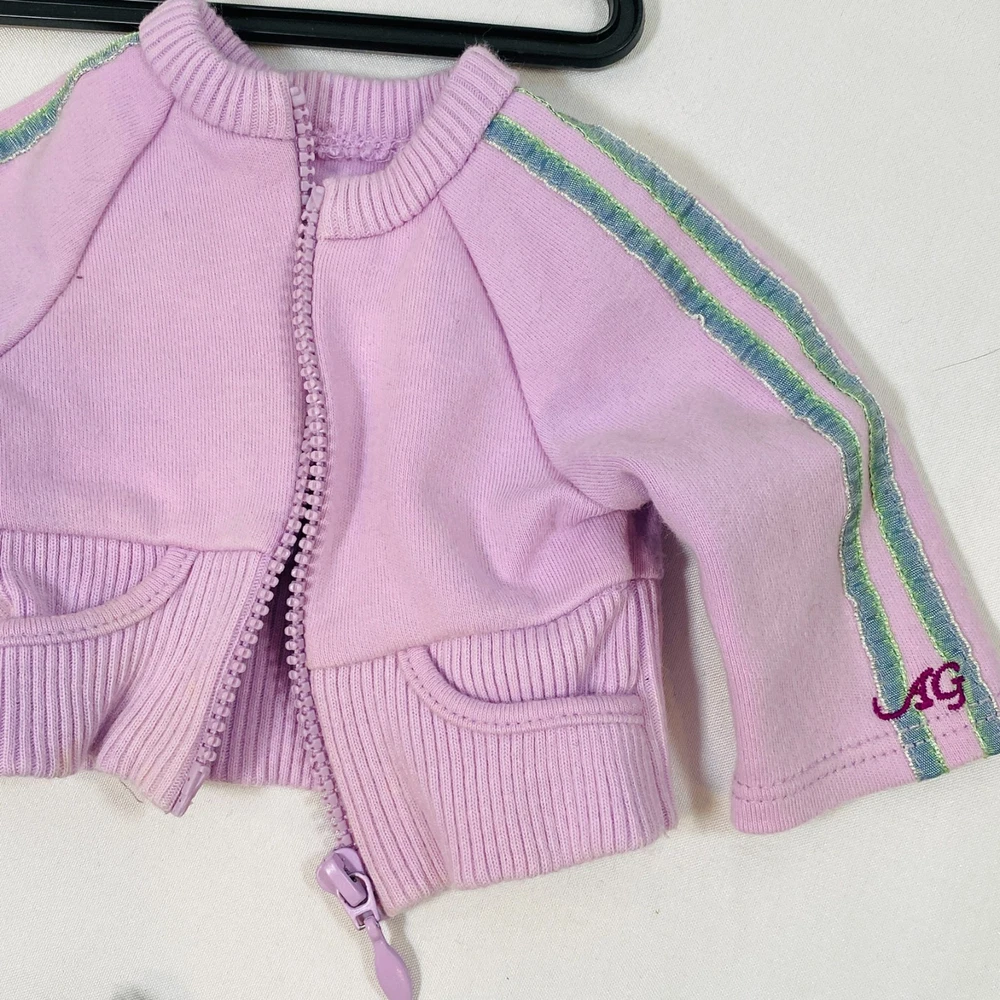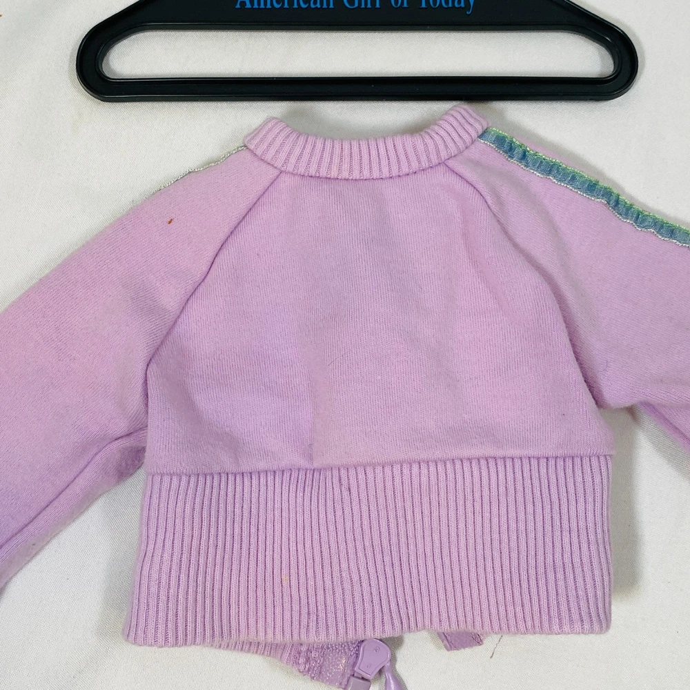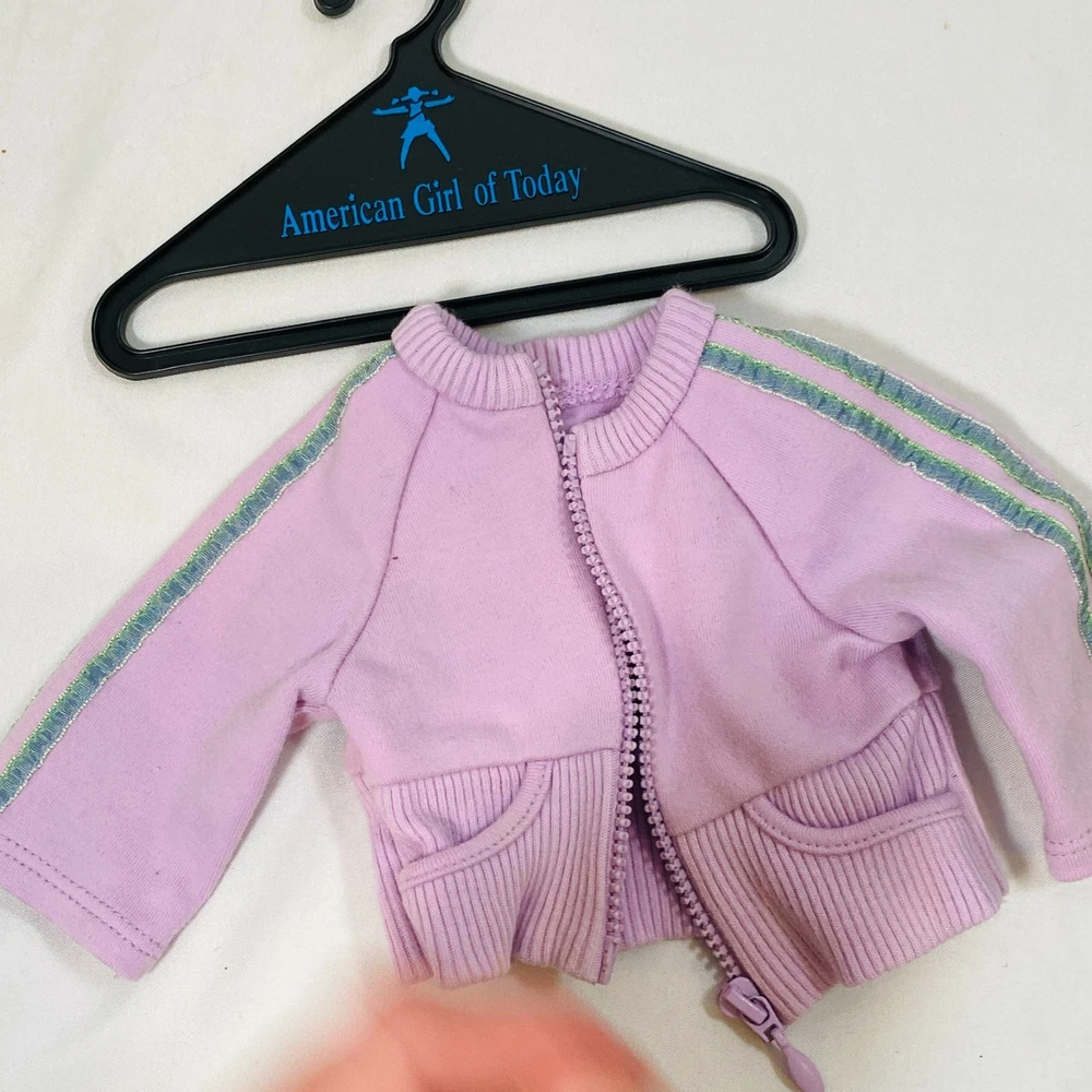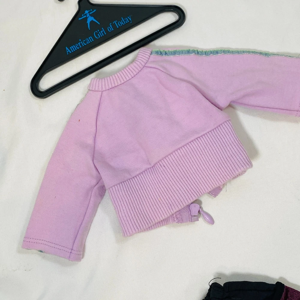 18" American Girl Doll of Today AGOT Assorted Mix & Match Clothing Lot. Includes the following: Sporty School Outfit: Purple Jacket Velour Sweat Suit: Blue Tank Top Camping Outfit: Black Shorts w/ Buckles at Bottom Modern Dance Outfit: Blue Velvet Leotard In gently played with condition, a few light smudges and such on purple jacket. Please see all pictures for exact cosmetic condition and other details, and ask any questions before purchasing. We are a husband and wife team with a growing family, and greatly appreciate your support of our small business. Please browse our eBay store for a variety of other American Girl items. We hope you enjoy this set!