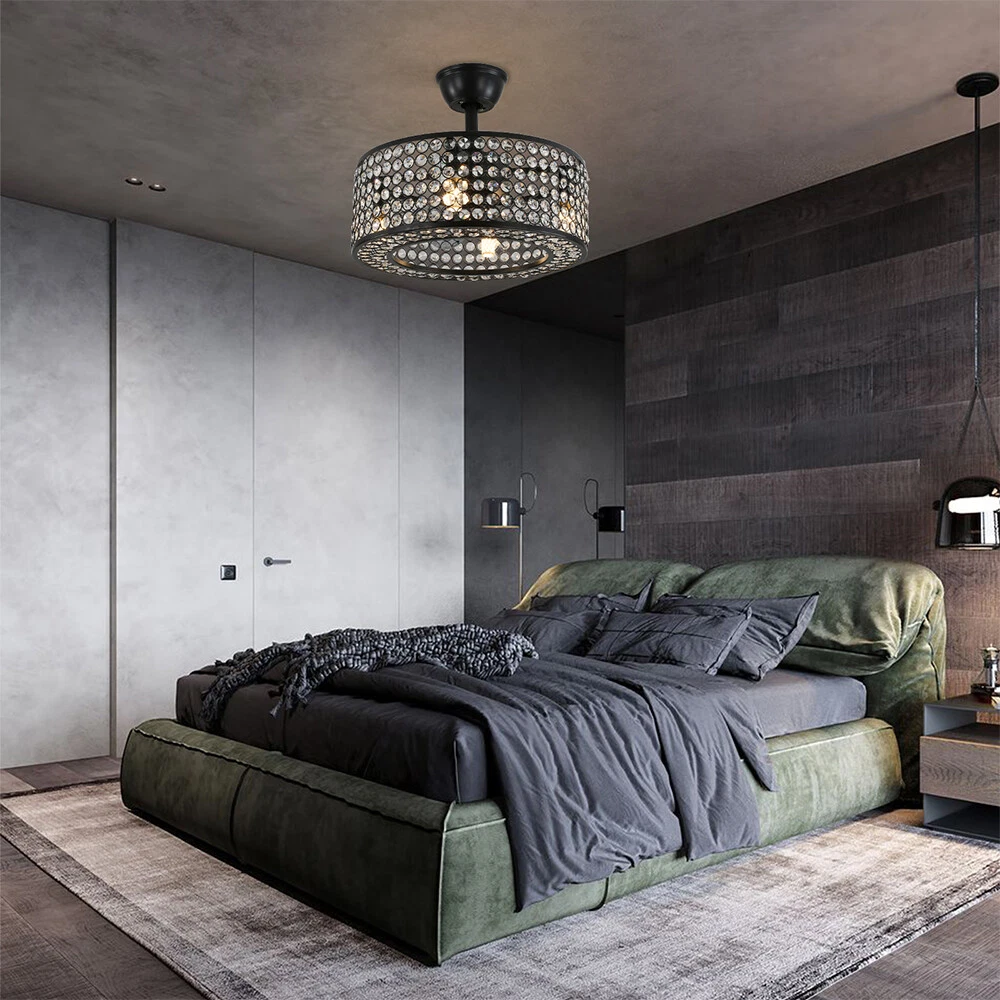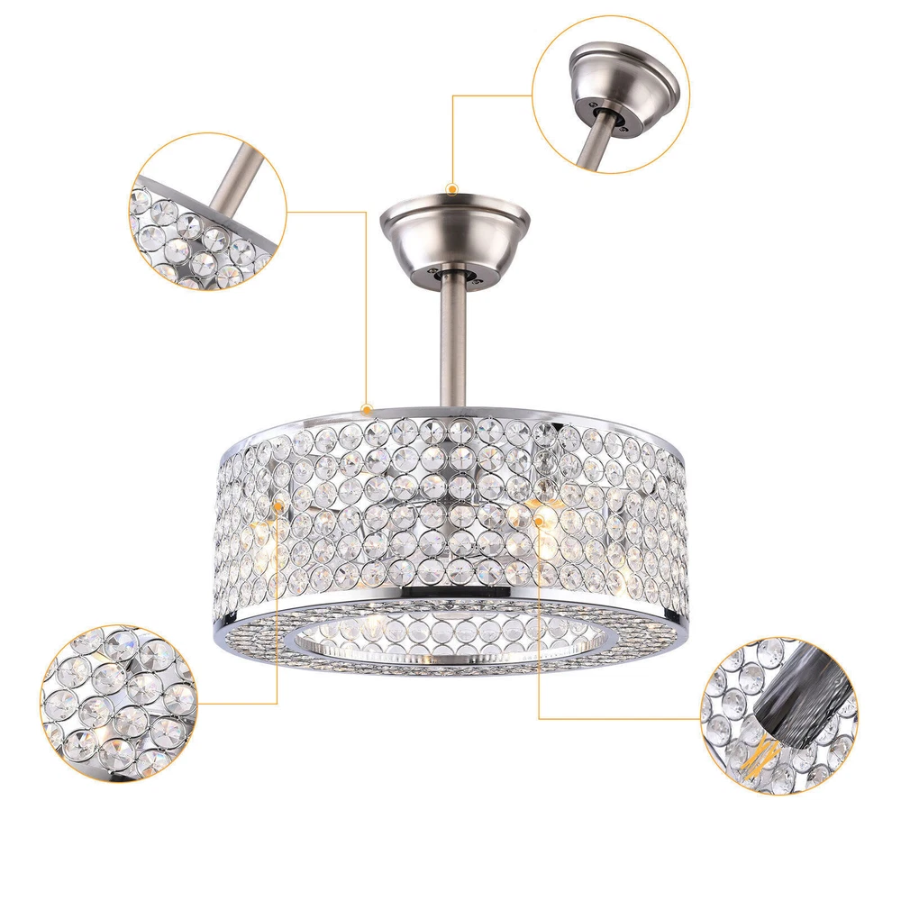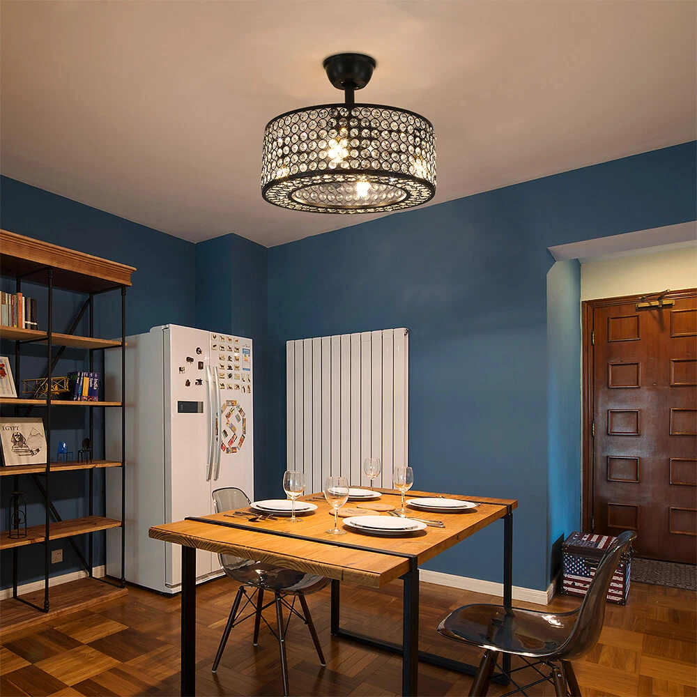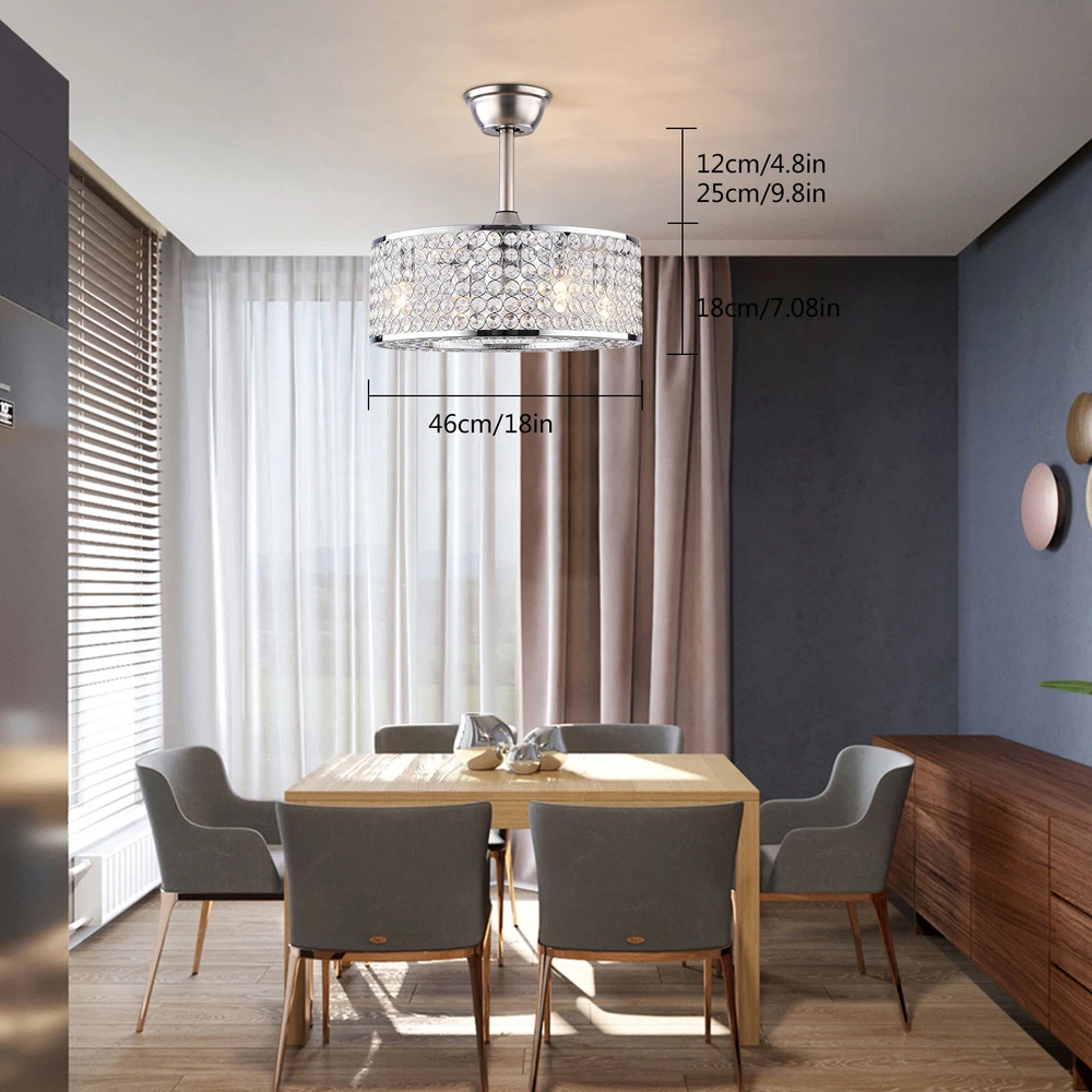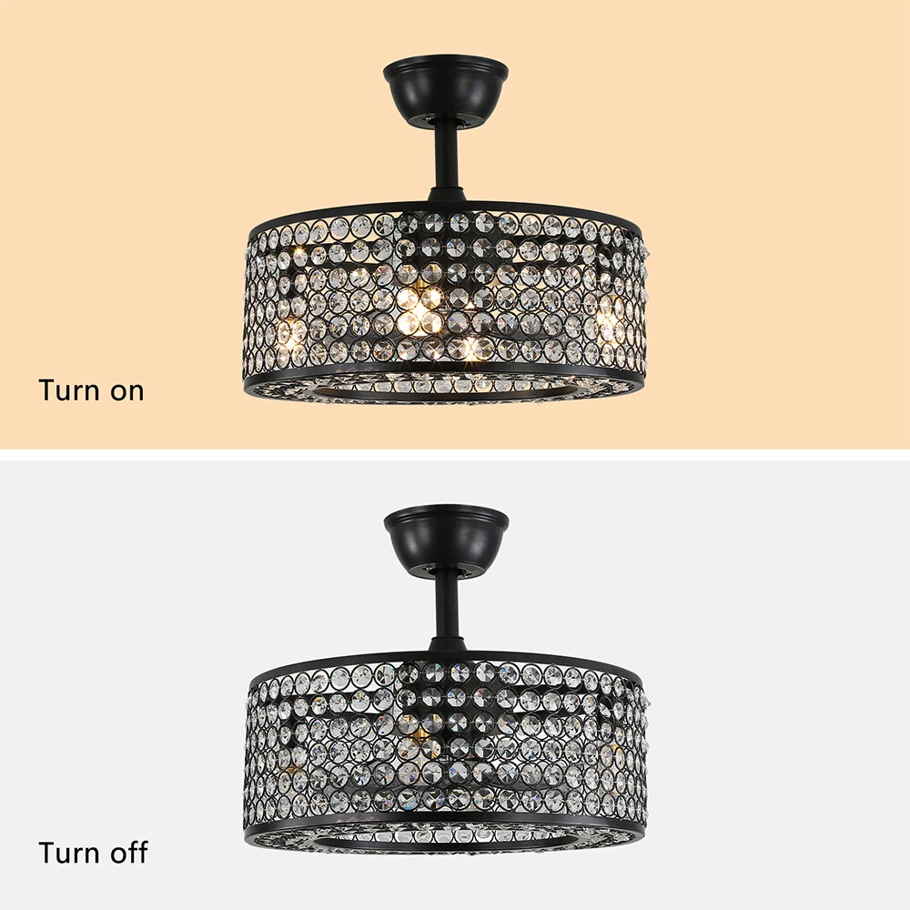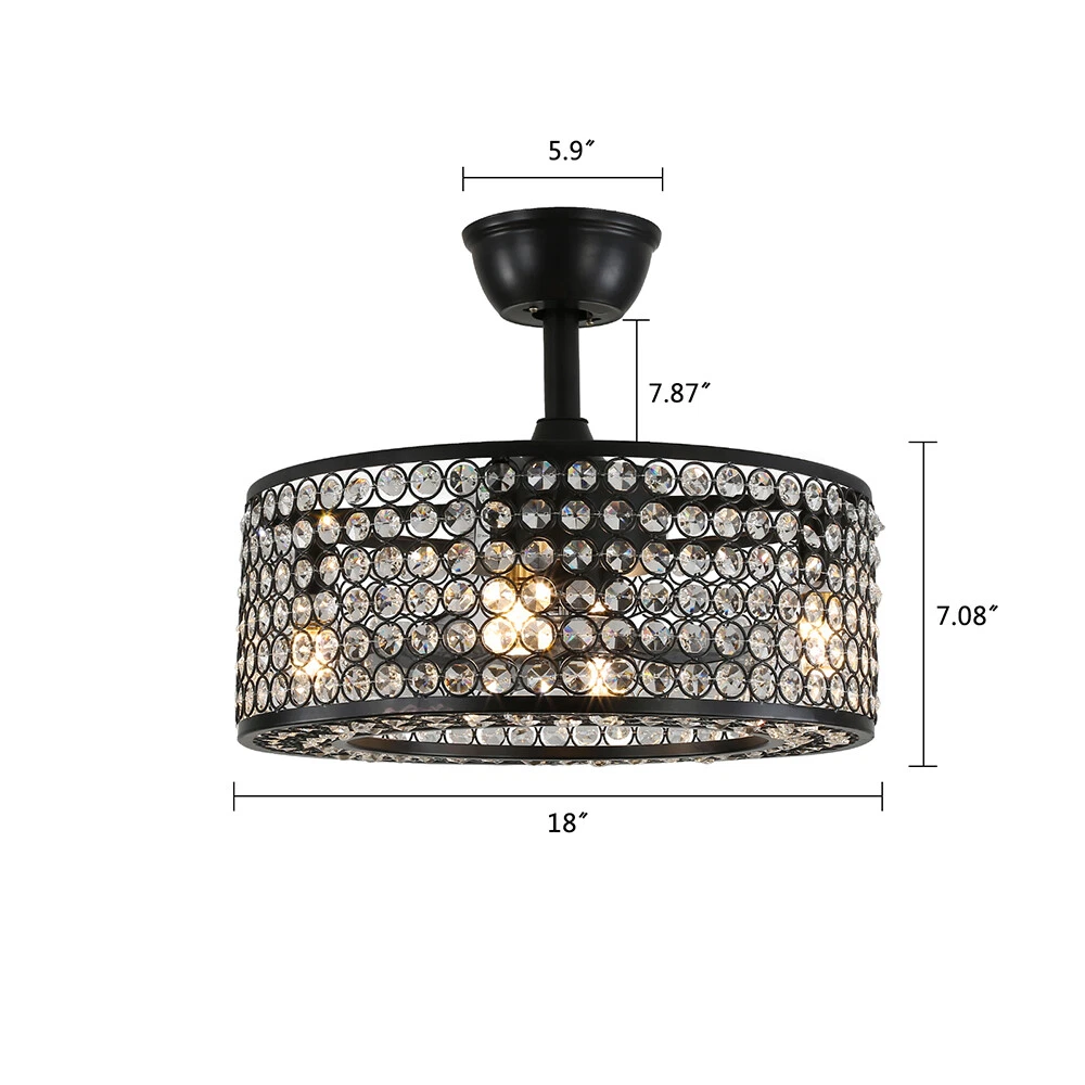 18" Crystal LED Chandelier Bladeless Caged Ceiling Fan Light 3 Speeds Remote NEW 18" Flush Mount Ceiling Fan Light Bladeless Crystal LED Chandelier + Remote Black ✦Dimensions Fixture Height: 7.87" (20 cm) Fixture Width: 18" (45cm) ✦Bulb Information Bulb requirements: use (4) E26bulbs, maximum 40watts, options include incandescent, fluorescent, LED, halogen, etc. (bulbs are not included) Wattage: Max 40W Voltage: AC110-120V Remote control: yes ✦Material and Colour Material: Retro metal Package Included 1 *Fan Light (Bulbs Not Included) 1*Down rods (20CM) 1 * Accessories package 1 * User Manual Silver ✦ Dimensions Fixture Height: 7.08" (18 cm) Fixture Width: 18" (46cm) ✦Bulb Information Bulb requirements: use (4) E26bulbs, maximum 60watts, options include incandescent, fluorescent, LED, halogen, etc. (bulbs are not included) Wattage: Max 60W Voltage: AC110-120V Remote control: yes ✦Material and Colour Material: Nickel-plated metal +crystal ✦ Package Included 1 *Fan Light (Bulbs Not Included) 2*Down rods (12CM & 25CM) 1 * Accessories package 1 * User Manual Description Payment Delivery details Terms of sales About us Contact us Payment We accept ebay payment 。 Fees such as import duties, taxes are not included in the item price or shipping costs. These charges are the buyer's responsibility. Delivery details Shipping: 2-9 working days to: USA Terms of sales We maintain high standards of excellence and strive for hundred percent customer satisfaction. Feedback is very important to us. We hope that you contact us immediately before you give neutral or negative feedback, so that we can address your concerns. It is impossible to address issues if we do not know about them! About us Your satis faction is our ultimate goal. We work hard to earn your trust and future business. Our certified technicians have tested each item before shipping. The unit comes with 1 year limited warranty on all manufacturing defects. a) If you receive a defective item, you may return it or ask for a discount. Please contact us within 14 days after you receive the package. b) What you returned must be intact and in its original packaging as re? u. Customer is responsible for shipping costs of the returned item. c) We will cover the cost of shipping back t with the shipping rate indicated in the registration page. We will send you a new unit or refund the full payment you paid. Thank you. Contact us Business Hour Business Hour: Monday To Friday: 8:30 AM to 5:00 PM (Beijing China time) Due to time zones, our reply to your questions may not be immediately. But within above working time, we will reply your email within 24 hours. If it's non-workdays, please kindly be patient and wait till Monday. Please contact us with ebay message. Please feel free to contact us if you have any questions. Monday To Friday: 8:30 AM to 5:00 PM (Beijing China time) Due to time zones, our reply to your questions may not be immediately. But within above working time, we will reply your email within 24 hours. If it's non-workdays, please kindly be patient and wait till Monday. Please contact us with ebay message. Please feel free to contact us if you have any questions. Warranty 3 Years ❤Highlights❤ High Quality 🔥Feature🔥 Long Service Life ✨✨ Manufacturer Warranty 3 Years !Features Compact Design,Unique Appearance,High quality Characteristic Convenient Use,Easy Operation,Easy installation Features Durable Warranty. 3 Years *Feature* Creative Design,Durable Material,Beautiful Highlights Compact Design,Unique Appearance,high reliability Features: High quality W/ warranty! Light Color Warm White Power Source Corded MPN Does not apply Number of Speeds 3 Design Lantern Control Style Remote Control Sensor Type None Energy Star 4 Stars Voltage AC110-120V Style Modern Personalized Yes LED String/Strip Type No Room Attic, Bedroom, Dining Room, Entryway, Hallway, Home Office/Study, Kitchen, Living Room, Porch, Bar, Hotel, gallery, farmhouse, foyer, exhibition room, coffee shop Finish Retro Metal Lighting Technology LED Number of Settings 3 Item Diameter 18 in Material Metal Installation Area Indoor Brand Unbranded Mounting Ceiling Mounted Blade Color Clear Type Ceiling Fan Fan Width 18 in Number of Blades 7 Power Consumption Max 40W/60W Country/Region of Manufacture China Manufacturer / EC Range A+++ - G UPC Does not apply