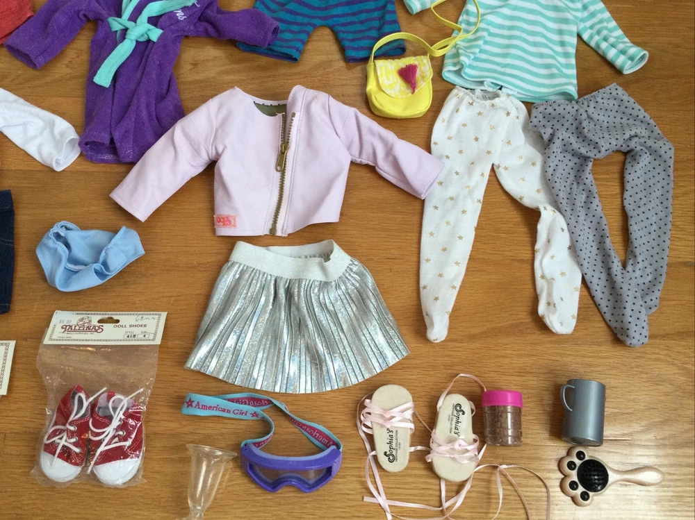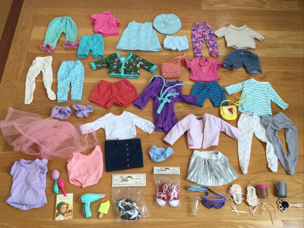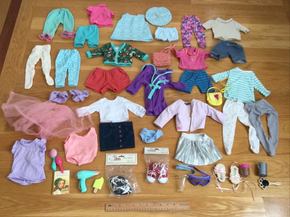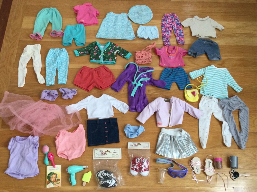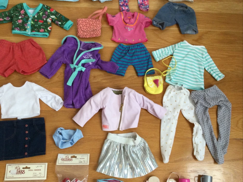 Bundle Description: Mixed Brands UPC: Does not apply Compatible Doll Size: 18 in Material: Cloth Custom Bundle: Yes Brand: Our Generation Type: Clothing Vintage: Yes Doll Gender: Girl Doll Set Includes: Dress, Nightwear, Outfit, Pants, Swimwear, Top Doll Type: Play Doll Item Height: 18 in Clothing Style: Activewear & Hobbies, Casual, Everyday, Outerwear, Special Occasion Unit of Sale: Lot Occasion: All Occasions gtin13: Does not apply Color: Multicolor Clothing Type: Dress, Nightwear, Top, Skirt, Coat/Jacket, Shoes, Socks/Tights, Undergarment