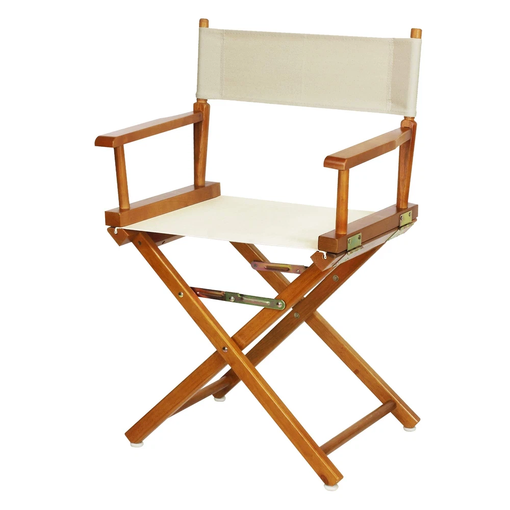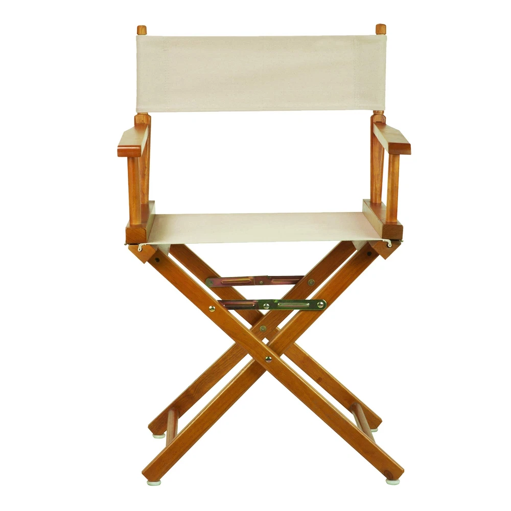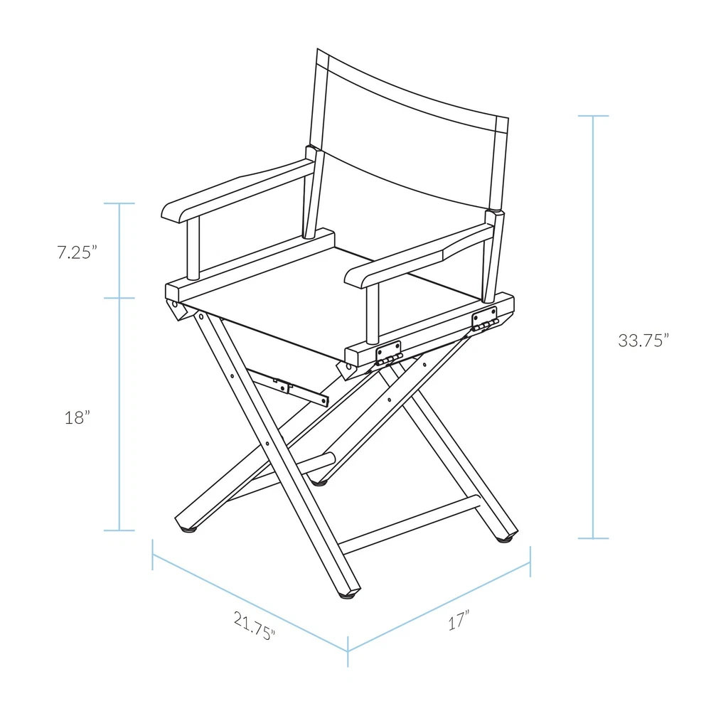 Discover a variety of uses for this classic-style Director's Chair. Constructed with 100% solid wood, this portable Director’s Chair is built for lasting strength. Foldable design makes transportation and storage a breeze--meaning you can move it from room to room or transport it for special occasions with ease. An excellent solution for homes, schools, events, and businesses alike. Classic style fits permanent or temporary seating for any occasion with no assembly required.Seat Height: 18" H Foldable design for effortless transport and storage Built-in armrests provide comfort and support Made with 100% Solid Wood for increased durability and longevity Dimensions: 24.5"W x 17.25"D x 37.75"H. Seat height: 18". Back cover size: 22.5"W x 6"D. Seat cover size: 21"W x 16"D.