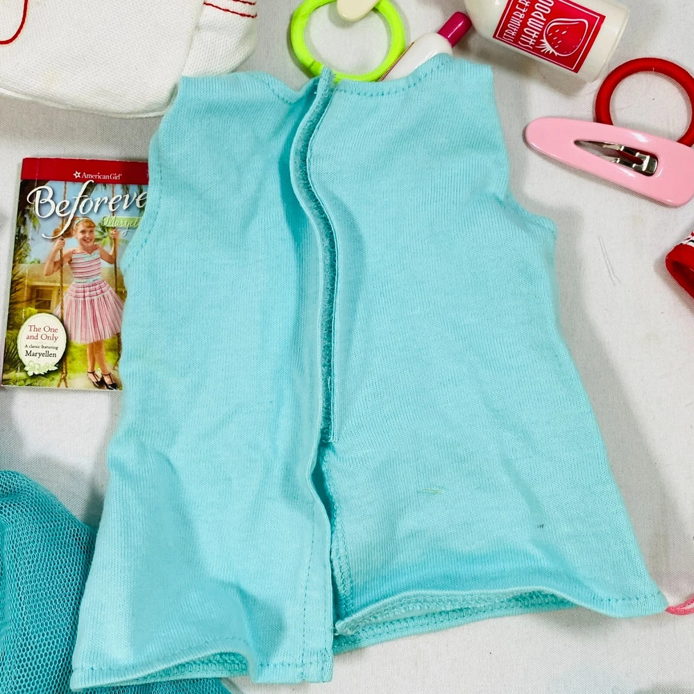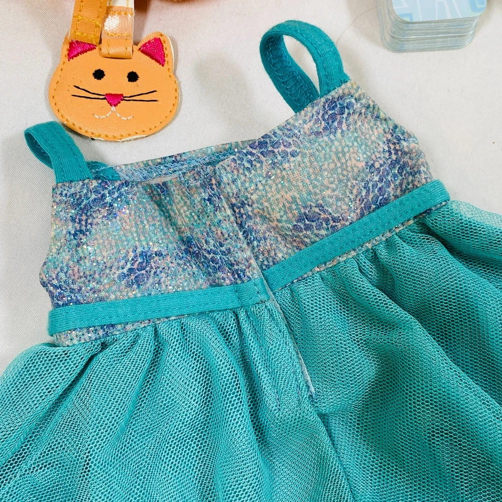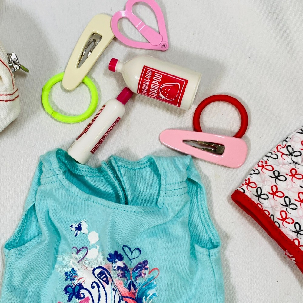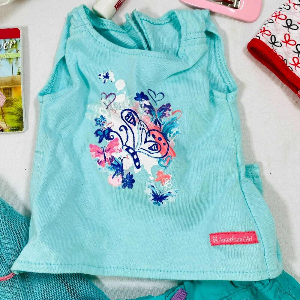 18" American Girl Doll Truly Me Mix & Match Set. Includes 2018 Blue Sea Dress, Side-Cinch Tank, Star Quilt Skirt, Travel Bag w/ Playing Cards & Hair Accessories, & OG Neck Pillow. In excellent condition, no flaws noted. Please see all pictures for exact cosmetic condition and other details, and ask any questions before purchasing. We are a husband and wife team with a growing family, and greatly appreciate your support of our small business. Please browse our eBay store for a variety of other American Girl items. We hope you enjoy this set!