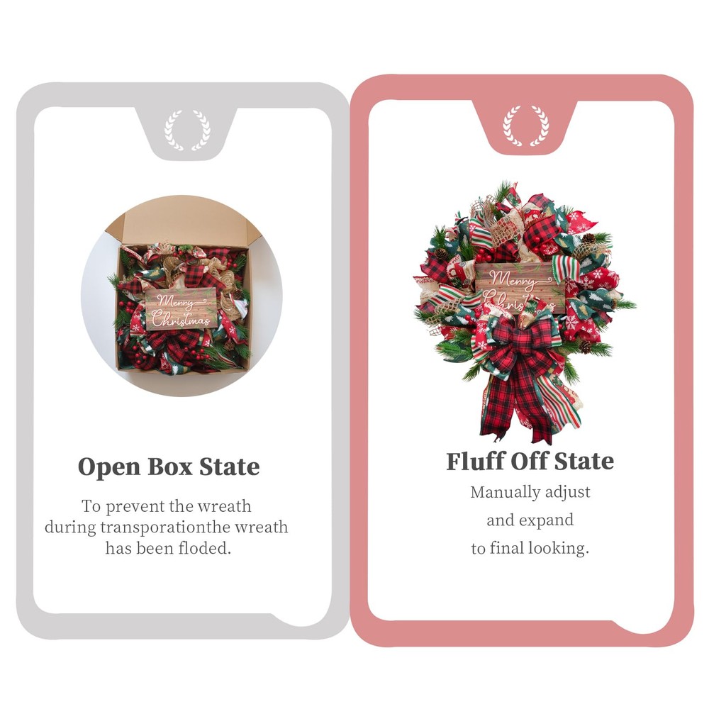 【Christmas Mesh Wreath】: As the joyful Christmas season approaches, we have designed a classic Christmas-themed mesh ribbon wreath, featuring red and green as the main colors. Various patterns and designs of silk ribbons are layered to create a misty and dreamy visual effect. The decoration is enhanced with delicate small ornaments such as pine branches, red berries clusters, and pine cones, while the multi-layered bow at the bottom makes the entire wreath look fuller and richer. 【Reliable Craftsmanship】: The base of the wreath is made of a sturdy and deformation-resistant metal ring to support the entire decorative structure. Each of our wreaths is handmade, with attention to detail during the process. The mesh is securely fixed, neat and tidy, maintaining the overall naturalness and liveliness. The decorations are neither too complicated nor too monotonous. The colors and patterns complement each other, creating a harmonious overall effect. 【Appropriate Size】: Our decorative wreaths are 18 inches in size. The wreath may be slightly tighter when packaged to optimize transportation conditions. Upon receiving the package and removing the product, please adjust the overall shape to ensure it is in a good stretched state. We recommend using the wreath indoors or in covered outdoor areas to avoid direct sunlight and rainwater, to extend its lifespan. 【Easy to Decorate】: The mesh Christmas wreath, with its unique material and careful design, has become a highlight in festive home decorations. It is suitable for use on front doors, entrances, bedrooms, living rooms, parties, weddings, fireplaces, kitchens, balconies, offices, restaurants, shops, gardens, or shopping malls. Its soft and warm style creates a cozy and romantic atmosphere. 【As a Gift】: Each of our wreaths comes with a high-quality brown box. After the holidays, we can repackage the wreath in this box for better storage and reuse the following year. Of course, you can also decorate your home all year round, and it makes a perfect special gift for your friends or family, conveying festive blessings and reflecting your refined taste.