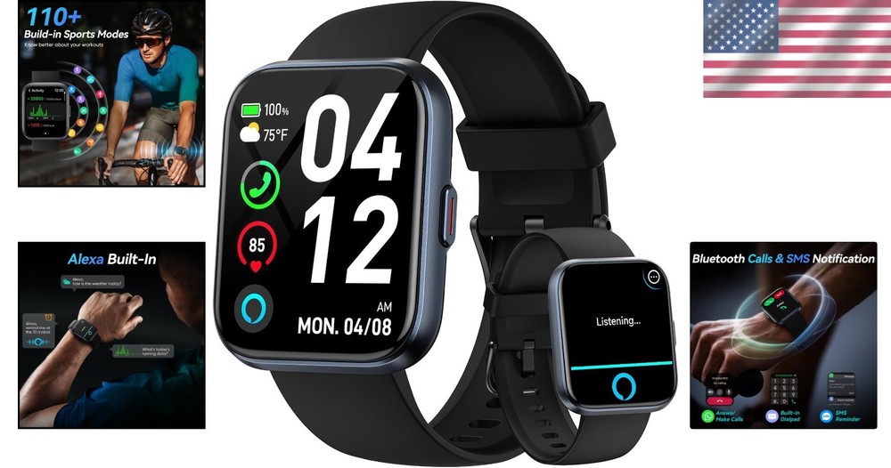 1.8" Smartwatch for Men & Women - Alexa, Bluetooth Calls, 110 Sports Modes ‹ › ‹ › ‹ › ‹ › ‹ › ‹ › ‹ › ‹ › ‹ › ‹ › 1.8" Smartwatch for Men & Women - Alexa Built-in & Bluetooth Calls Alexa Built-in: Control your smart home devices, check the weather, set alarms, and more with just your voice. Bluetooth Calls: Make and receive clear calls directly from your smartwatch with Bluetooth 5.3 technology. Please note: The watch cannot send messages or text back, and the Bluetooth connection distance is 8-10 meters. Health Monitoring: 24/7 continuous monitoring of heart rate, SpO2, stress levels, and sleep quality. Sync your recorded health data with the "Veryfit" app for an insightful analysis. Receive vibrations to alert you when your metrics are too high or low. Sports & Waterproof Features: Supports over 110 sports modes, including running, cycling, yoga, swimming, and more. waterproof rating ensures worry-free use during handwashing or workouts. Design & Customization: Features a vibrant 1.8'' HD TFT-LCD screen with responsive touch sensitivity. Choose from over 120 watch faces or personalize your watch with your favorite photos. More Than Just a Fitness Watch: Enjoy SMS and Message Notifications, Flashlight, Weather Forecasts, Music/Camera Control, and more. Quick 2.5 hours charging provides up to 7 days of typical usage and up to 30 days on standby. Comfort & Compatibility: Soft silicone band fits wrists ranging from 160mm to 230mm (6.0 to 8.7 inches). Easy setup in just four simple steps to begin your smart journey. Compatible with a wide range of smartphones, including Apple iOS and Android devices. Why Choose This Smartwatch? The perfect fusion of style and functionality, this smartwatch seamlessly integrates into your lifestyle, allowing you to monitor your health, engage in sports, and stay connected with the world around you. With a stunning design and wide array of features, this watch is a choice for health-conscious individuals and tech enthusiasts alike. Invest in your health and convenience – order your 1.8" Smartwatch today and elevate your life to the next level! Shipping Free & Fast Shipping - We offer free shipping to most of the USA with a normal delivery time of 3-7 days. However, due to the current situation, additional delivery time (up to 3 weeks) may be required for some items. Alternative Carriers - We may use alternative carriers (e.g. USPS, FedEx, UPS, etc.) to ensure your package arrives safely and on time. Due to the use of multiple carriers, we are unable to provide a tracking number automatically. Handling Time - Orders are processed and shipped within 1-2 business days of receiving cleared payment. Shipping Restrictions - Shipping to Alaska, Hawaii, Puerto Rico, Guam, and other US territories may incur shipping charges or delivery restrictions. Please contact us before ordering, or your order can be refunded/cancelled. State Restrictions - There may be restrictions based on your state of purchase. For example, certain items may not be shipped to California due to state regulations. Contact for Tracking Updates - If you require tracking updates or have any concerns about the delivery of your order, please feel free to contact us, and we will be happy to assist you. Return 30-Day Hassle-Free Returns - We want you to be completely satisfied with your purchase. If you are not, you can return the item within 30 days of receiving it for a full refund or exchange. Easy Return Process - To start a return, simply contact us and we will provide you with a prepaid return shipping label and detailed instructions. Restocking Fee - There are no restocking fees for returns. However, the buyer is responsible for return shipping costs if the return is not due to a seller's error. Refund Processing Time - Refunds will be processed within 5 business days of receiving the returned item in its condition. Payment We accept all major credit cards, PayPal, and Apple Pay for your convenience. Your payment information is secure and encrypted to ensure a safe and seamless transaction. Please complete your payment within 3 days of purchase to avoid any delays in shipping. Feedback Your feedback is extremely important to us. We strive to provide the best products and customer service possible. If you are satisfied with your purchase, please take a moment to leave us a positive review. If you have any concerns or issues with your order, please contact us before leaving negative feedback. We are committed to resolving any problems and ensuring your satisfaction. Contact Us If you have any questions or concerns, please feel free to out to our customer support team. You can contact us through the eBay messaging system. We are available Monday to Friday, 9:00 am to 5:00 pm EST, and we will do our best to respond to your inquiry within 24 hours. Buy it now and enjoy a pleasant shopping experience! Serial Number: Smart Watch for Men Unit Quantity: 1 Compatible Operating System: Android,iOS - Apple Network: Unlocked Features: Bluetooth Enabled,Fitness Tracker,GPS,Heart Rate Monitor,Sleep Monitor,Touchscreen,Voice-Activated Dialing,Waterproof,SpO2 Monitor,SMS Notification,Music Control,Pedometer,Alarm Clock,Timer,Weather Forecast,Raise to Wake,Adjustable Brightness,DND Mode Model: Smart Watch for Men Case Size: 1.8 inch Band Material: Silicone Series: Fitness Tracker Band Color: Black Case Color: Black Operating System: iOS - Apple Storage Capacity: 128 MB Unit Type: Unit