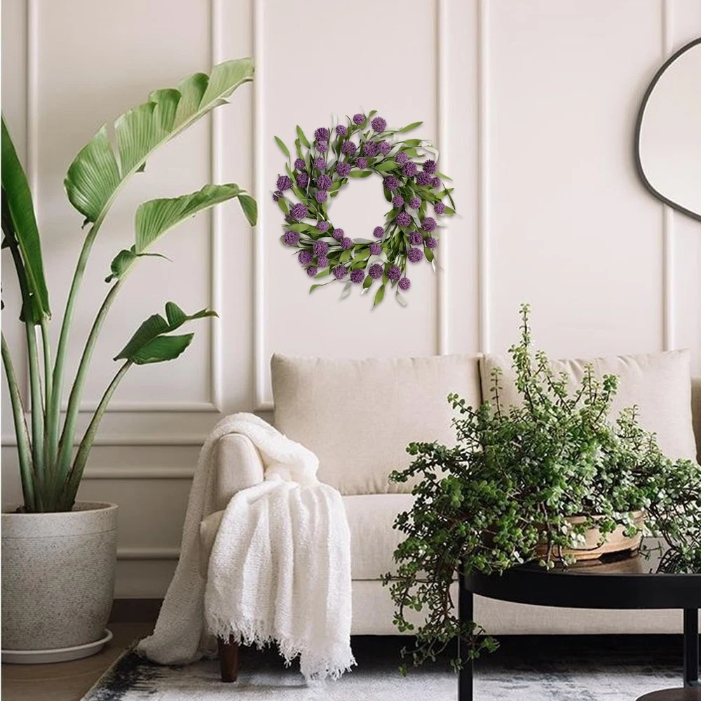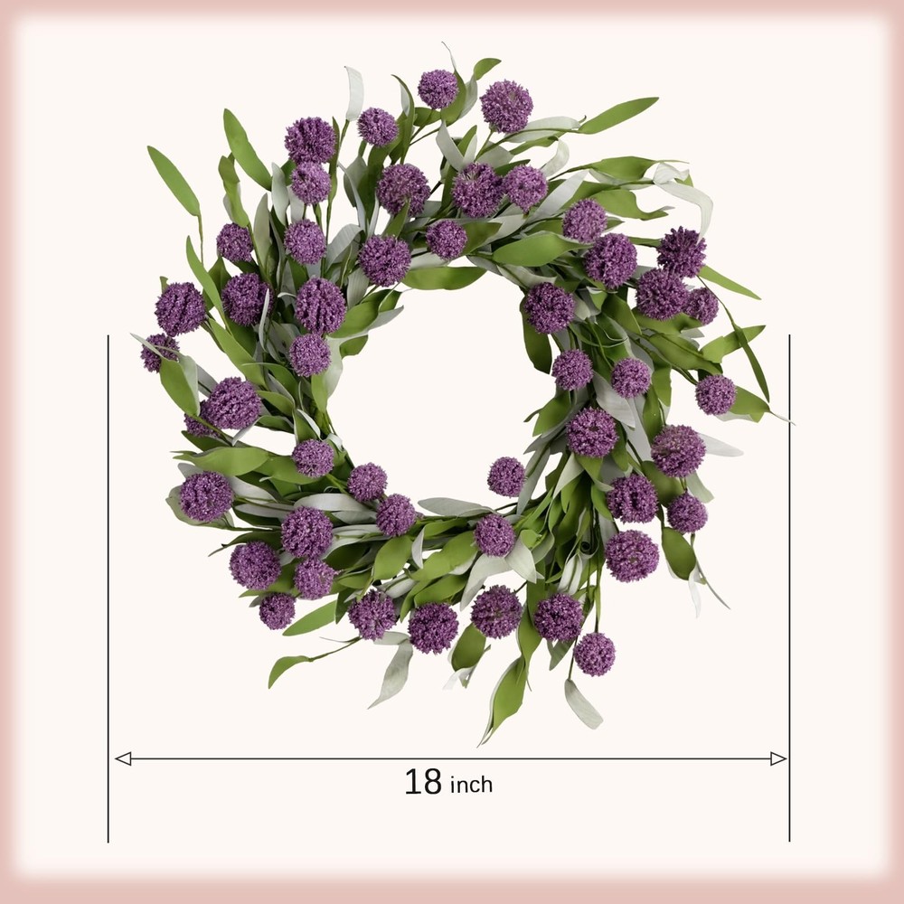 18-inch ball flower wreath, an excellent outdoor decoration designed for spring and summer, will fill your surroundings with vitality. It is suitable for use on front doors, walls, outdoors, indoors, windows, fireplaces, living rooms, porches, party center decorations, and weddings. The fresh and simple farmhouse style makes it suitable for most occasions. It is also perfect for all holidays such as Mother's Day, Easter, Valentine's Day, etc. 【Spring and Summer Front Door Wreath】: Skillfully combining vibrant ball flowers with slender willow leaves, this wreath is designed specifically for spring and summer outdoor decoration, bringing vitality to your surroundings. The full-bodied shape of the flowers adds depth to the wreath, enhancing its visual appeal. 【Size Information】: Our spring and summer wreaths have an outer diameter of approximately 18 inches. They are entirely handmade, featuring flexible and durable plastic materials for the leaves and flowers, which feel realistic and soft to the touch. The base is made of an iron ring, ensuring years of use without deformation. 【Multi-purpose Decoration】: Suitable for use on front doors, walls, outdoors, indoors, windows, fireplaces, living rooms, porches, party center decorations, and weddings. The fresh and simple farmhouse style makes it suitable for most occasions. It is also perfect for Mother's Day, Easter, Valentine's Day, and all other holidays. 【Slightly Fluffy】: The wreath may be slightly compressed during transportation, please reshape it before hanging. All branches are soft and flexible, allowing you to easily adjust the shape of the wreath to make it full and round. 【Maintenance-free】: It requires no watering or maintenance to stay bright, colorfast, and durable. Every detail of the exquisite wreath is carefully handmade, and the flowers and leaves will not easily fall off. It is not only a beautiful summer door wreath but also of high quality.
