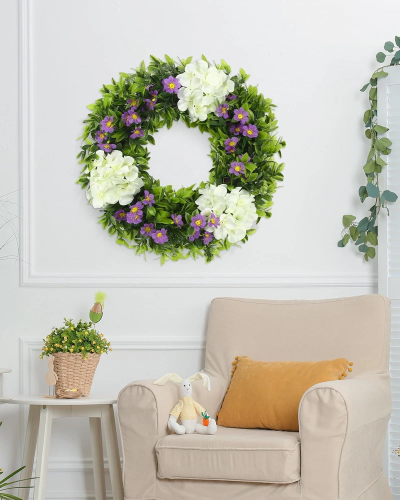 $ 27.1820 Inch Violet Silk Spring Summer Wreath for Front Door with Artificial Flowers